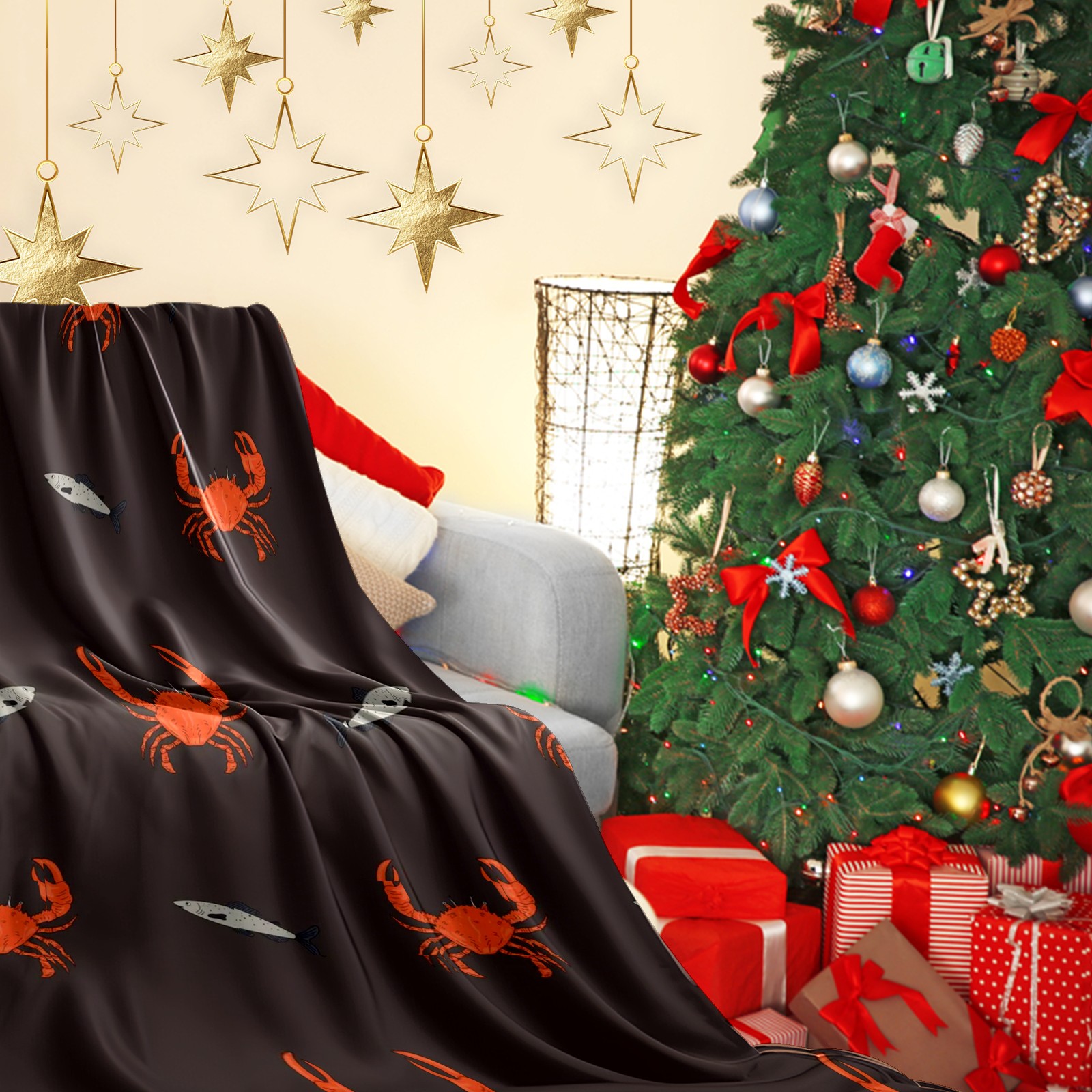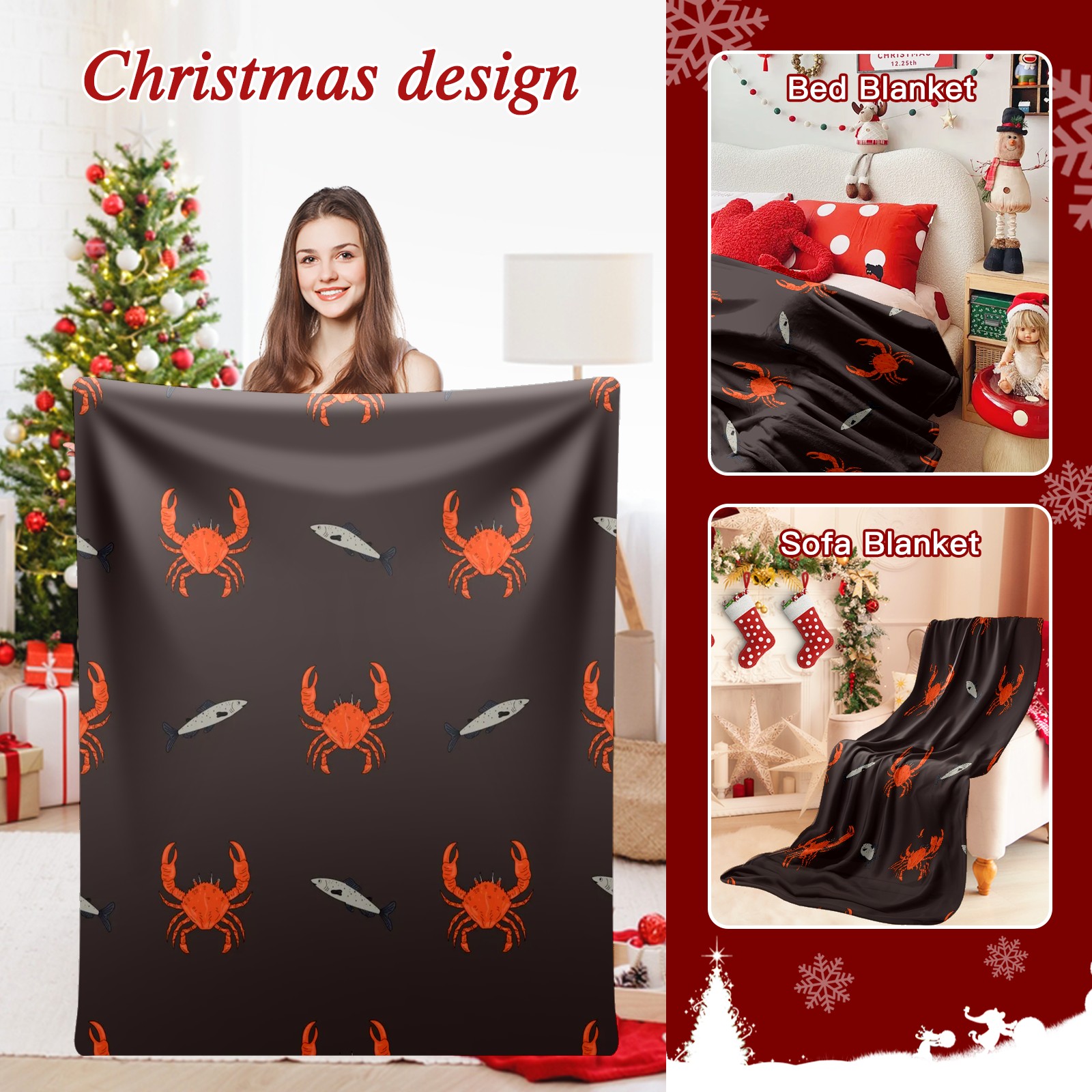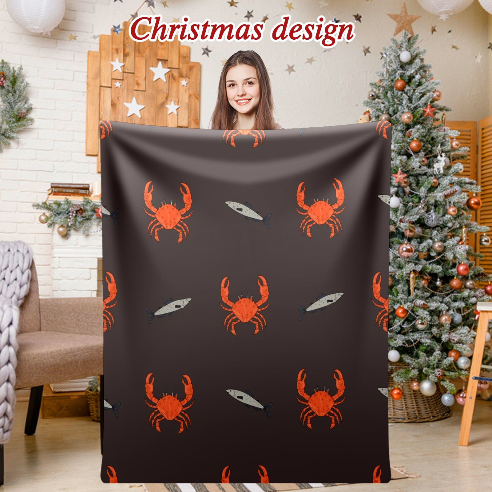 Премиальная фланелевая одеяло Brown Red Crab