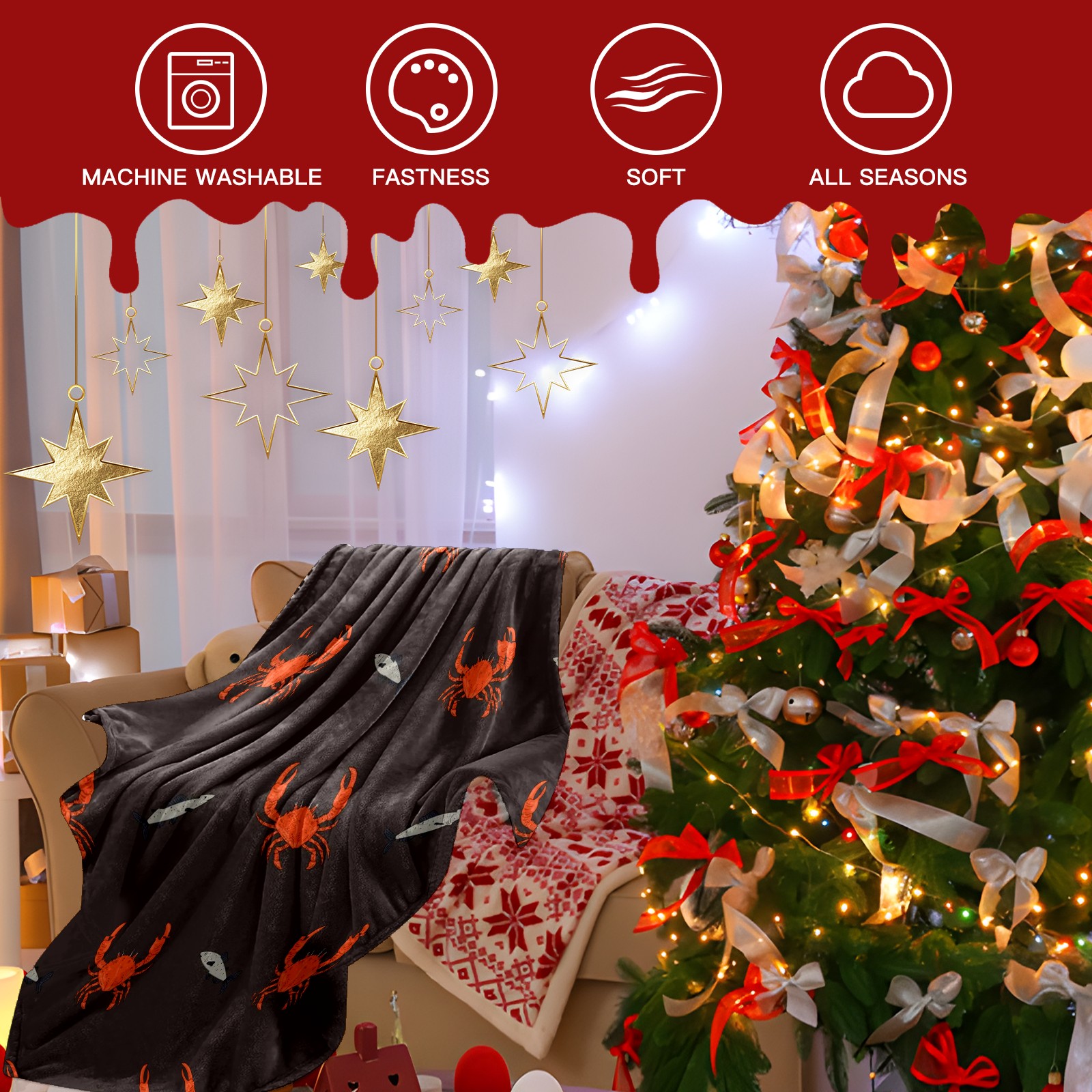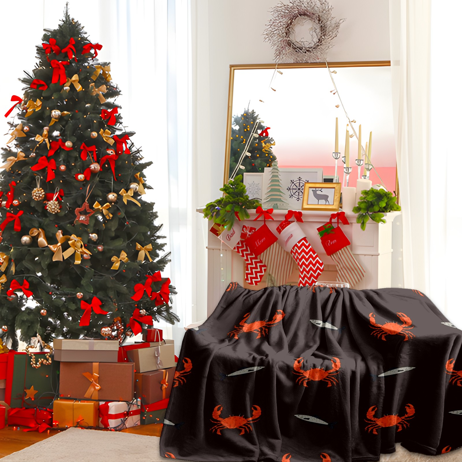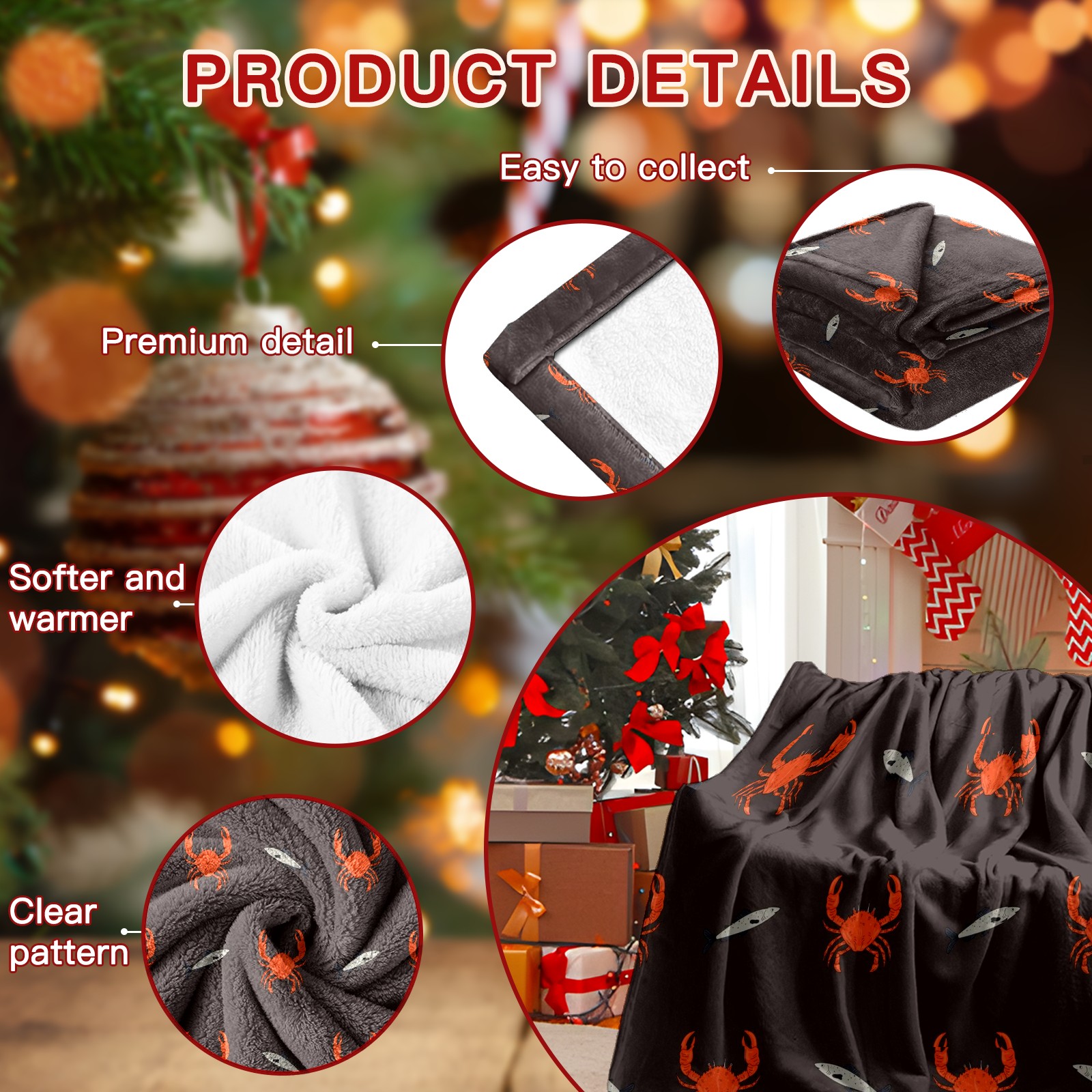 Премиальная фланелевая одеяло Brown Red Crab