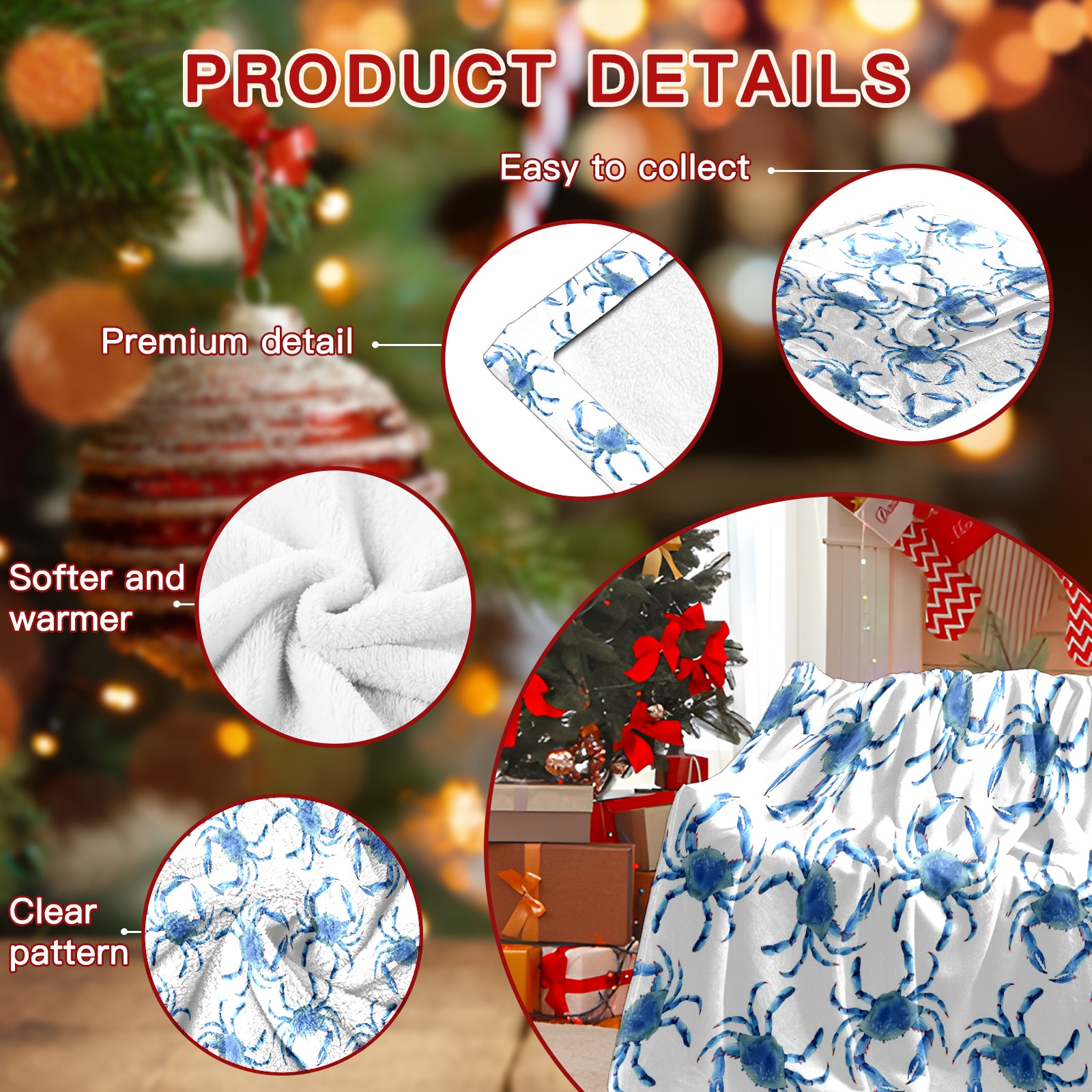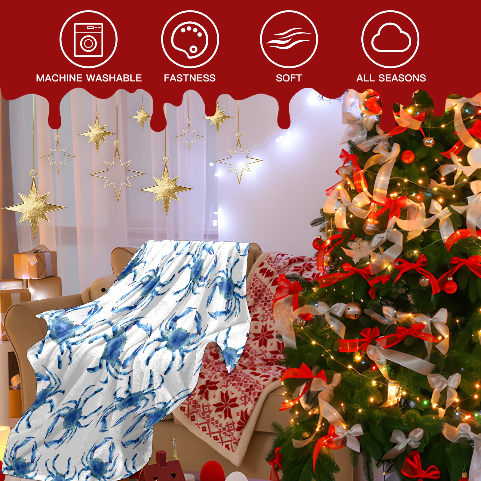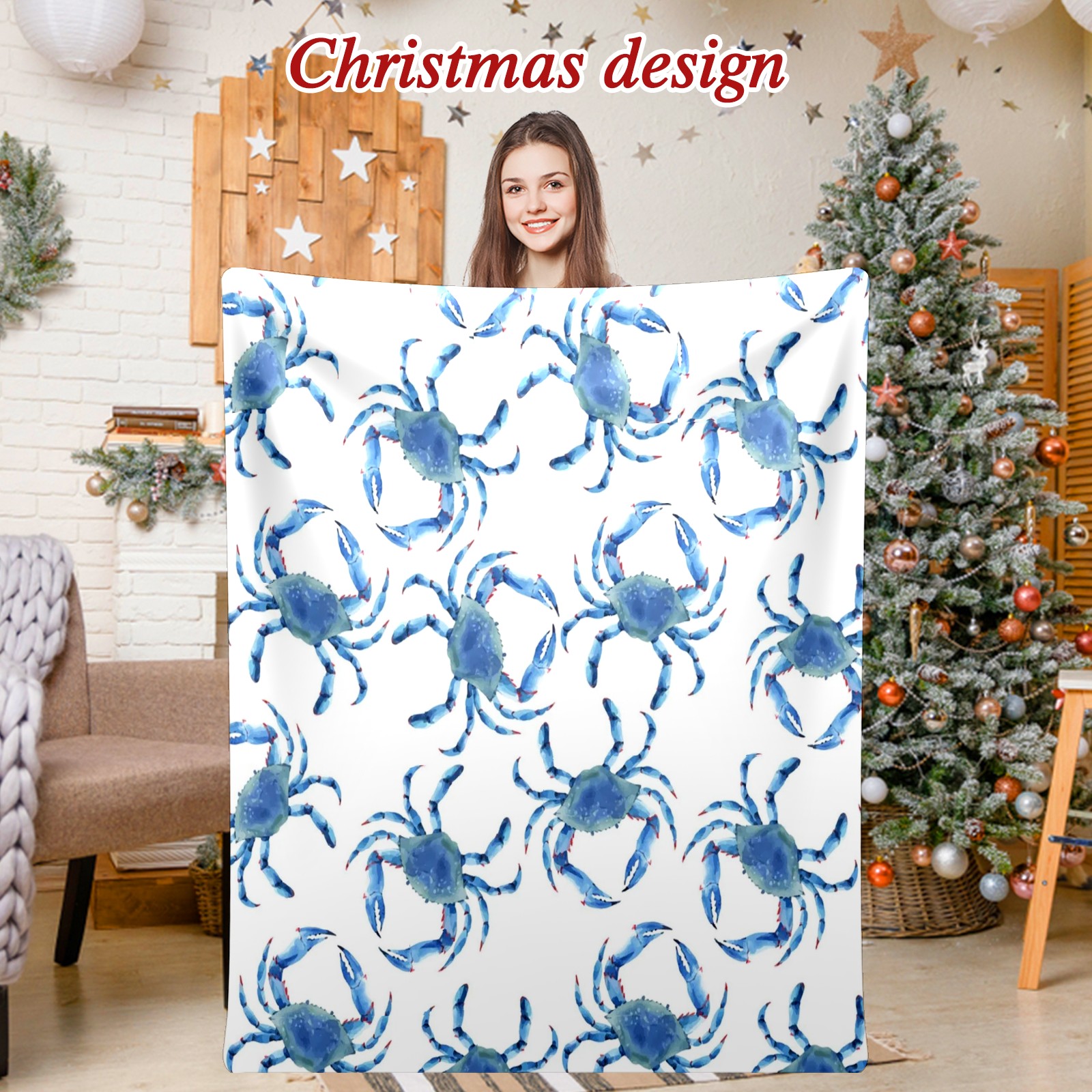 Премиальная фланелевая одеяло Blue Crab