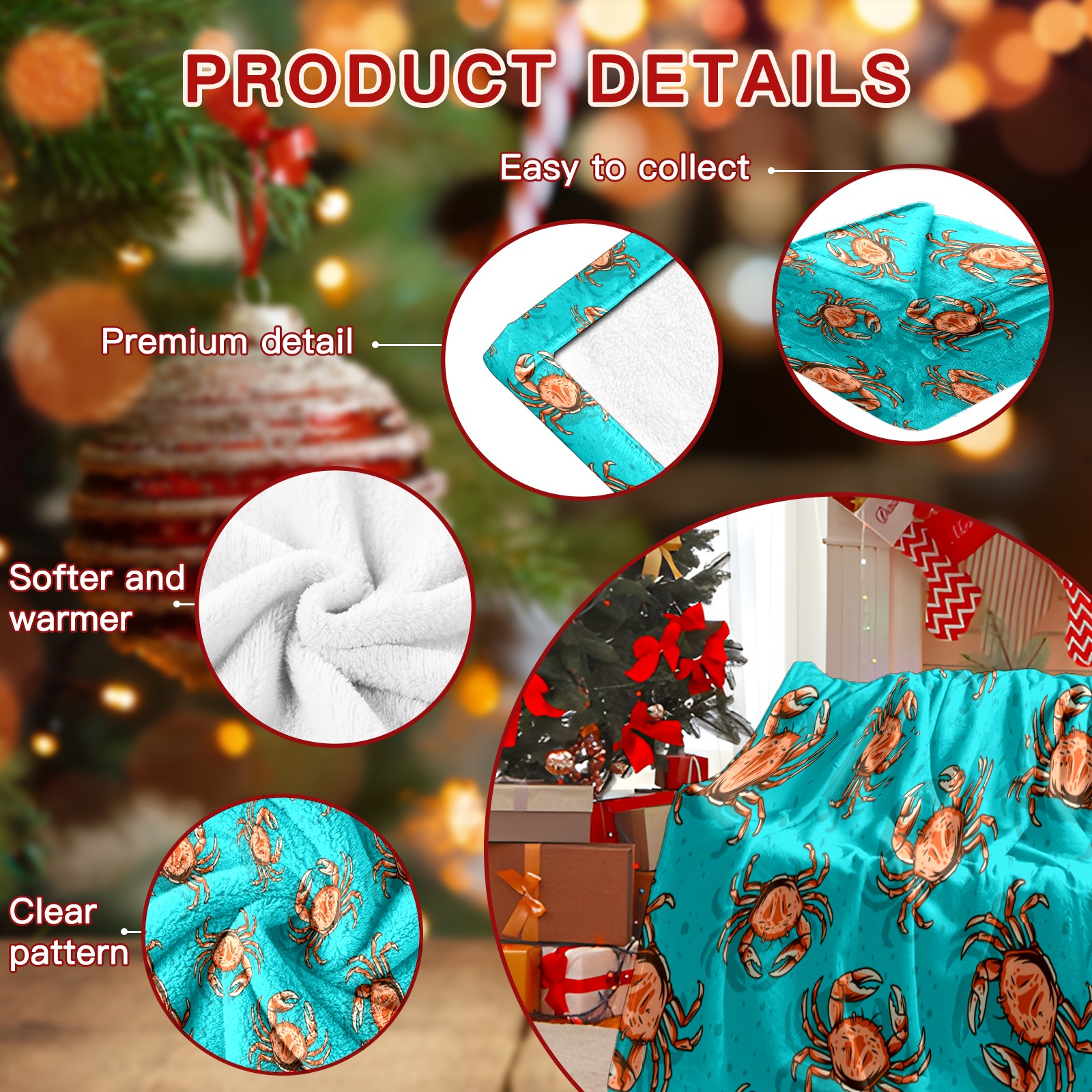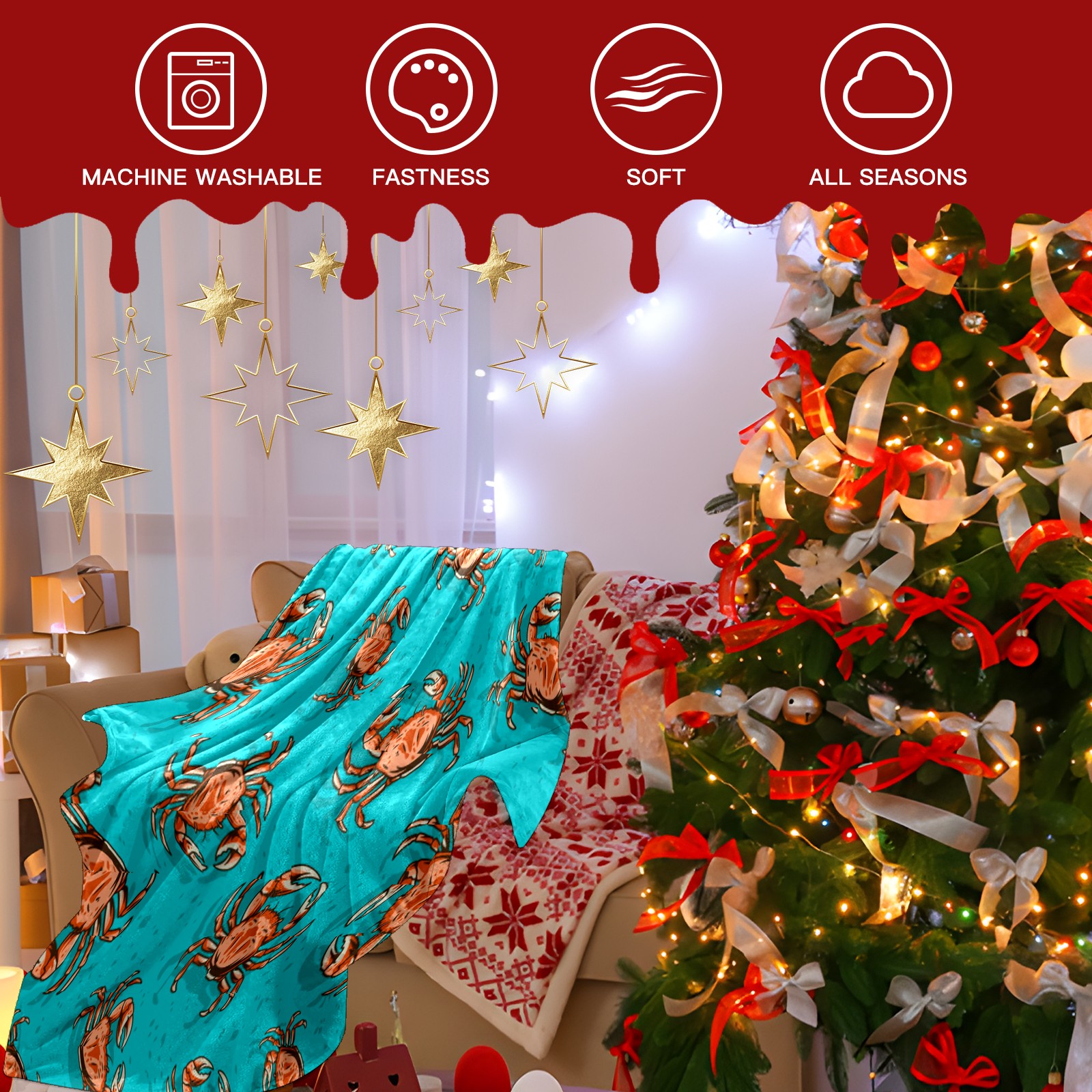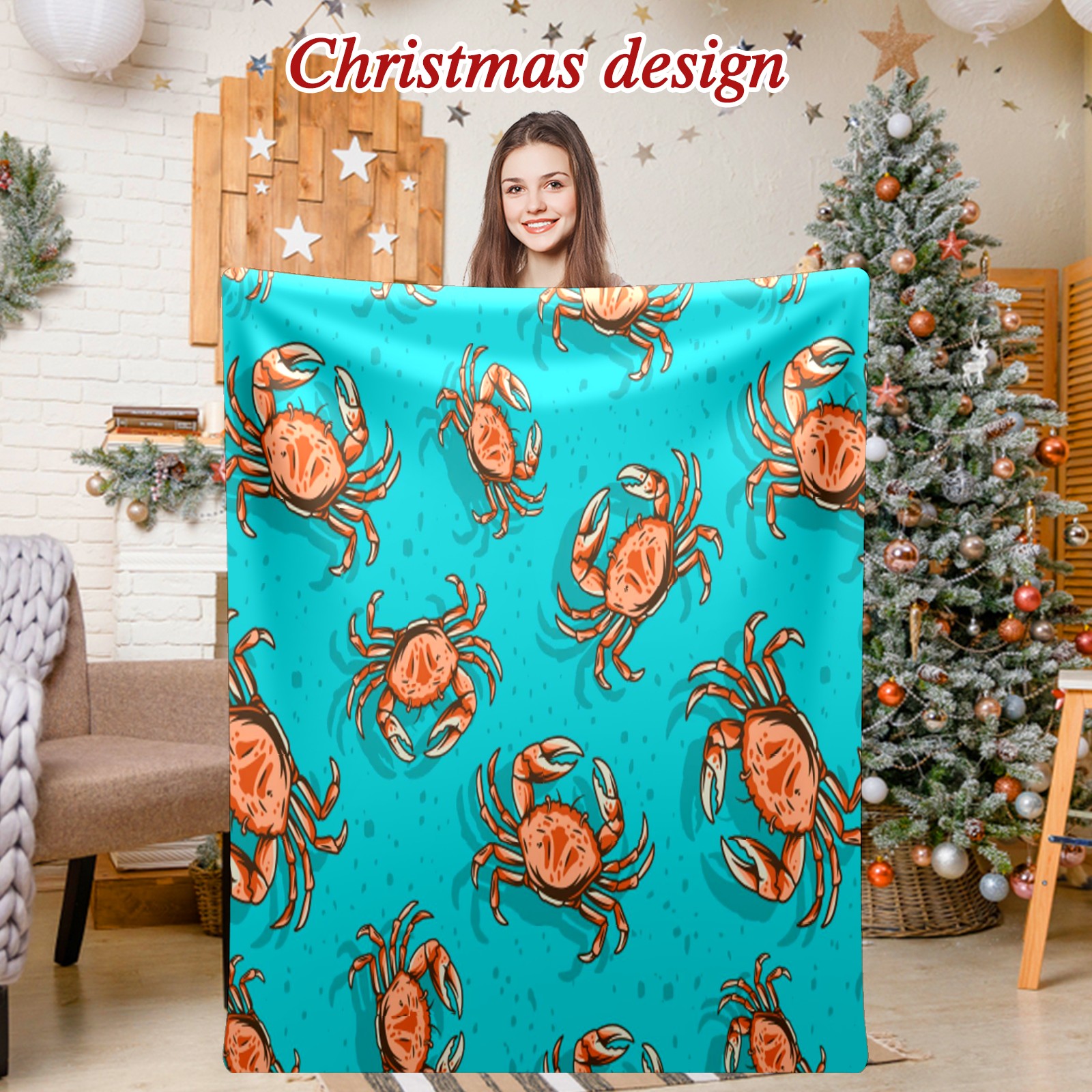 Премиальная фланелевая одеяло Blue Ocean Crab