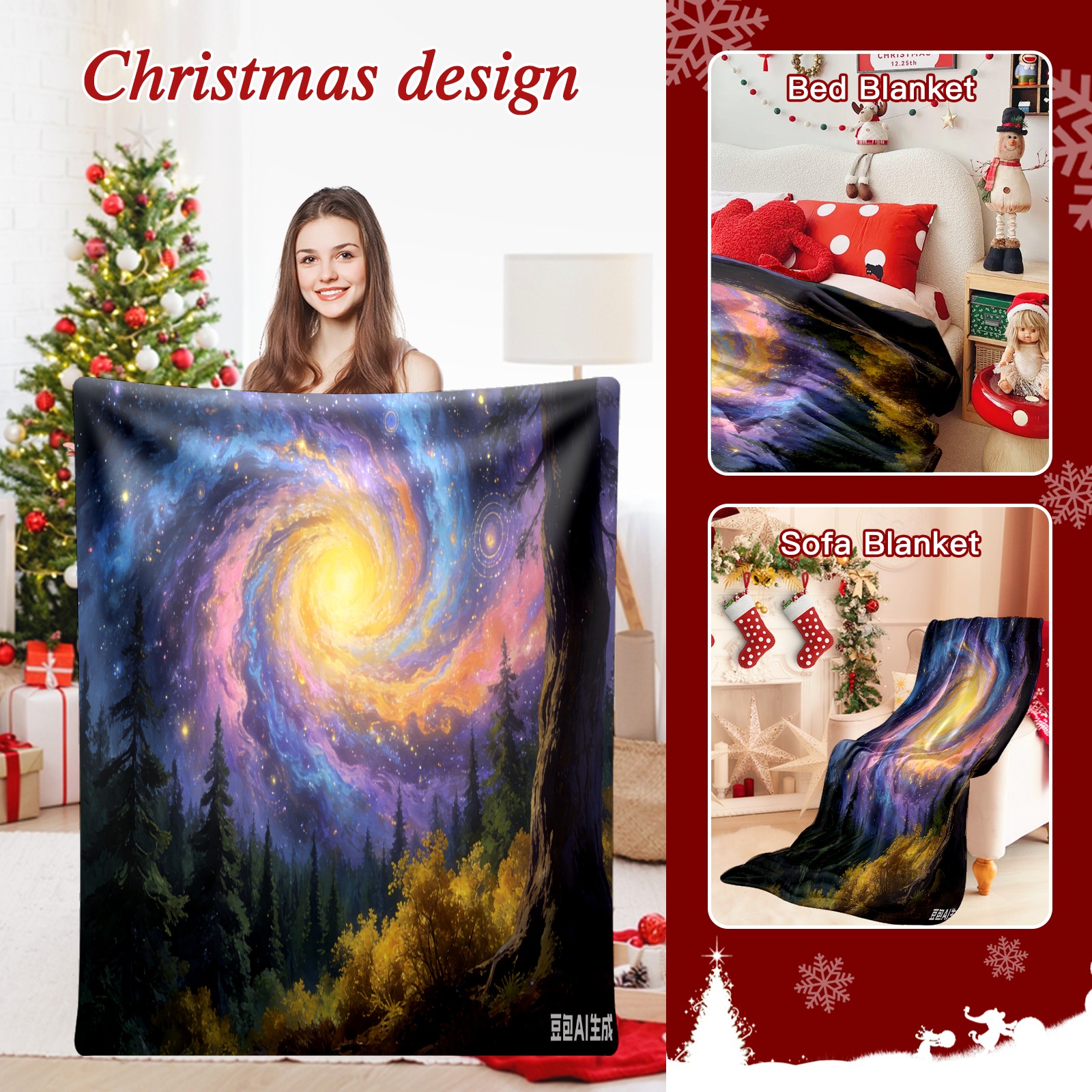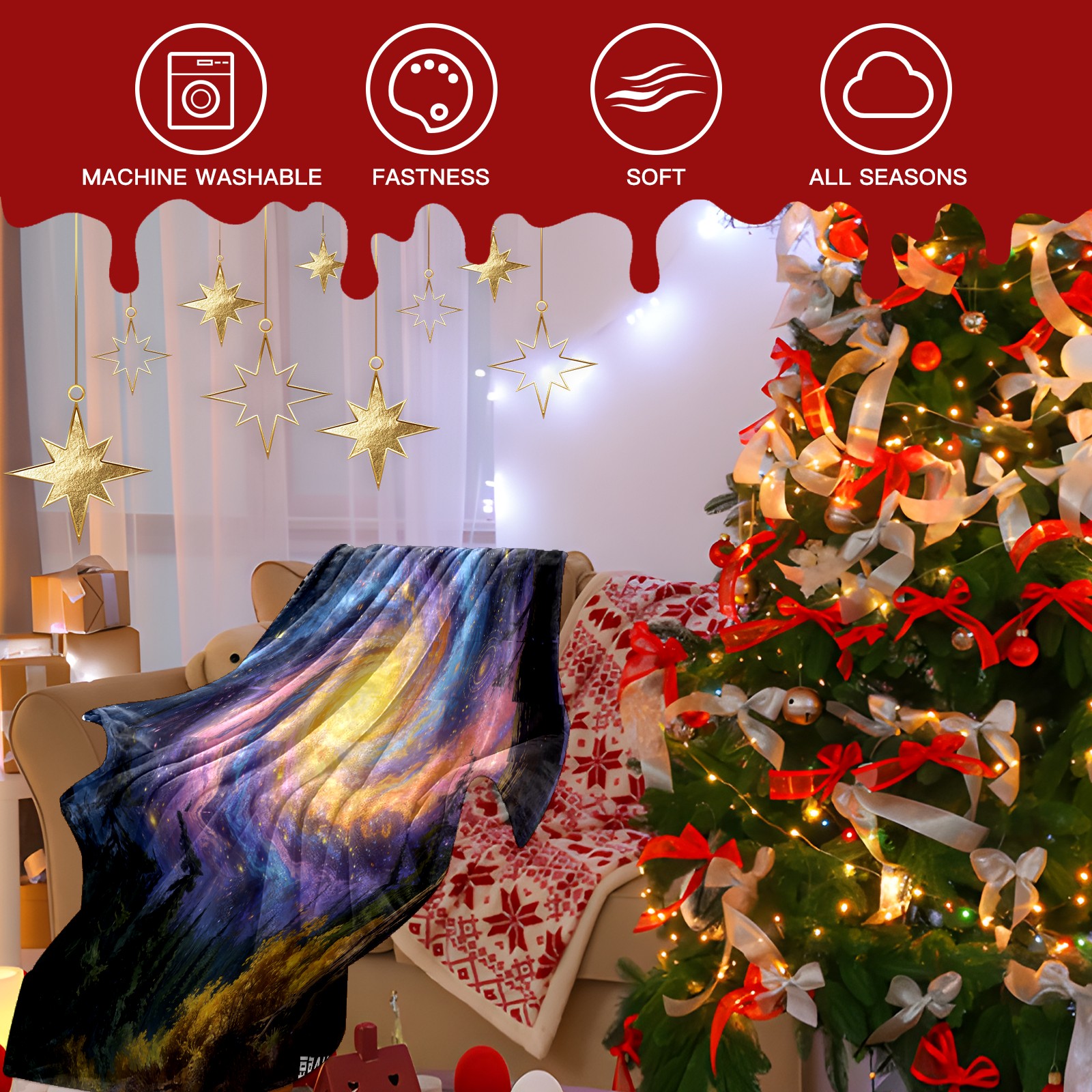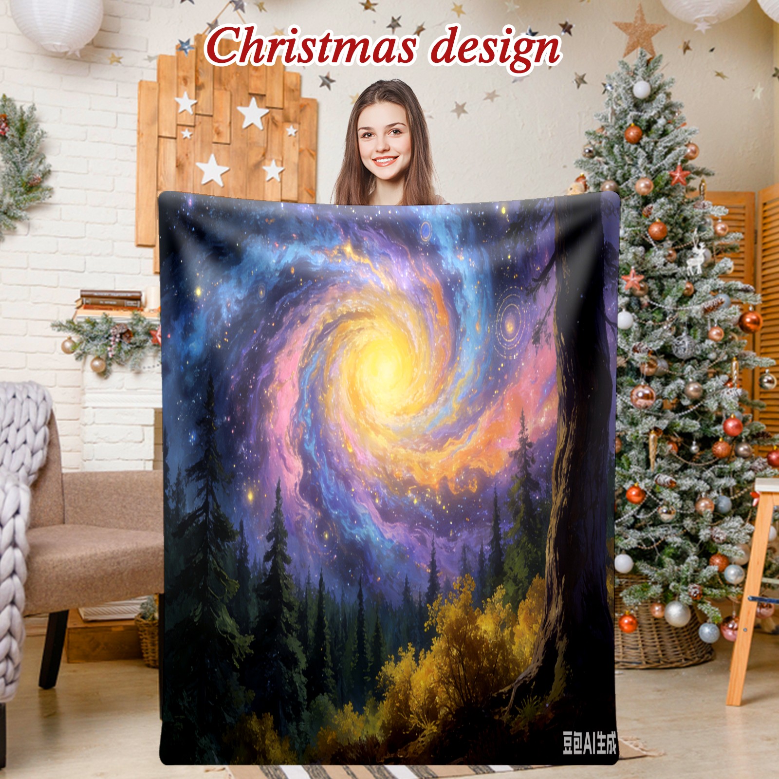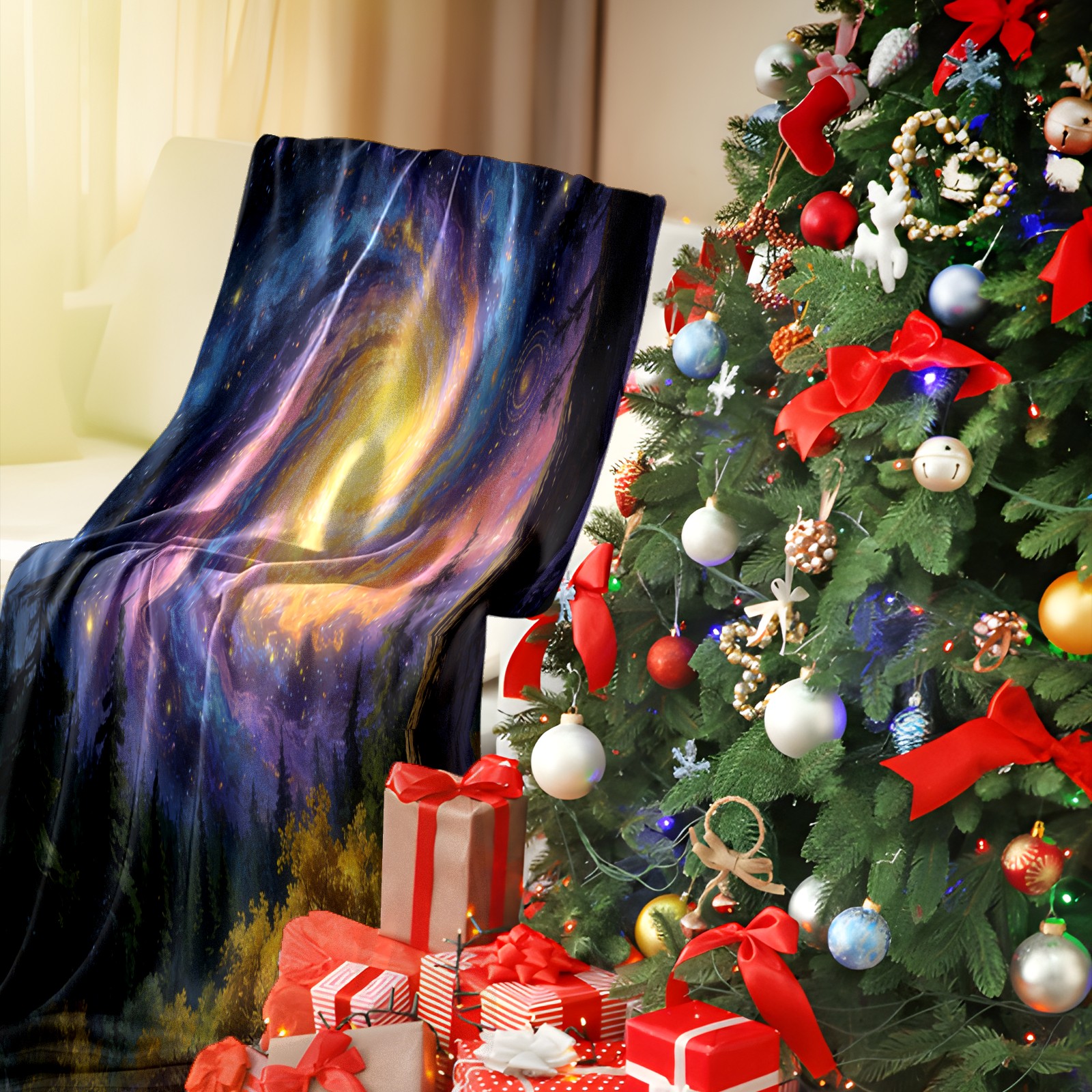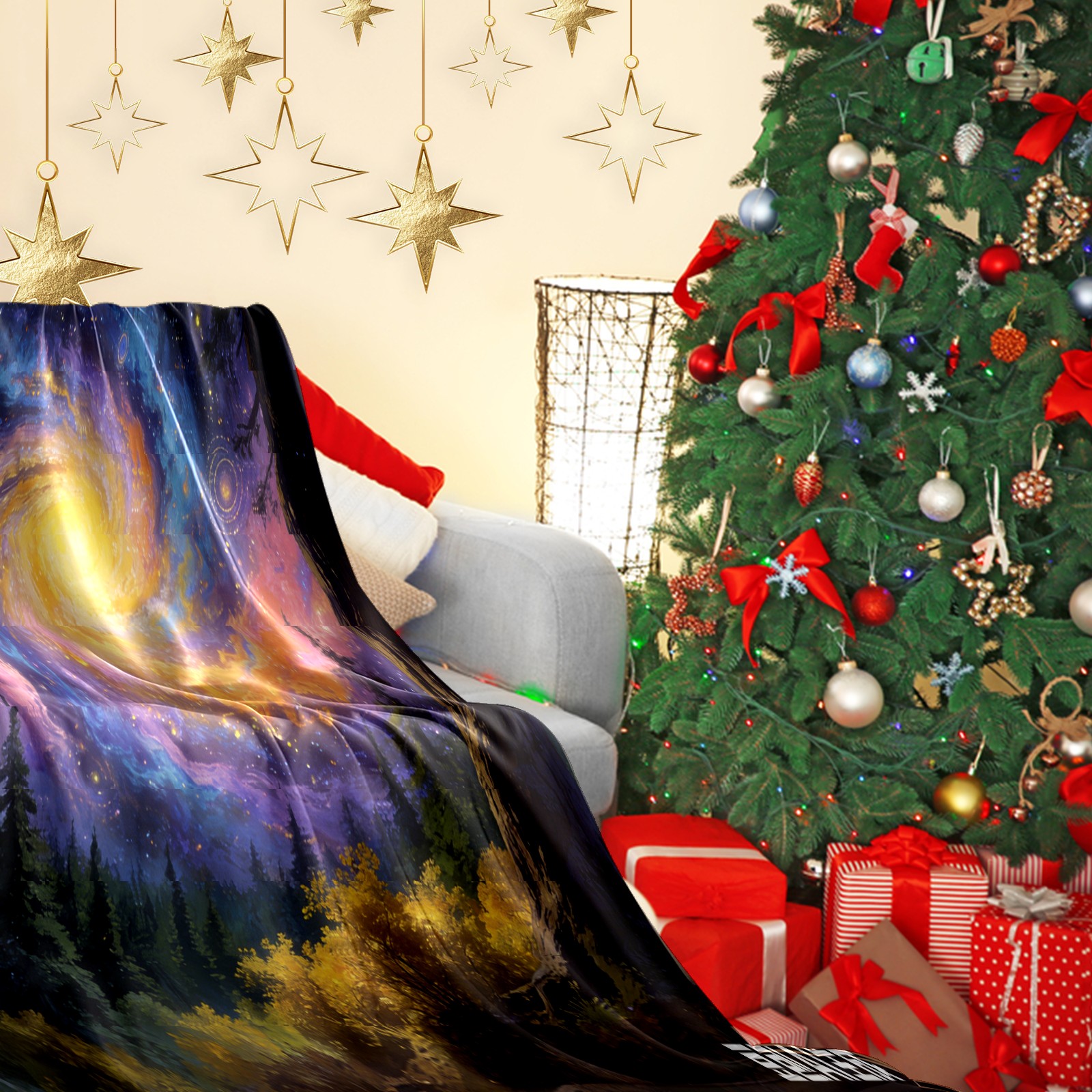 Премиальная фланелевая одеяло Fantasy Starry Sky Forest 1