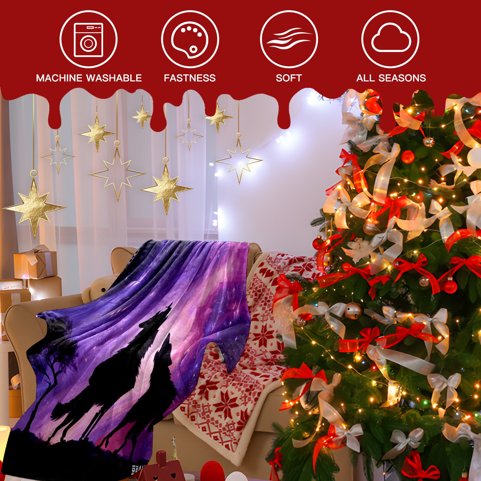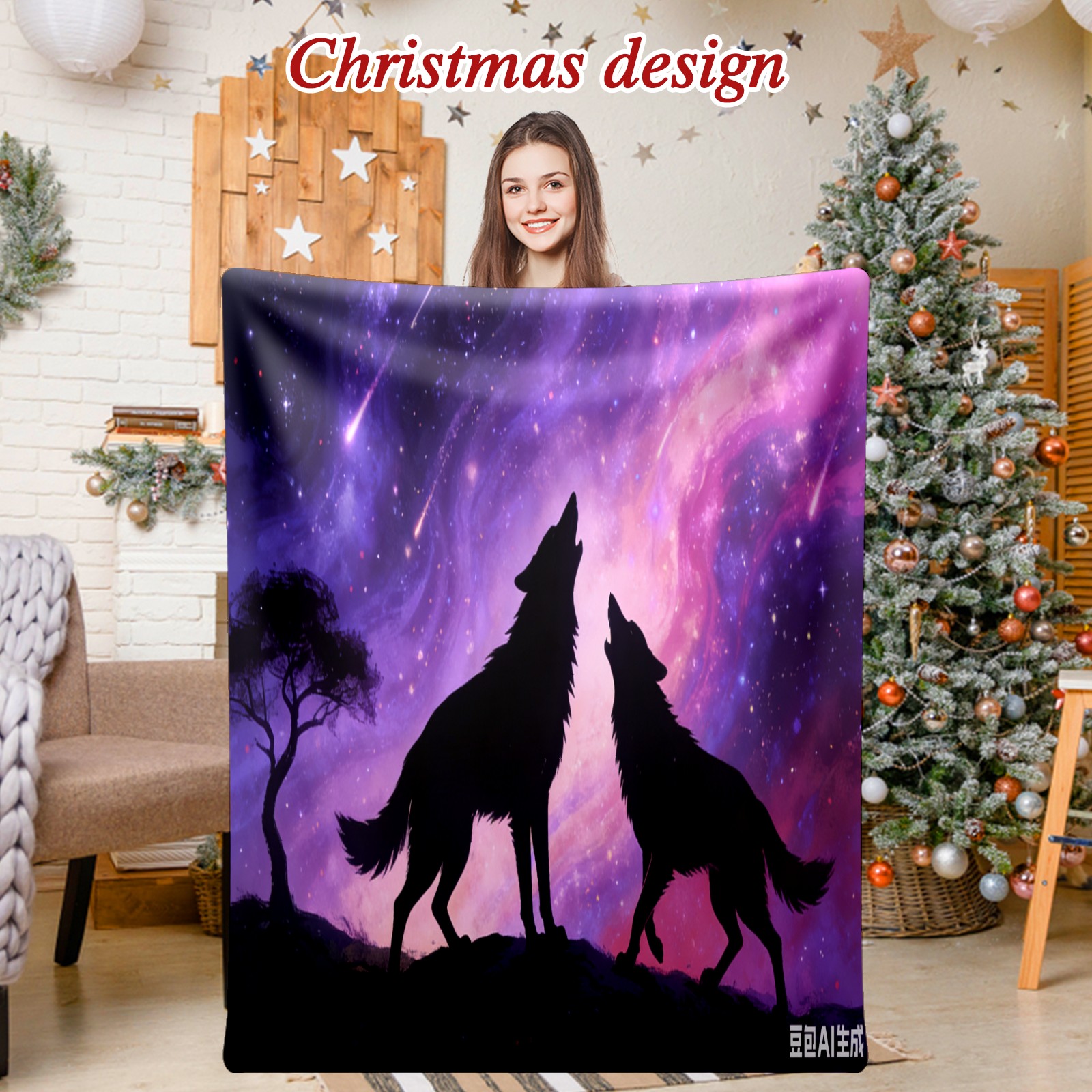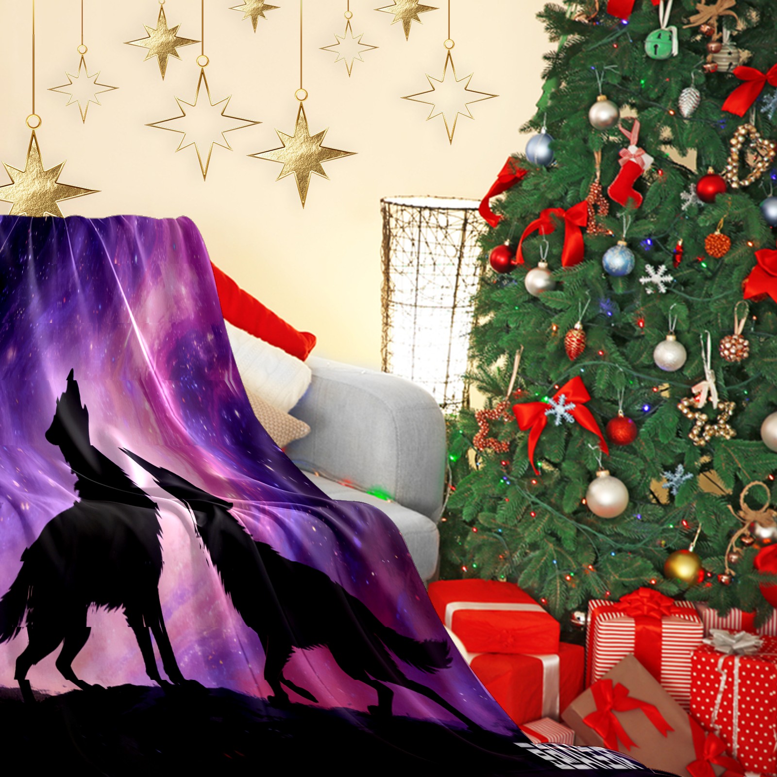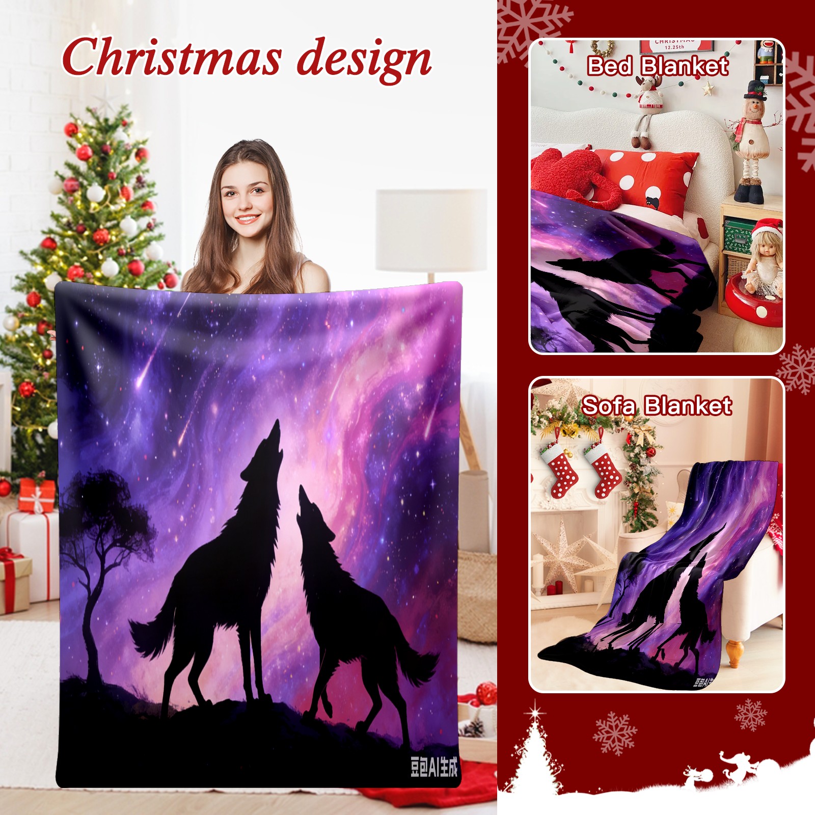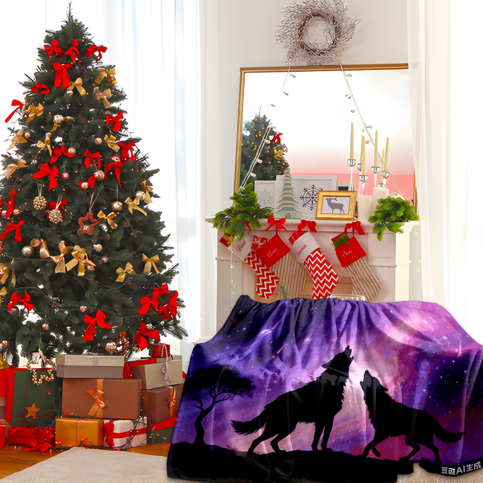 Премиальная фланелевая одеяло Aurora Wolf Shadow