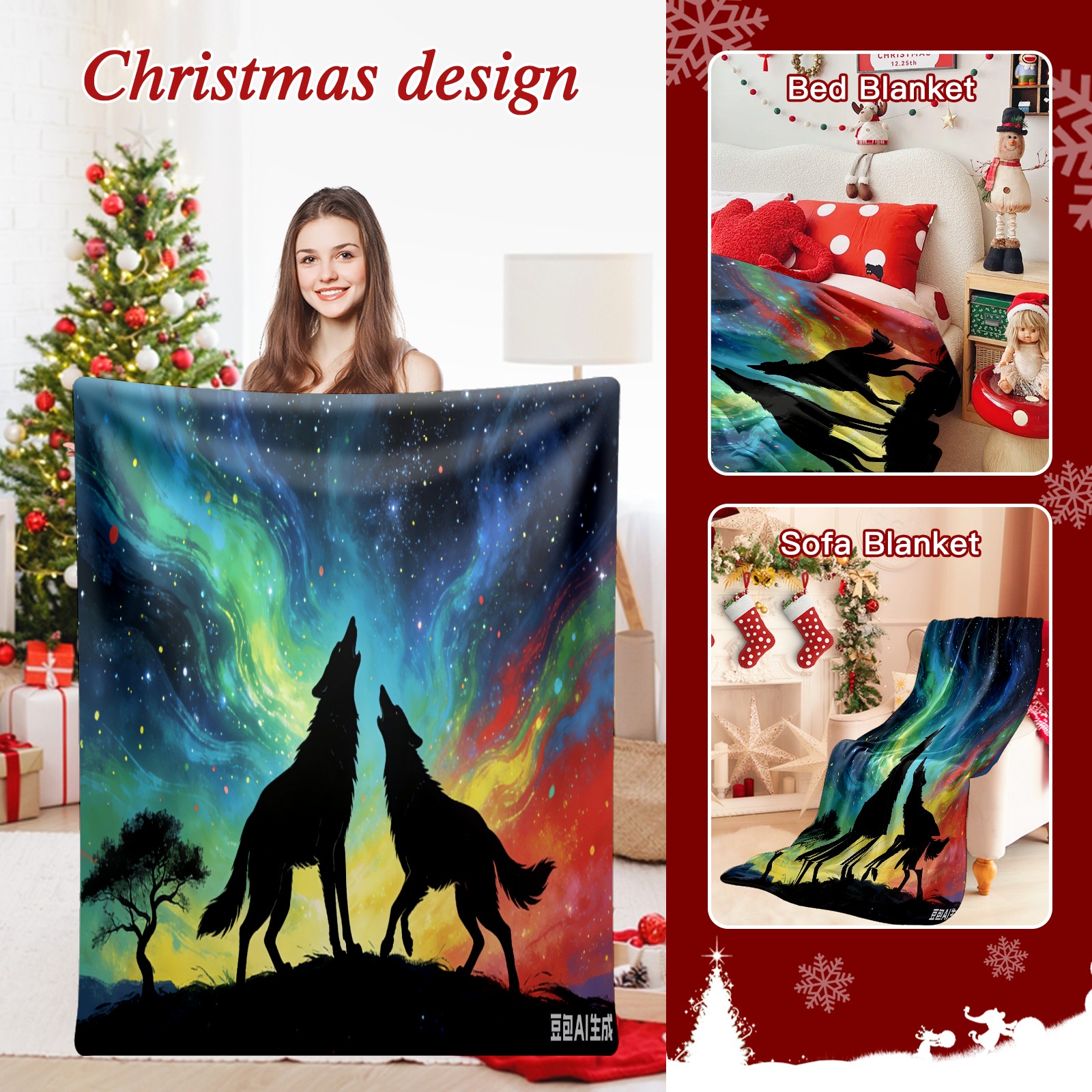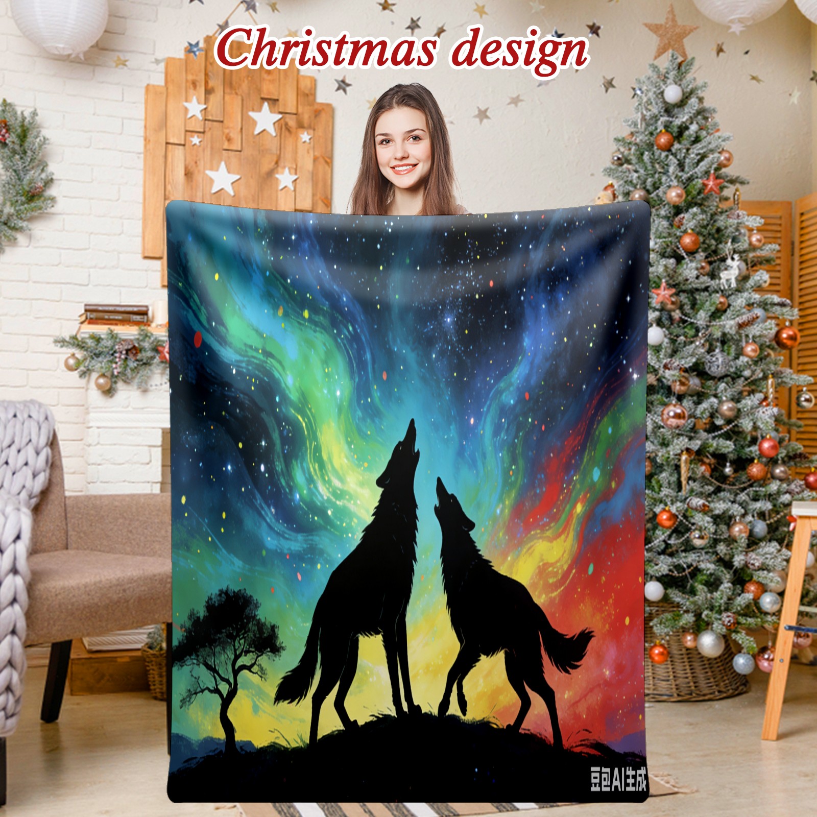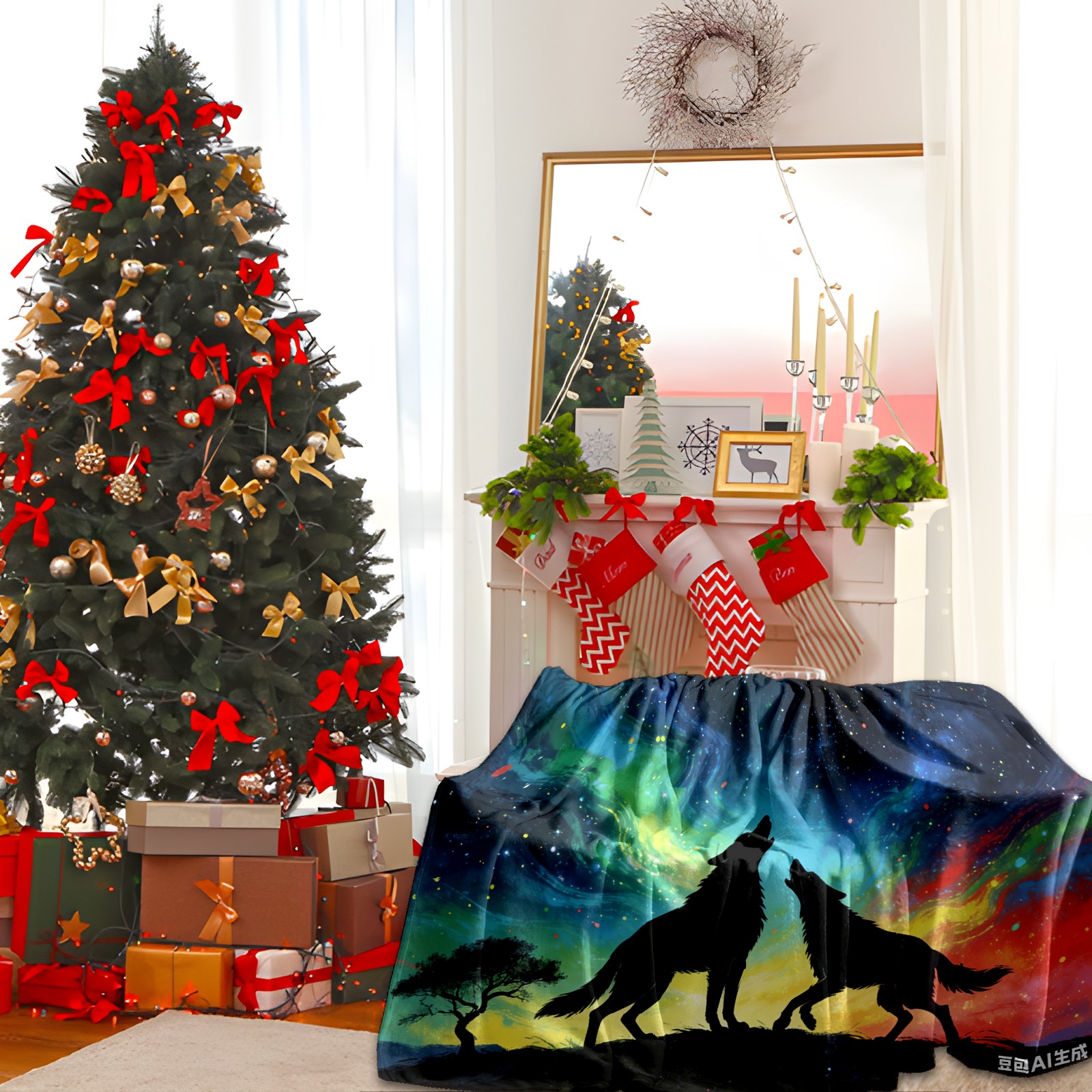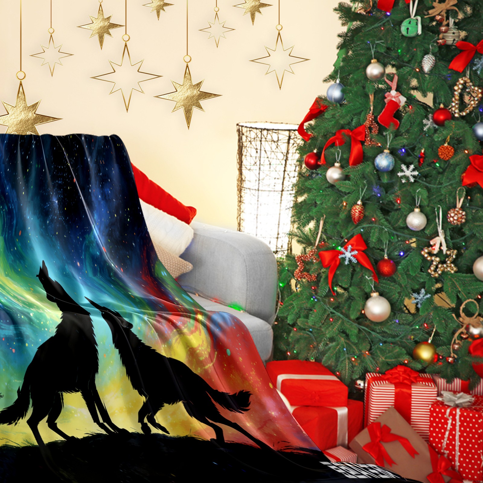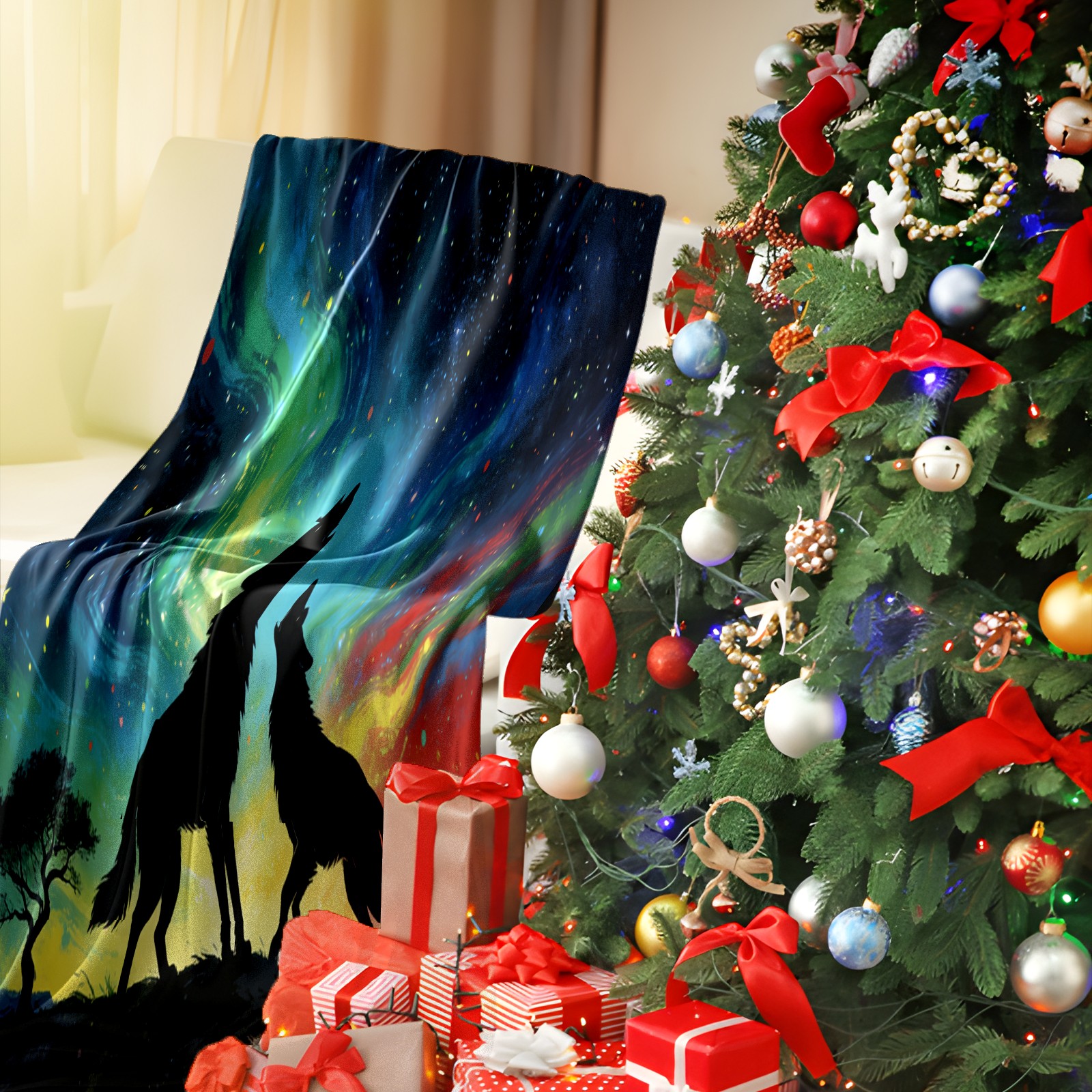 Премиальная фланелевая одеяло Aurora Wolf Shadow 3