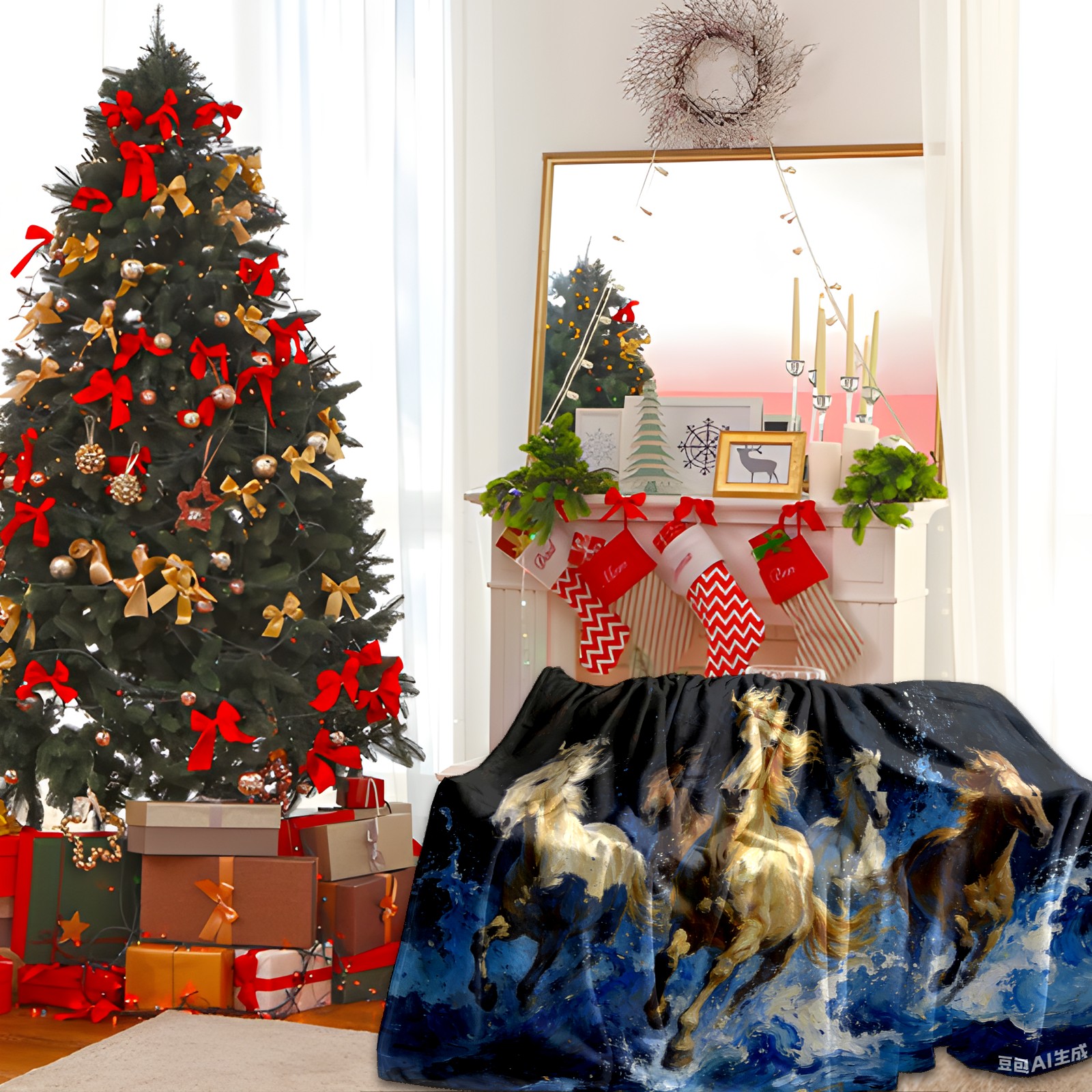 Премиальная фланелевая одеяло Black Brown Steed 1