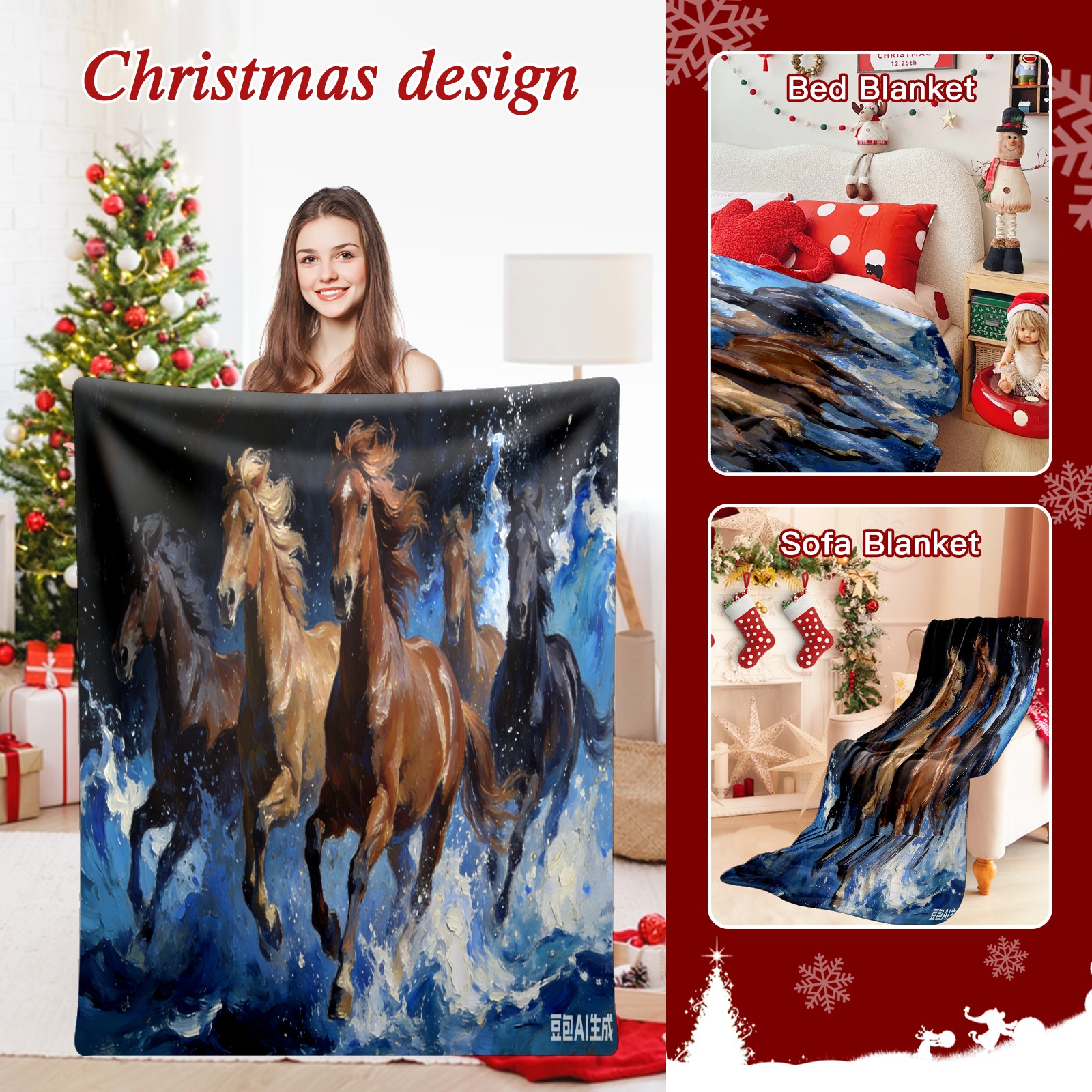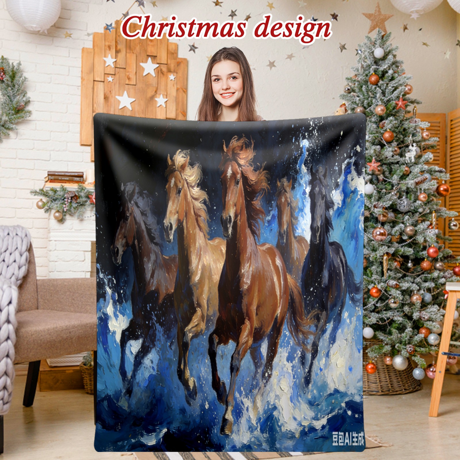 Премиальная фланелевая одеяло Black Brown Steed 2