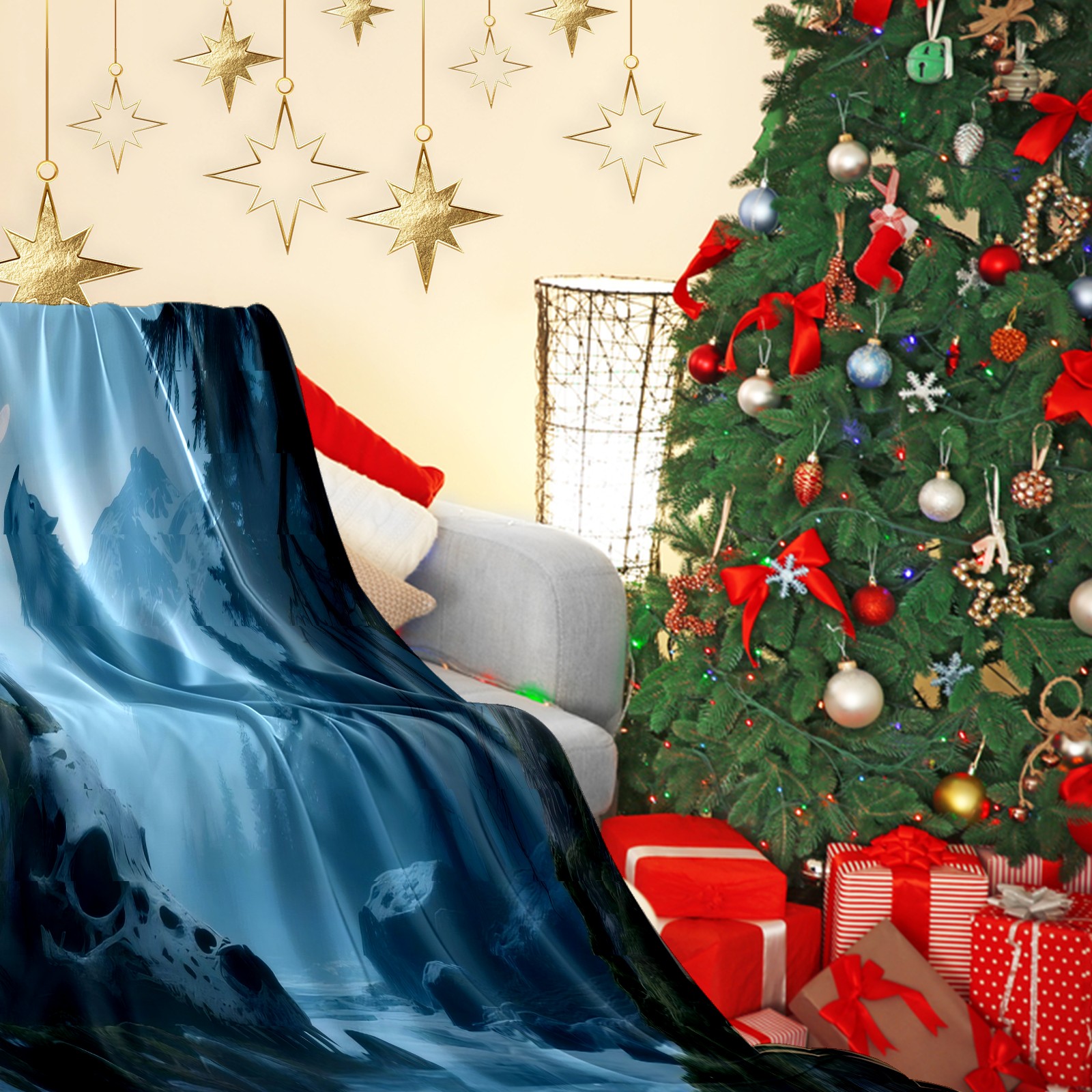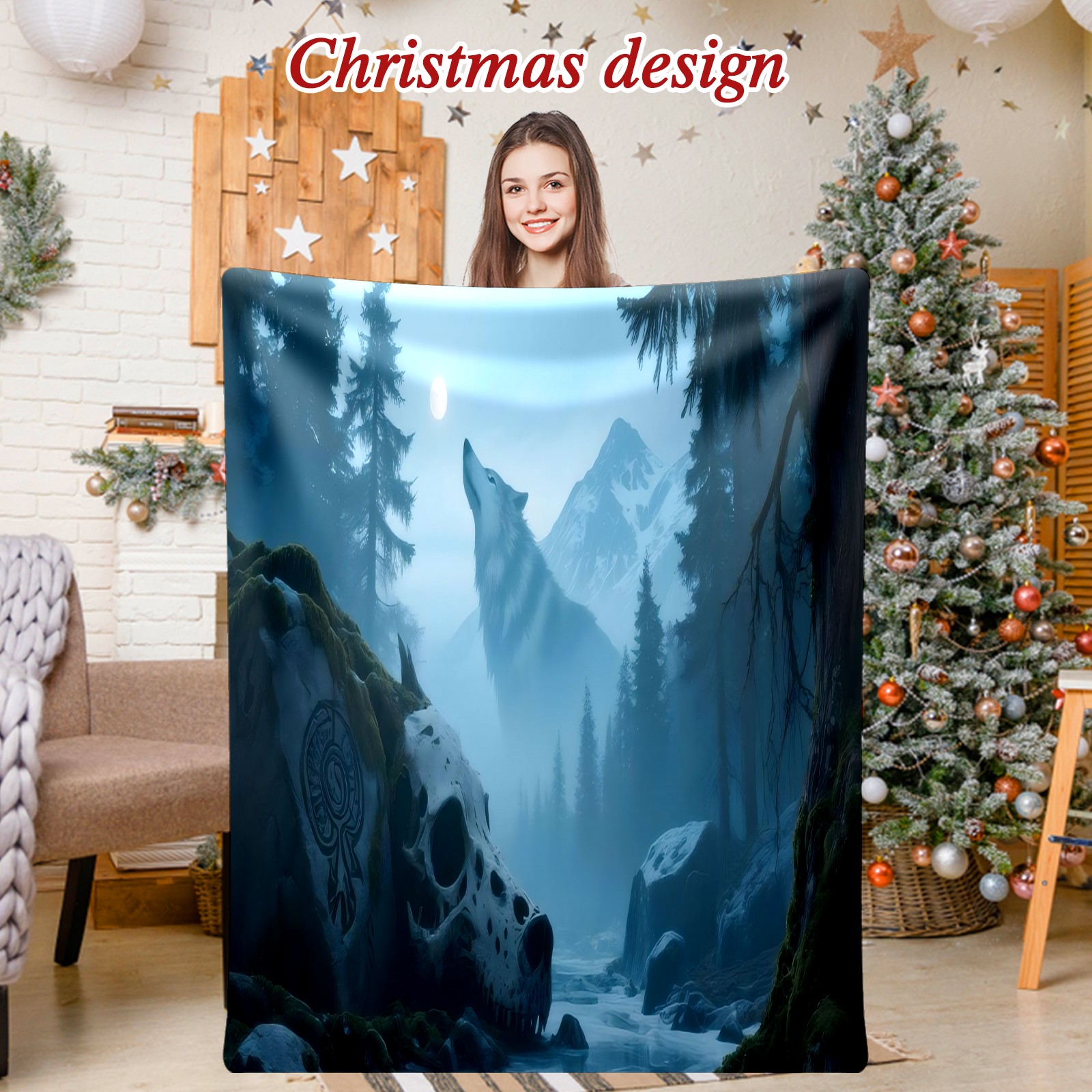 Премиальная фланелевая одеяло Wolf (025)
