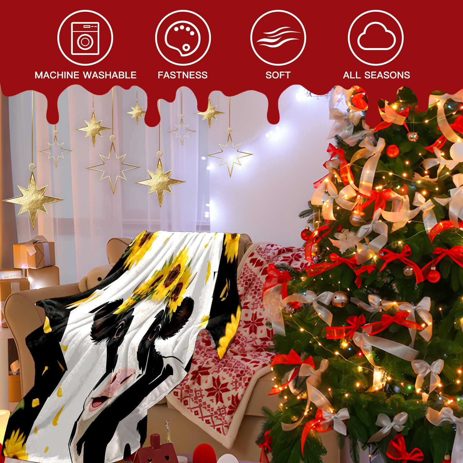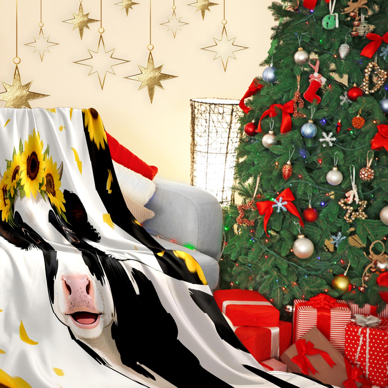Премиальная фланелевая одеяло Funny Cow (015)
