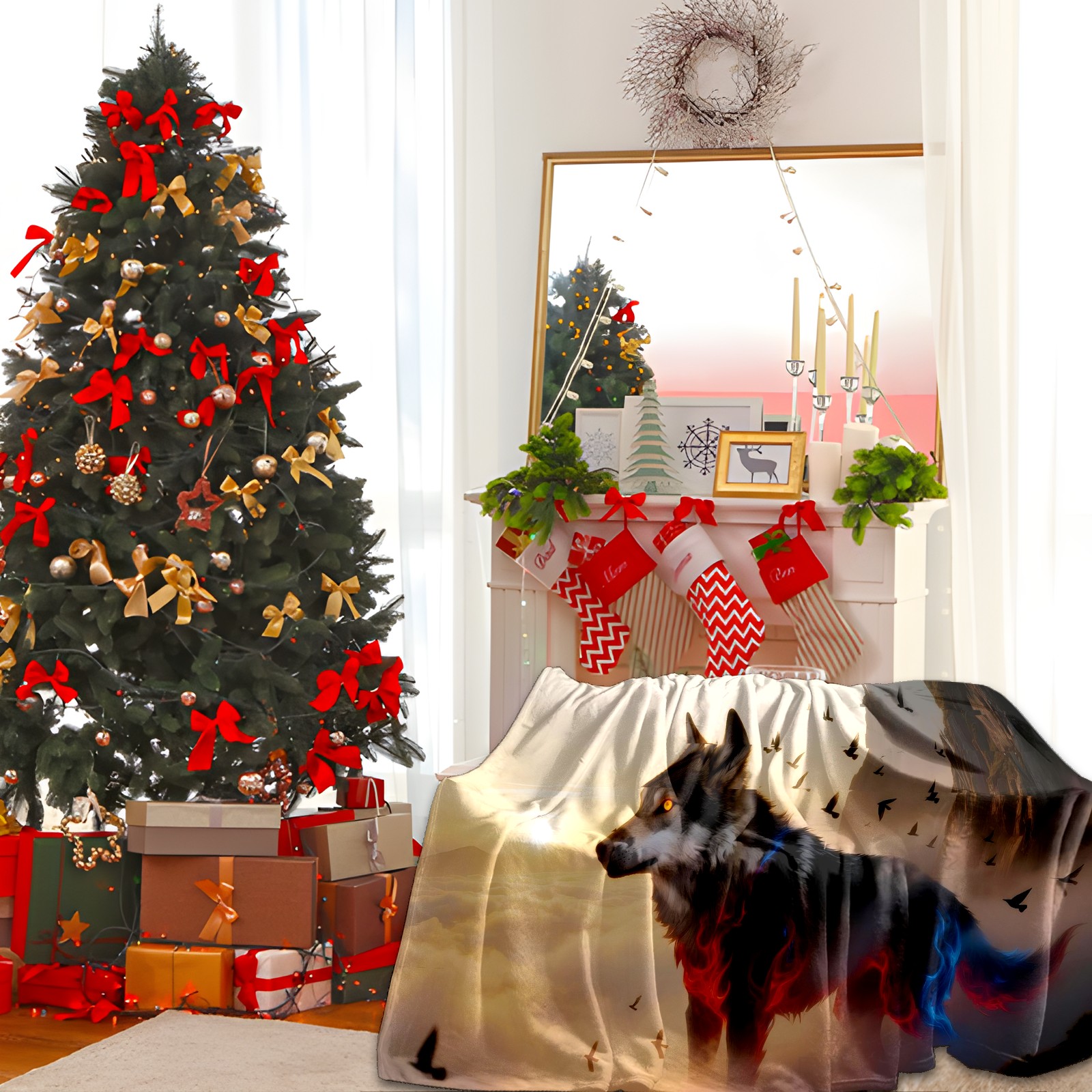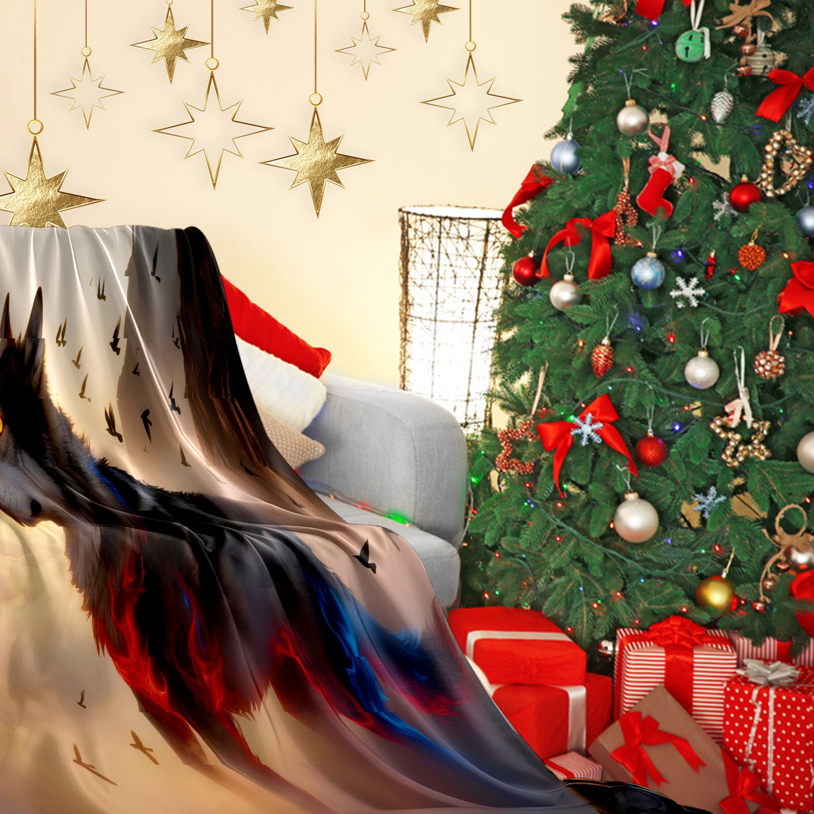 Премиальная фланелевая одеяло Wolf (013)