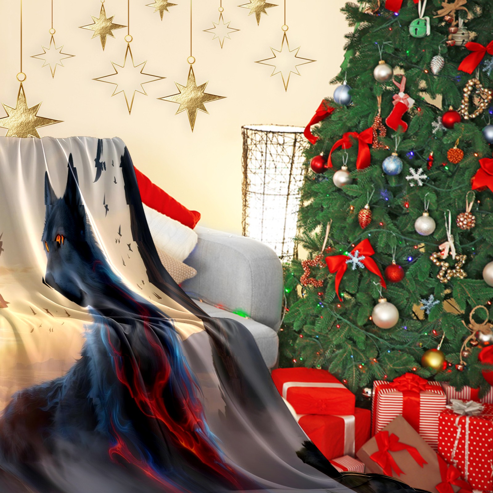 Премиальная фланелевая одеяло Wolf (012)