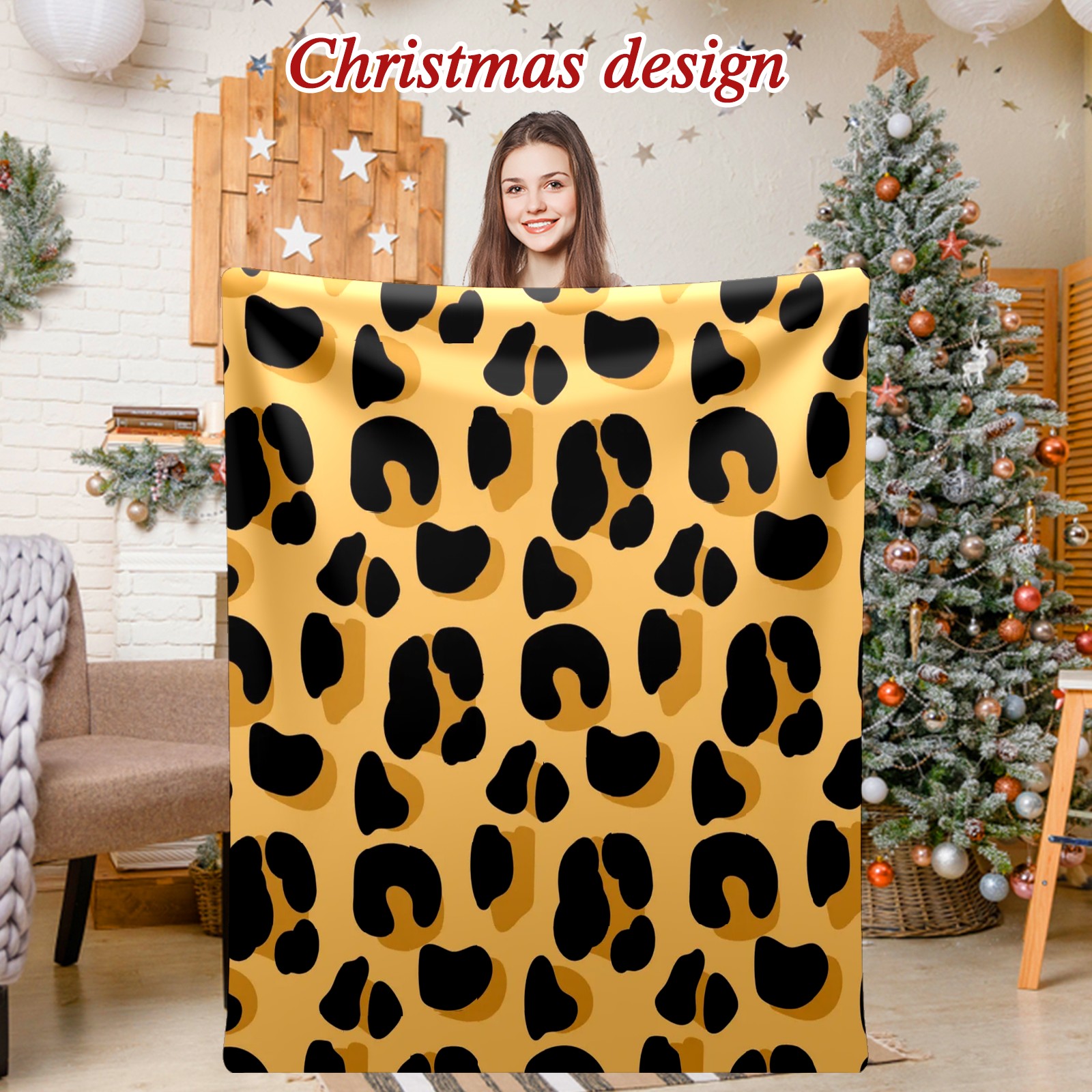 Премиальная фланелевая одеяло Yellow Black Spots Leopard