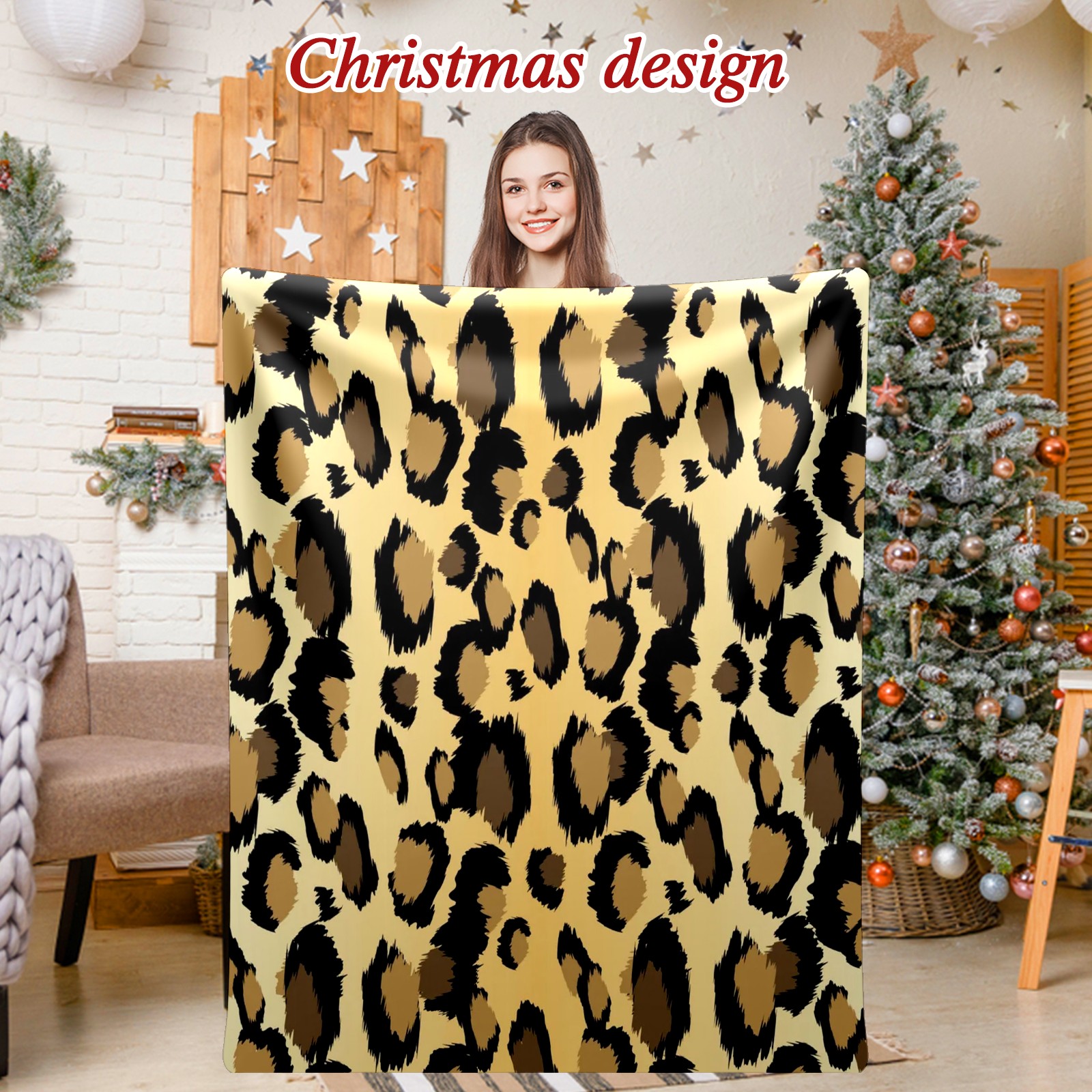 Премиальная фланелевая одеяло Yellow Black Leopard