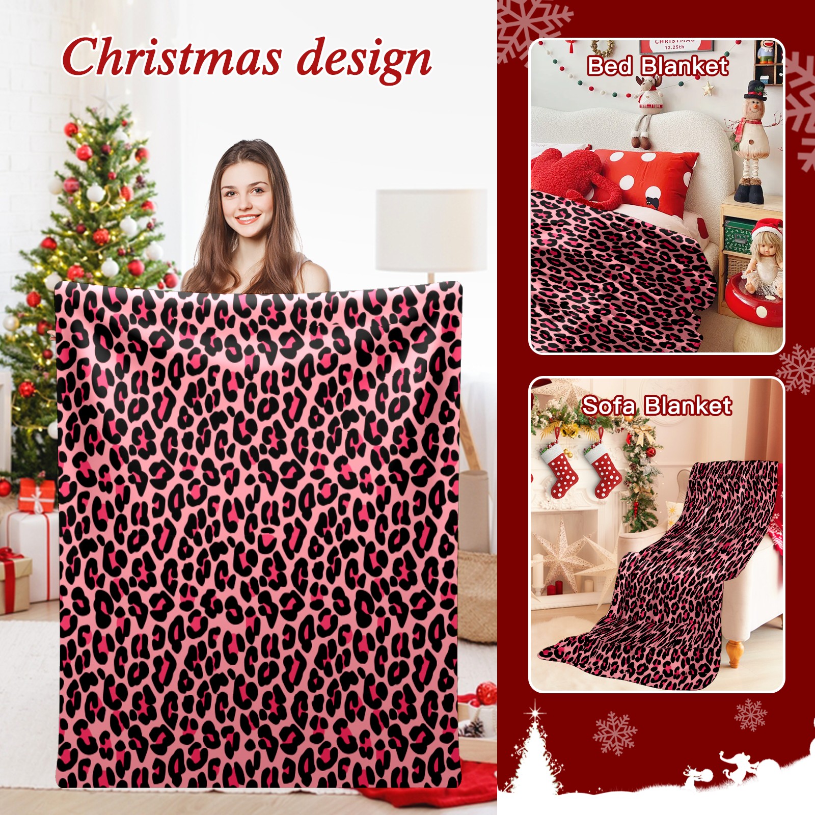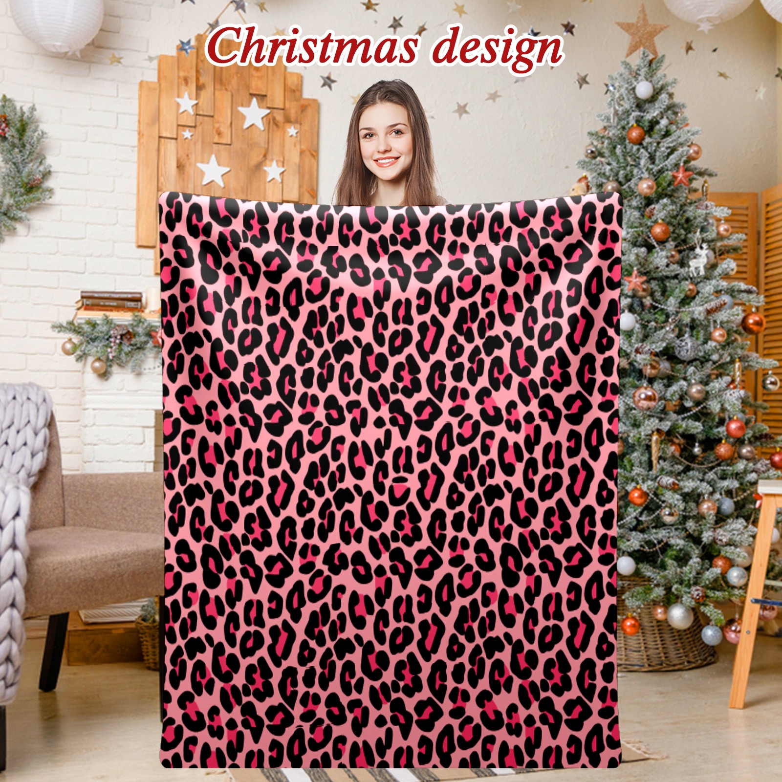 Премиальная фланелевая одеяло Pink Black Leopard