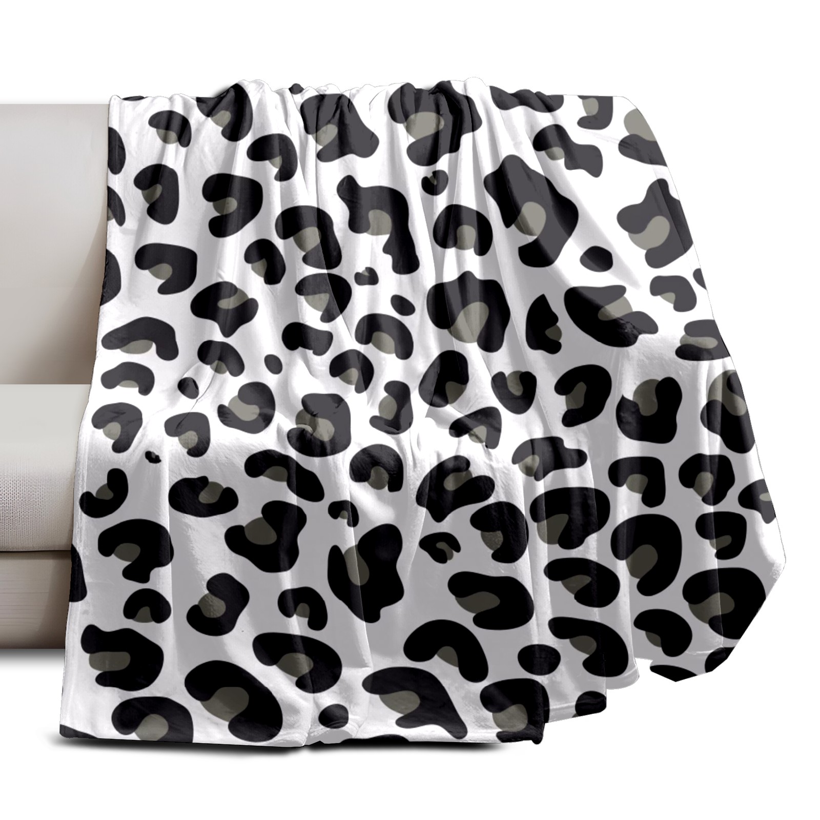 Премиальная фланелевая одеяло Grey Spots Leopard