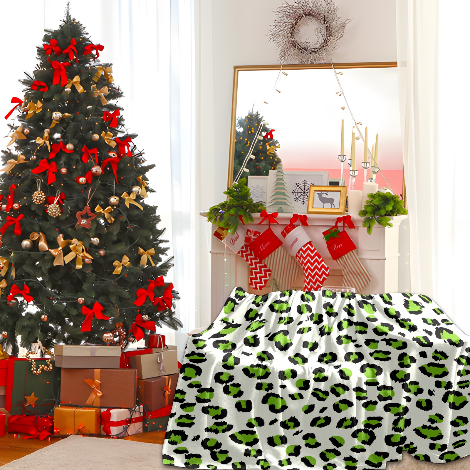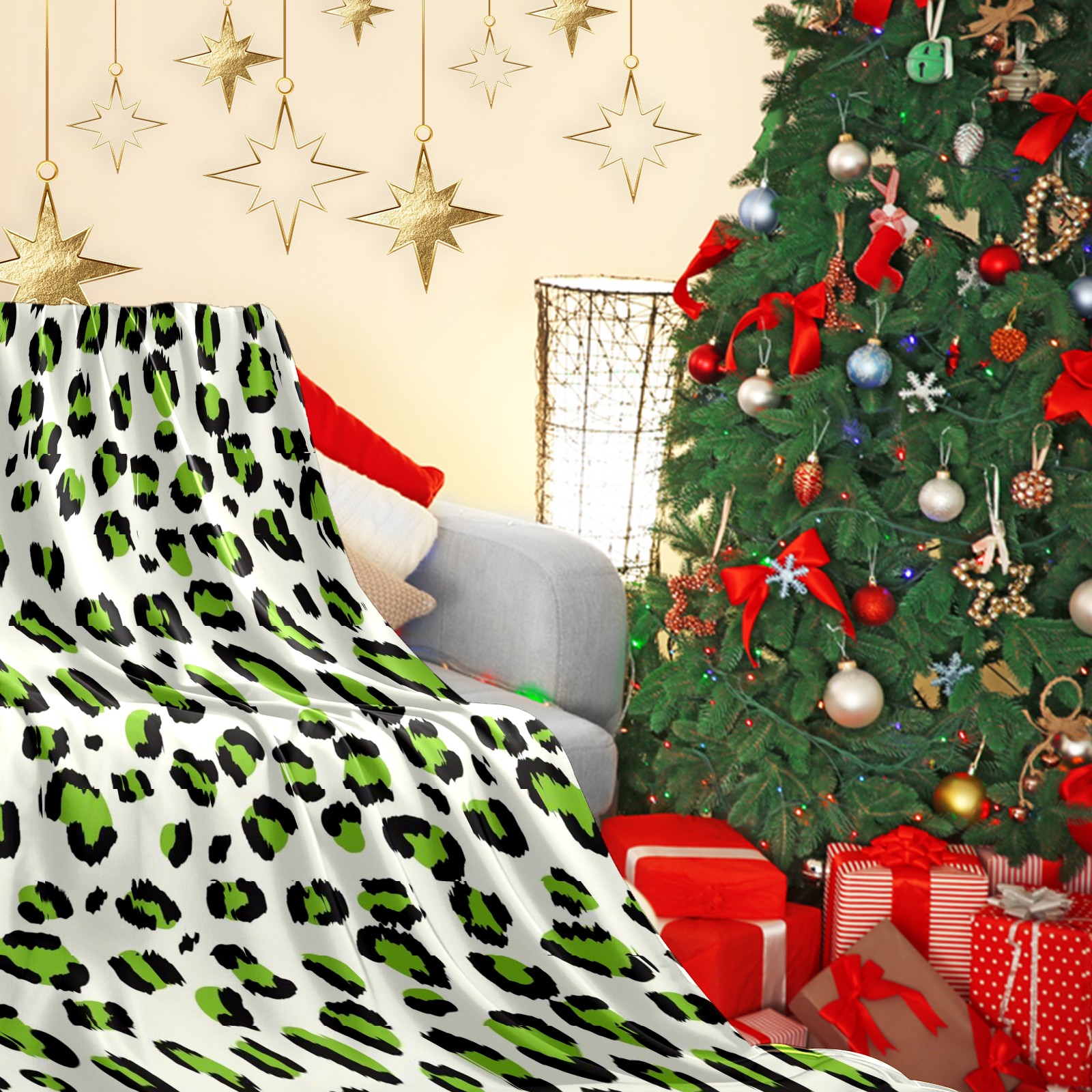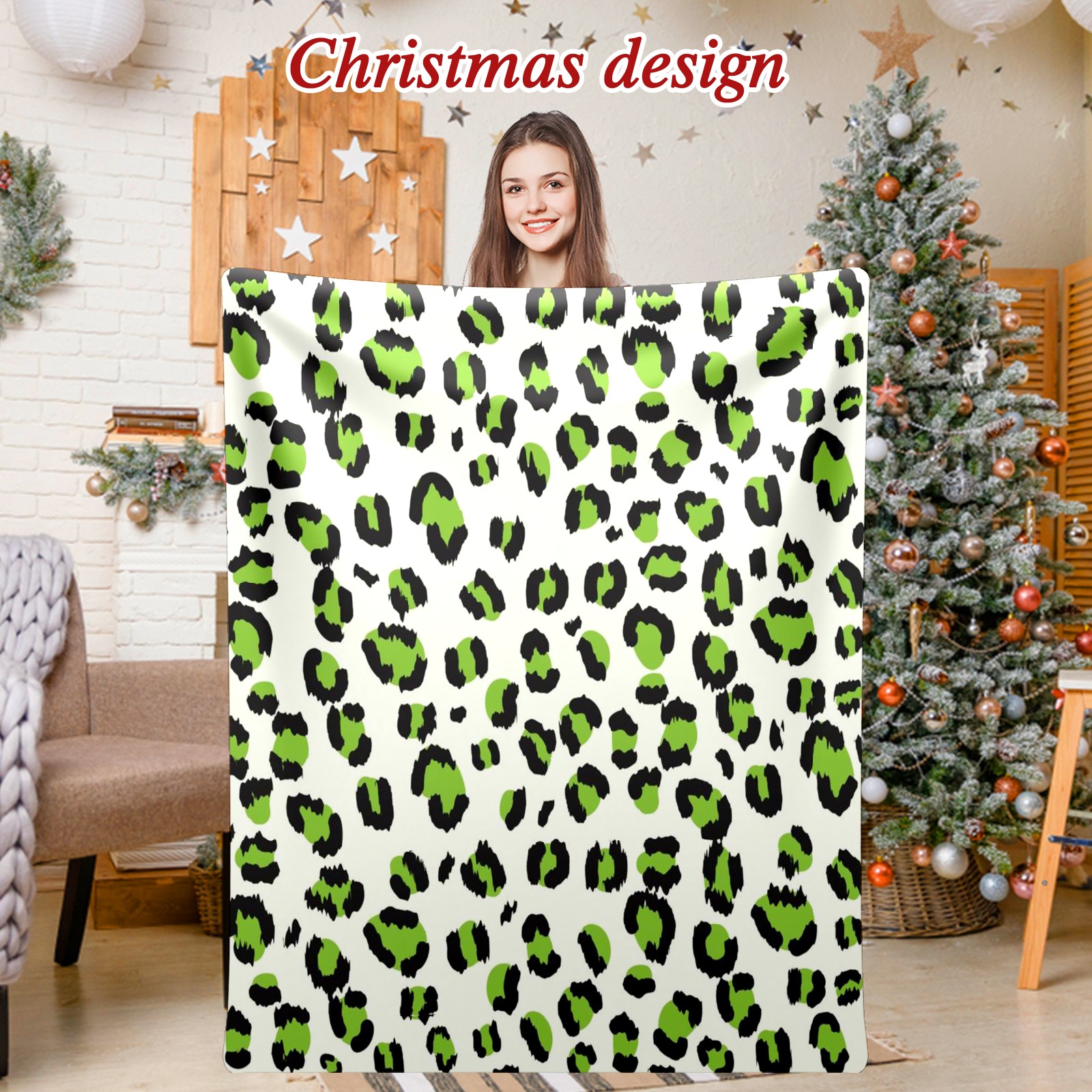 Премиальная фланелевая одеяло Green Leopard
