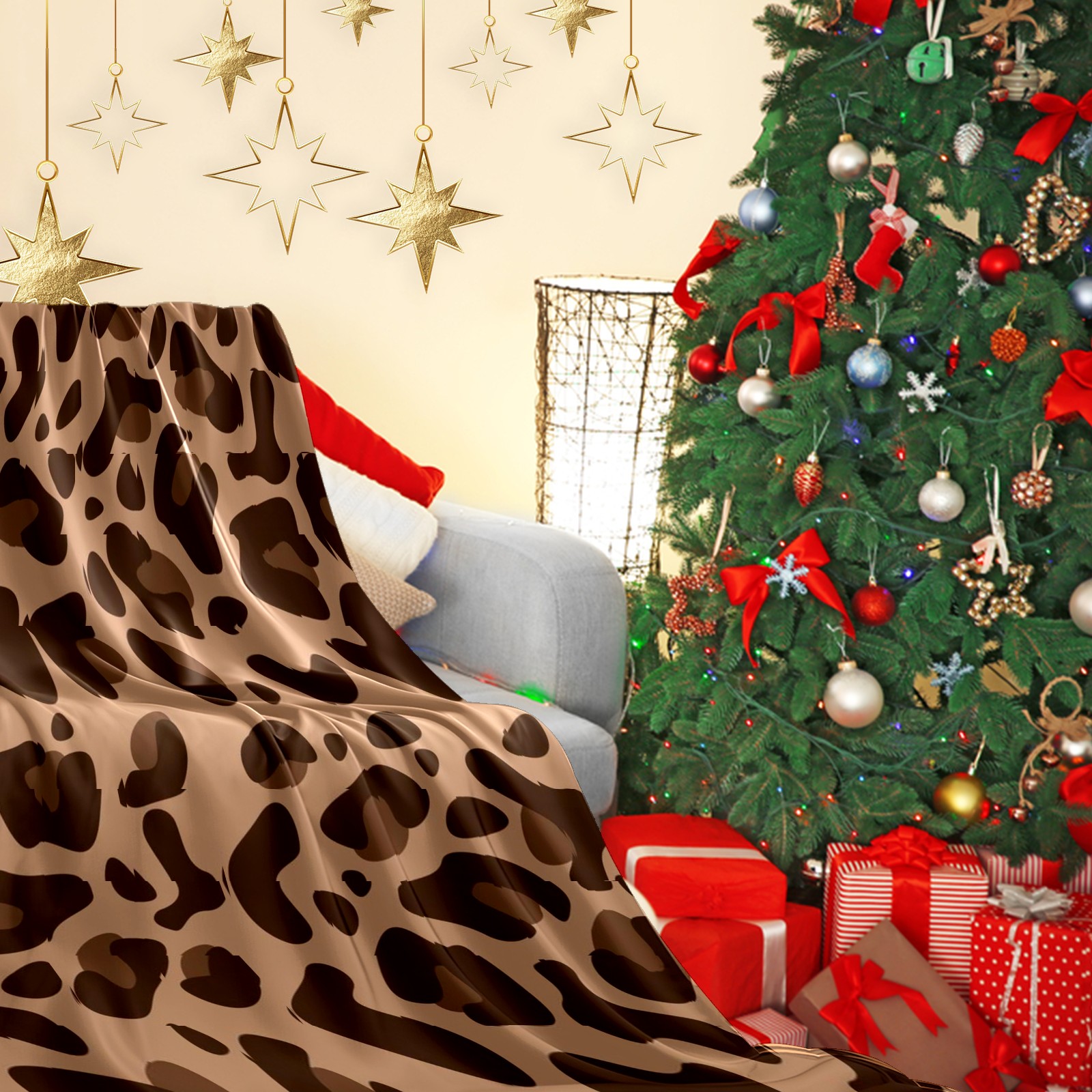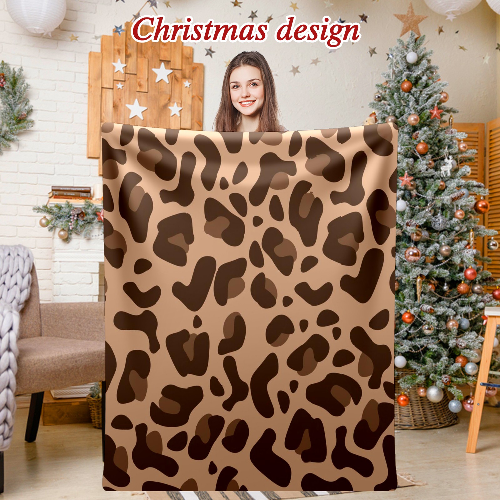 Премиальная фланелевая одеяло Brown Leopard