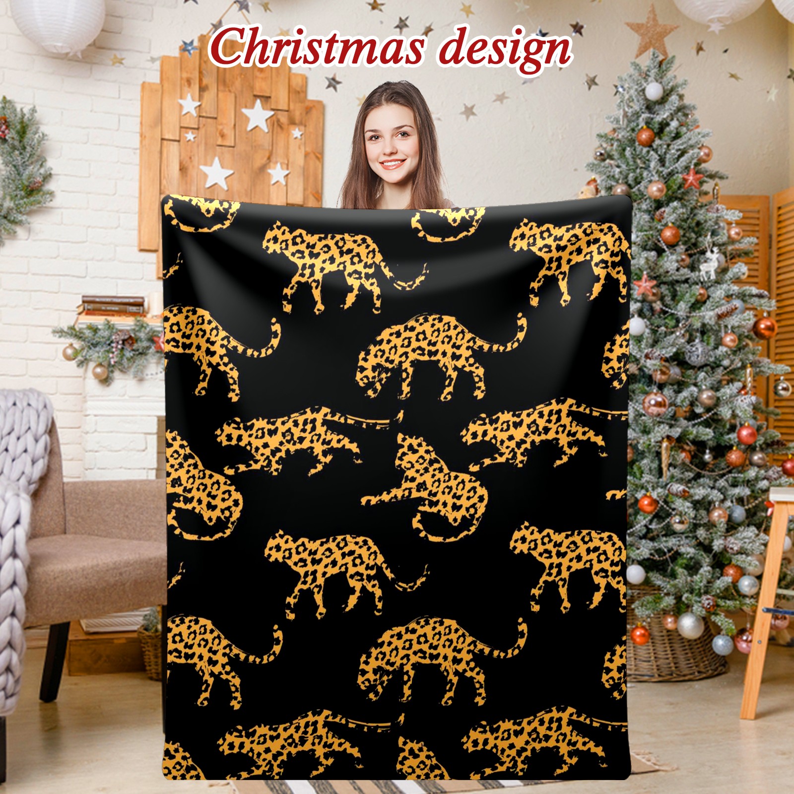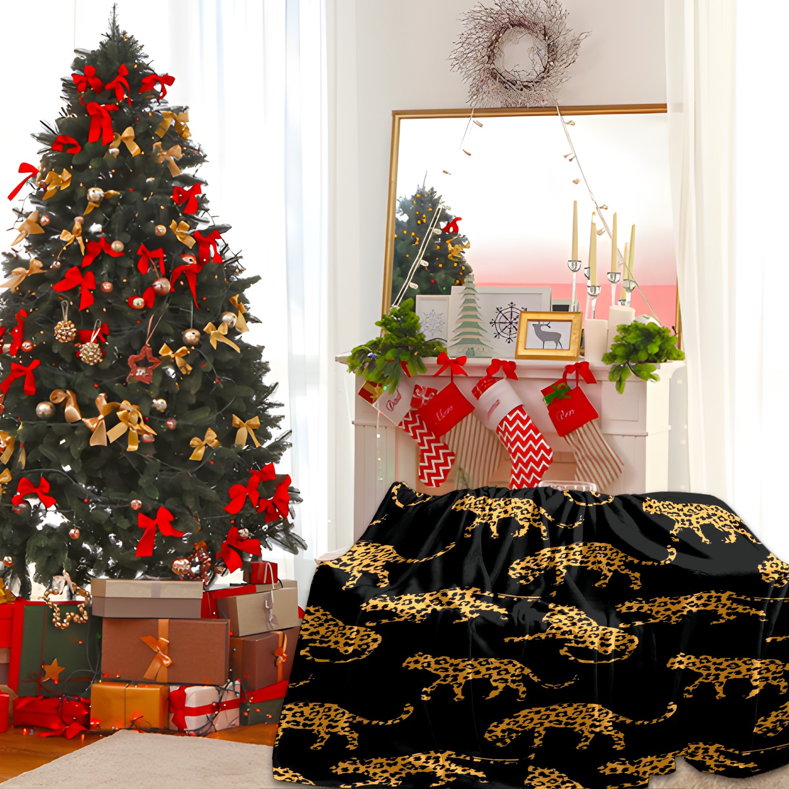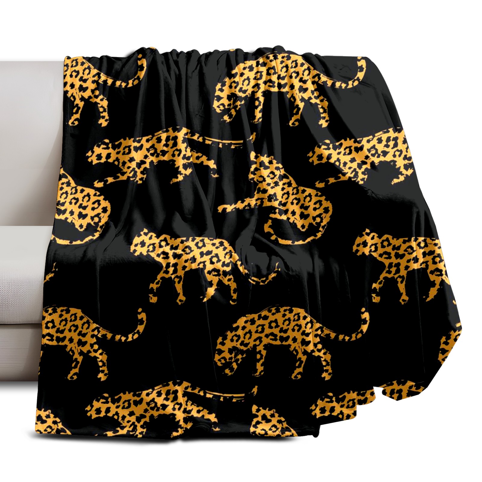 Премиальная фланелевая одеяло Black Yellow Leopard Animals