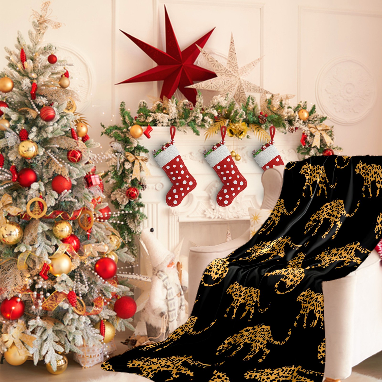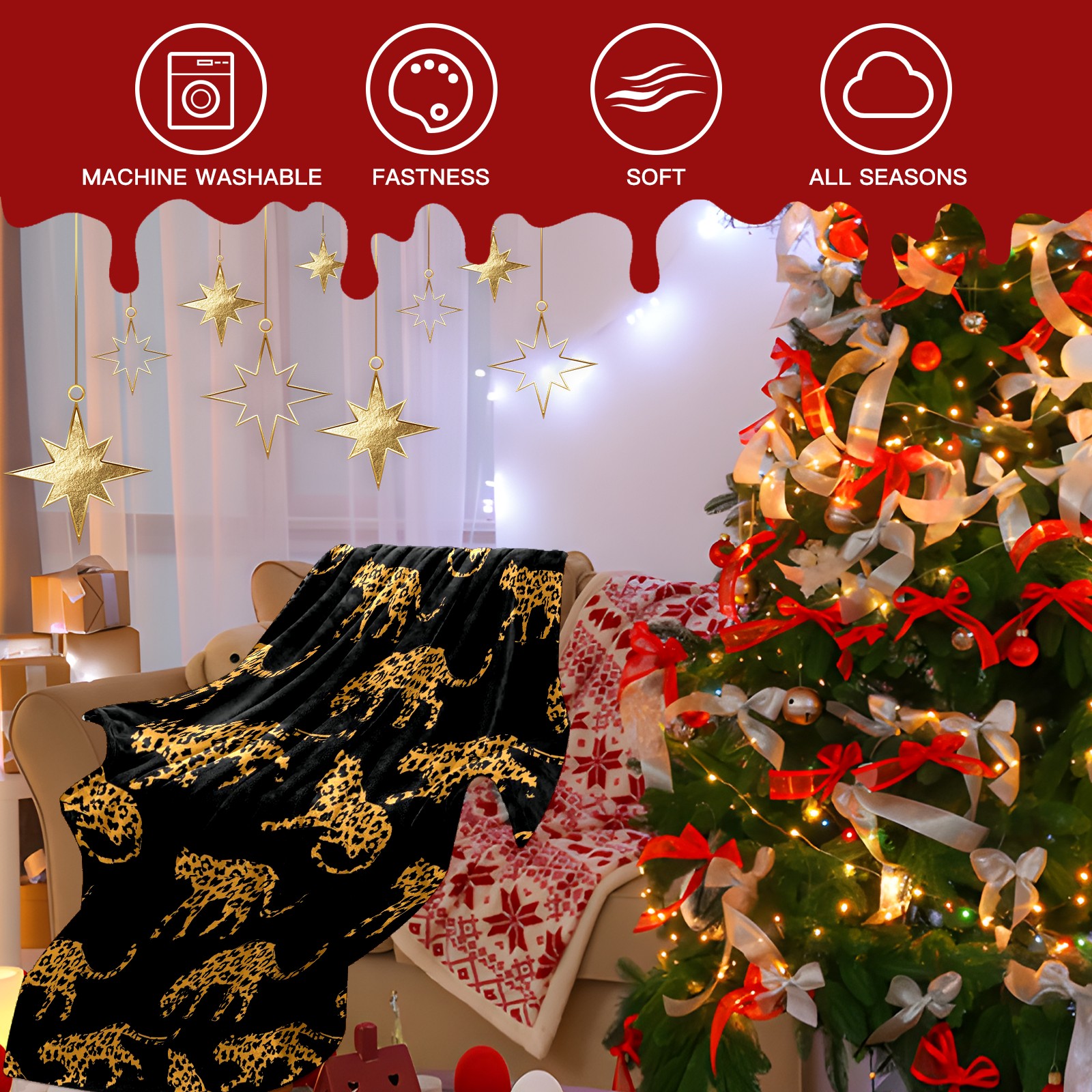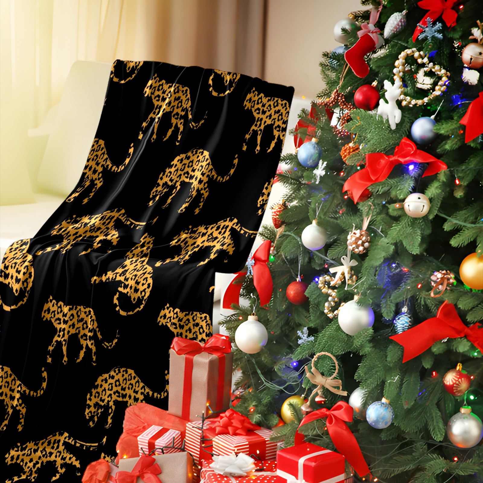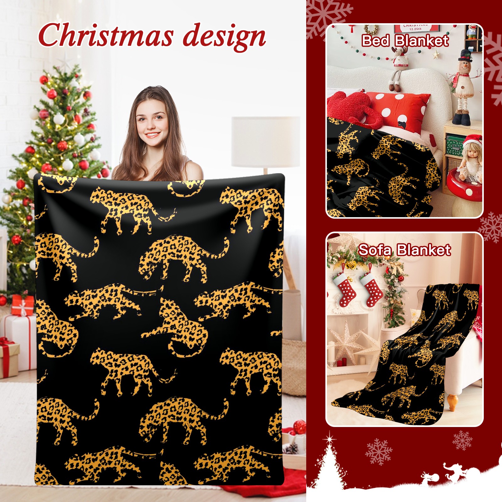 Премиальная фланелевая одеяло Black Yellow Leopard Animals