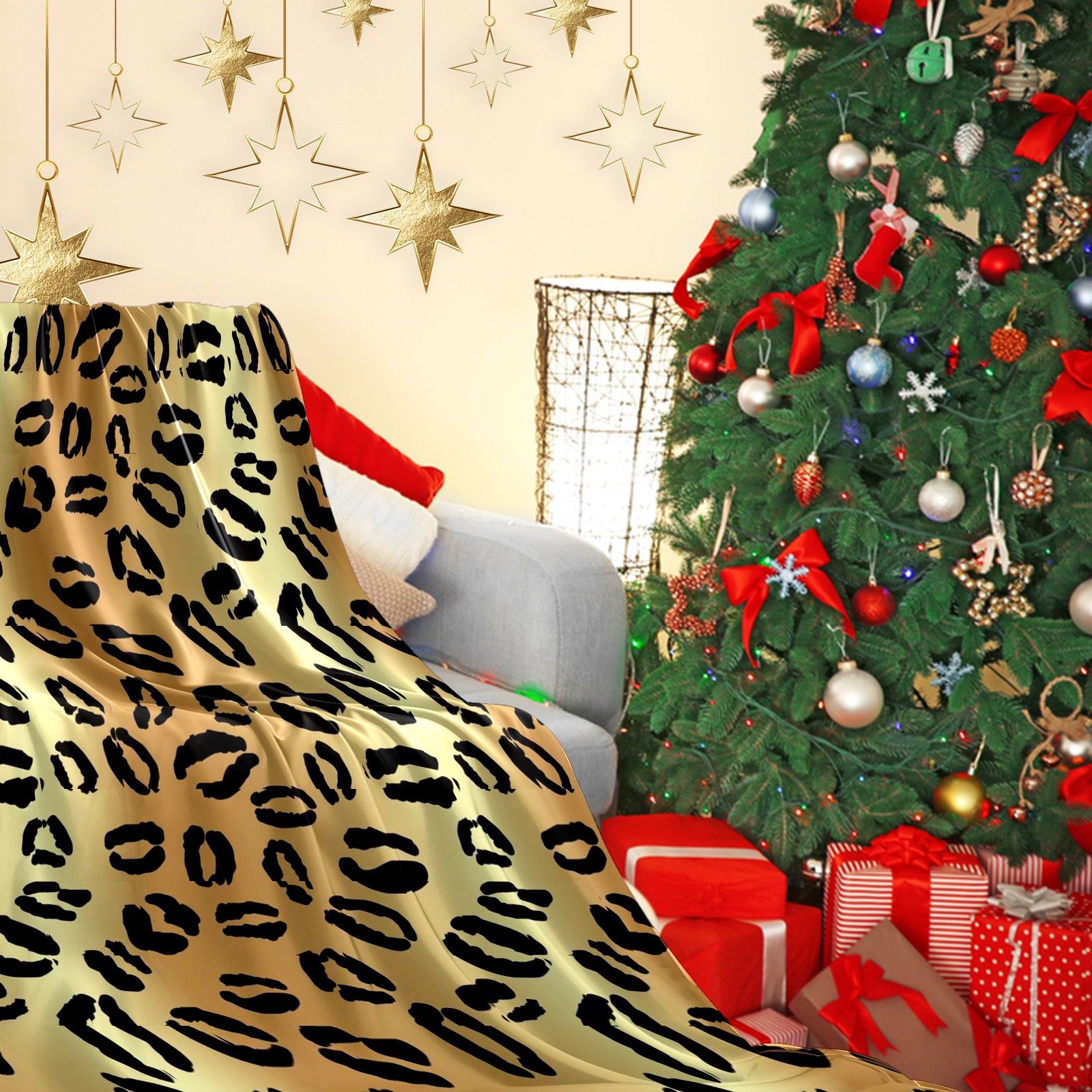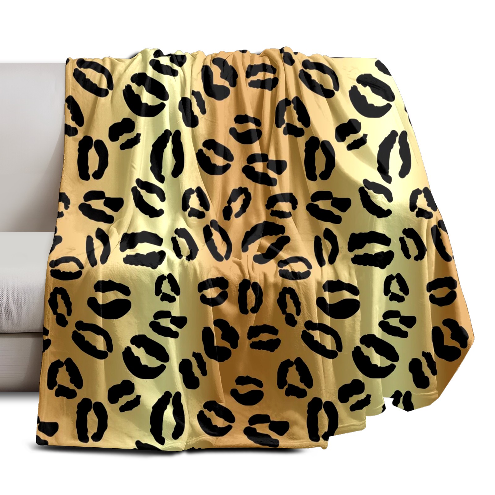 Премиальная фланелевая одеяло Black Spots Leopard Print Yellow