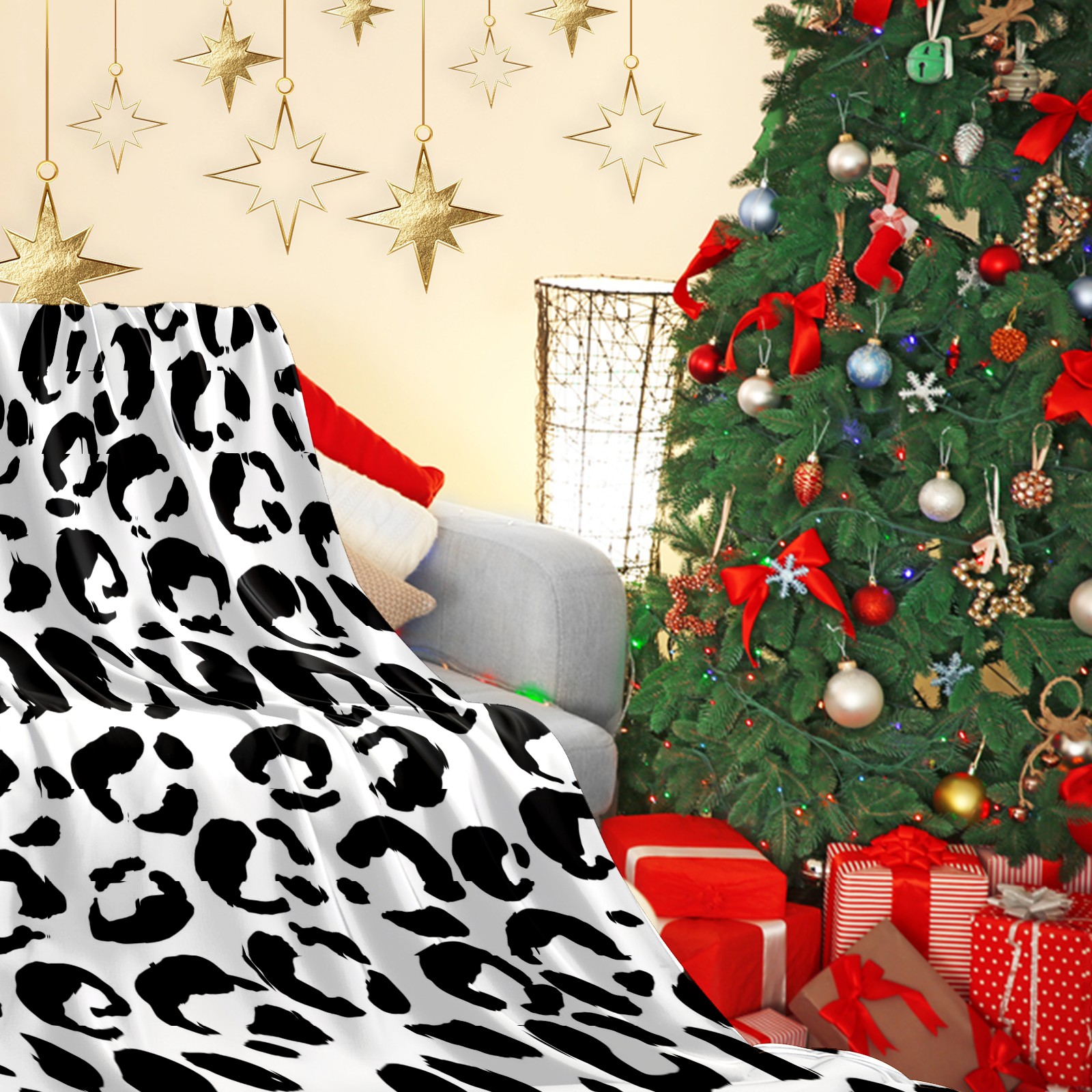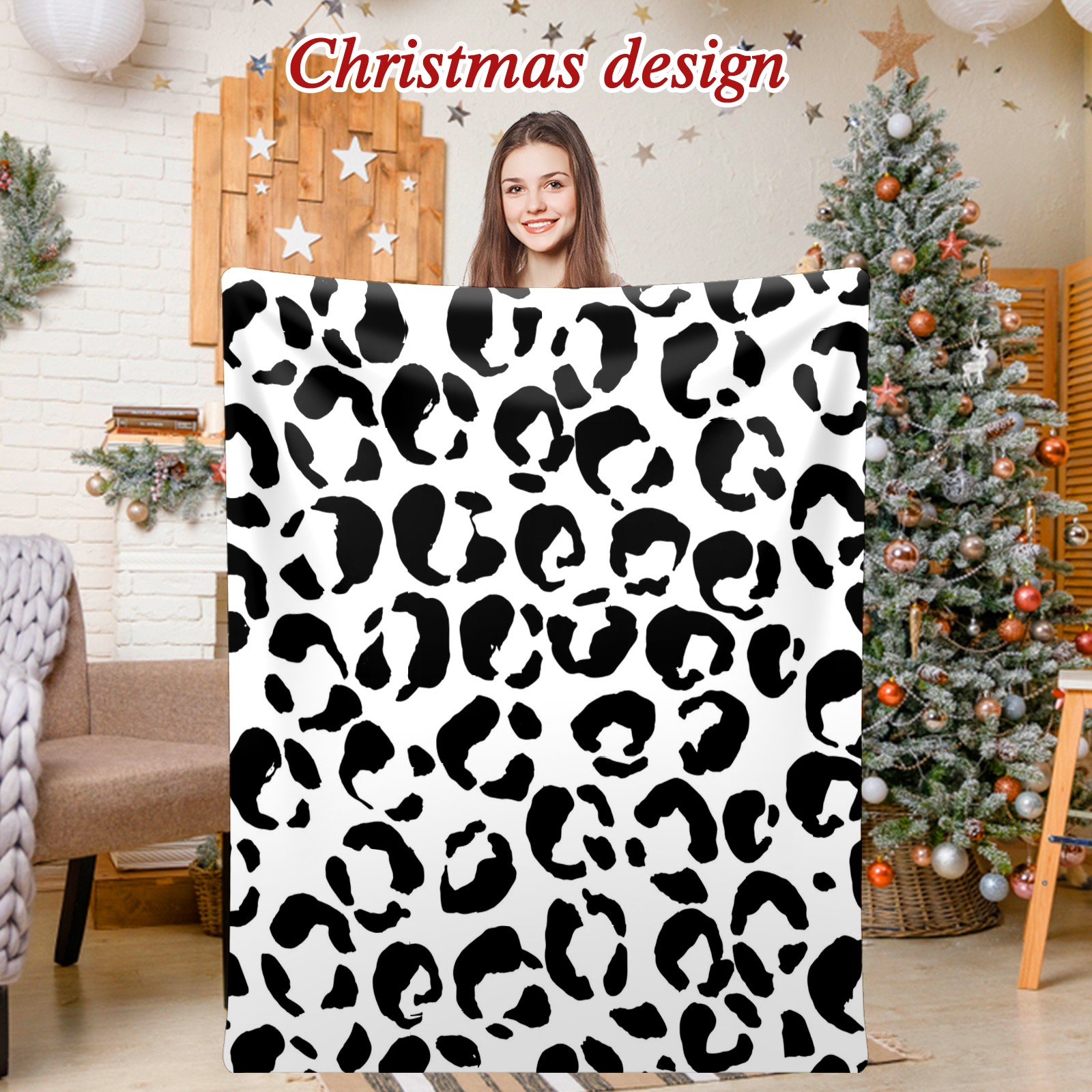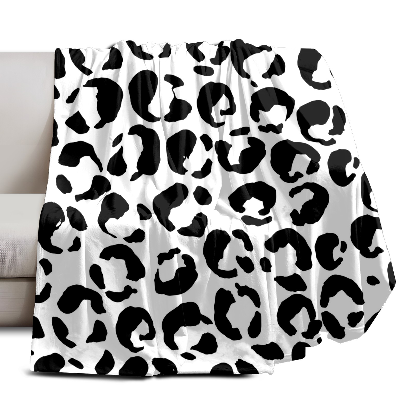 Премиальная фланелевая одеяло Black White Leopard