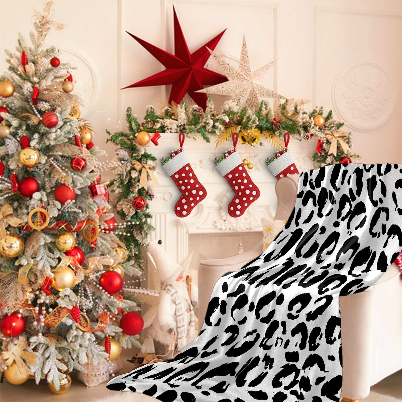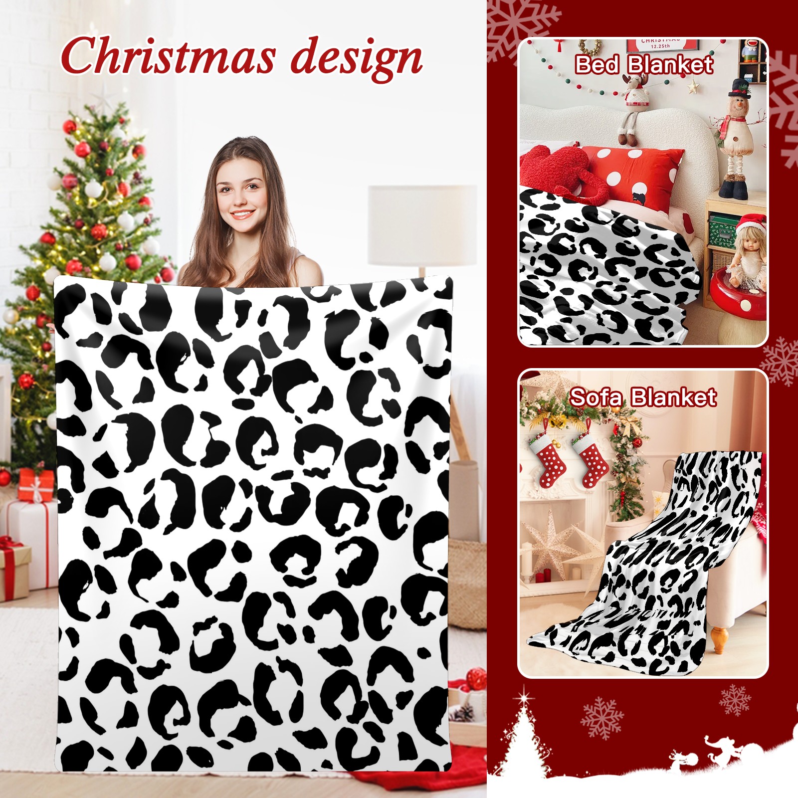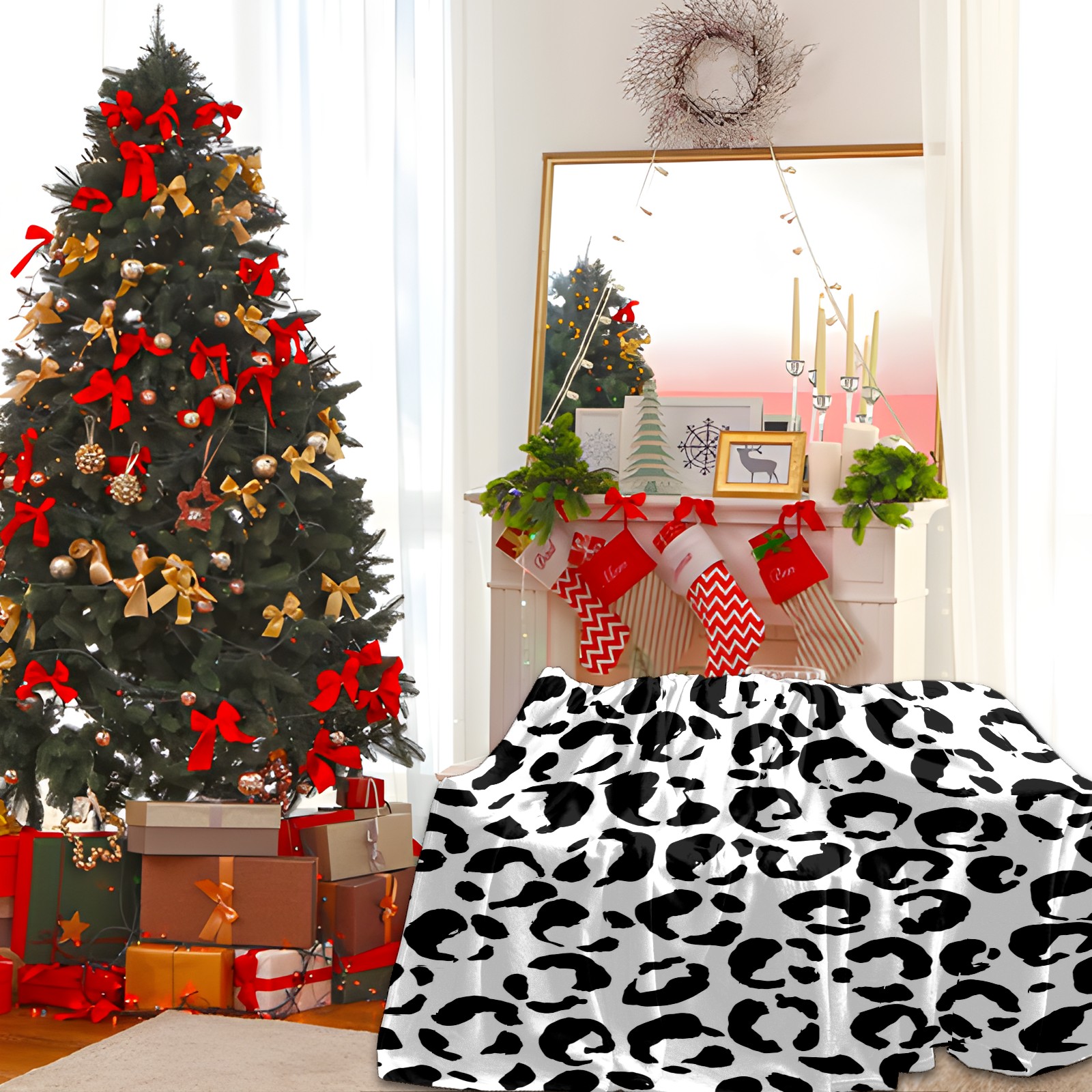 Премиальная фланелевая одеяло Black White Leopard