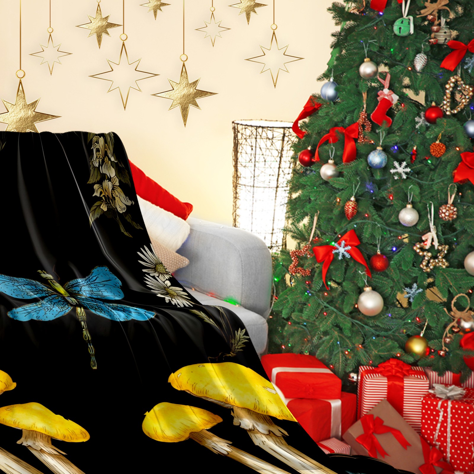 Премиальная фланелевая одеяло Yellow Mushrooms