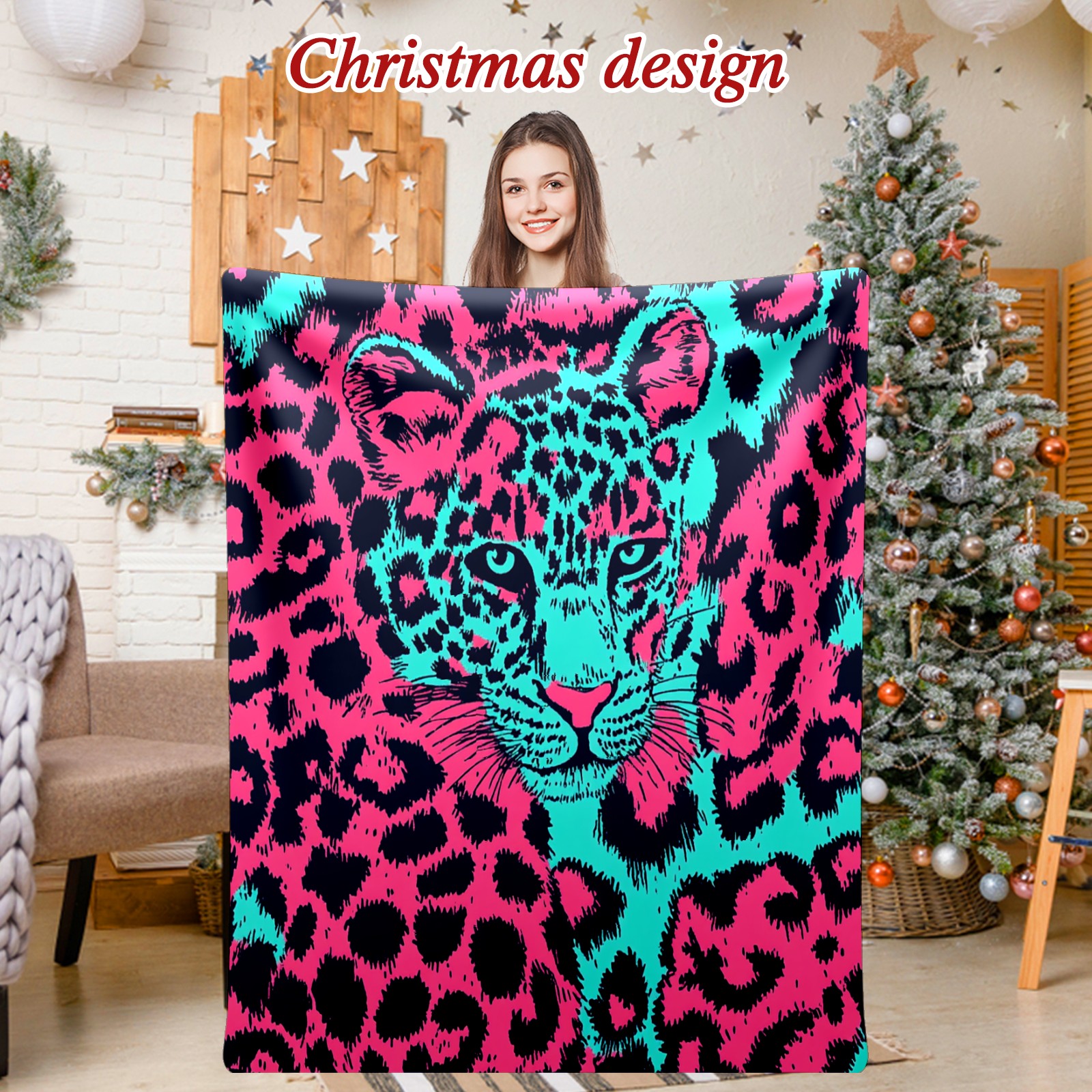 Премиальная фланелевая одеяло Leopard Head