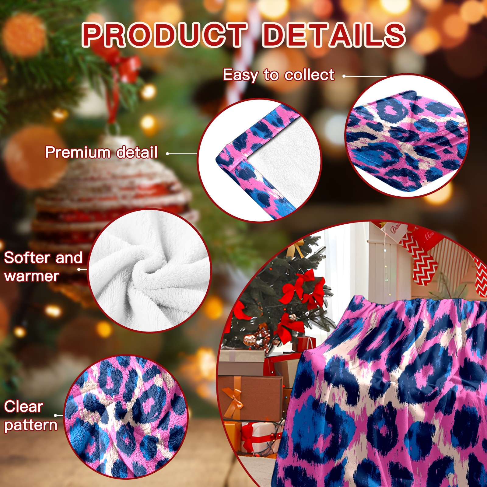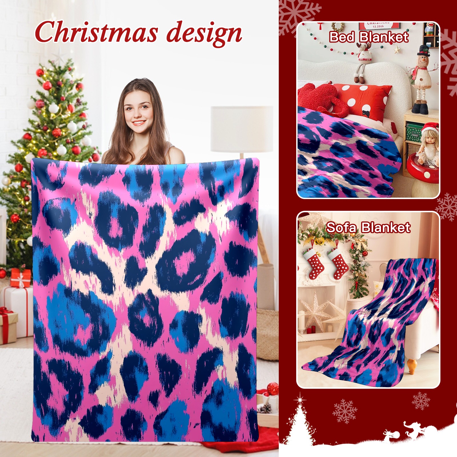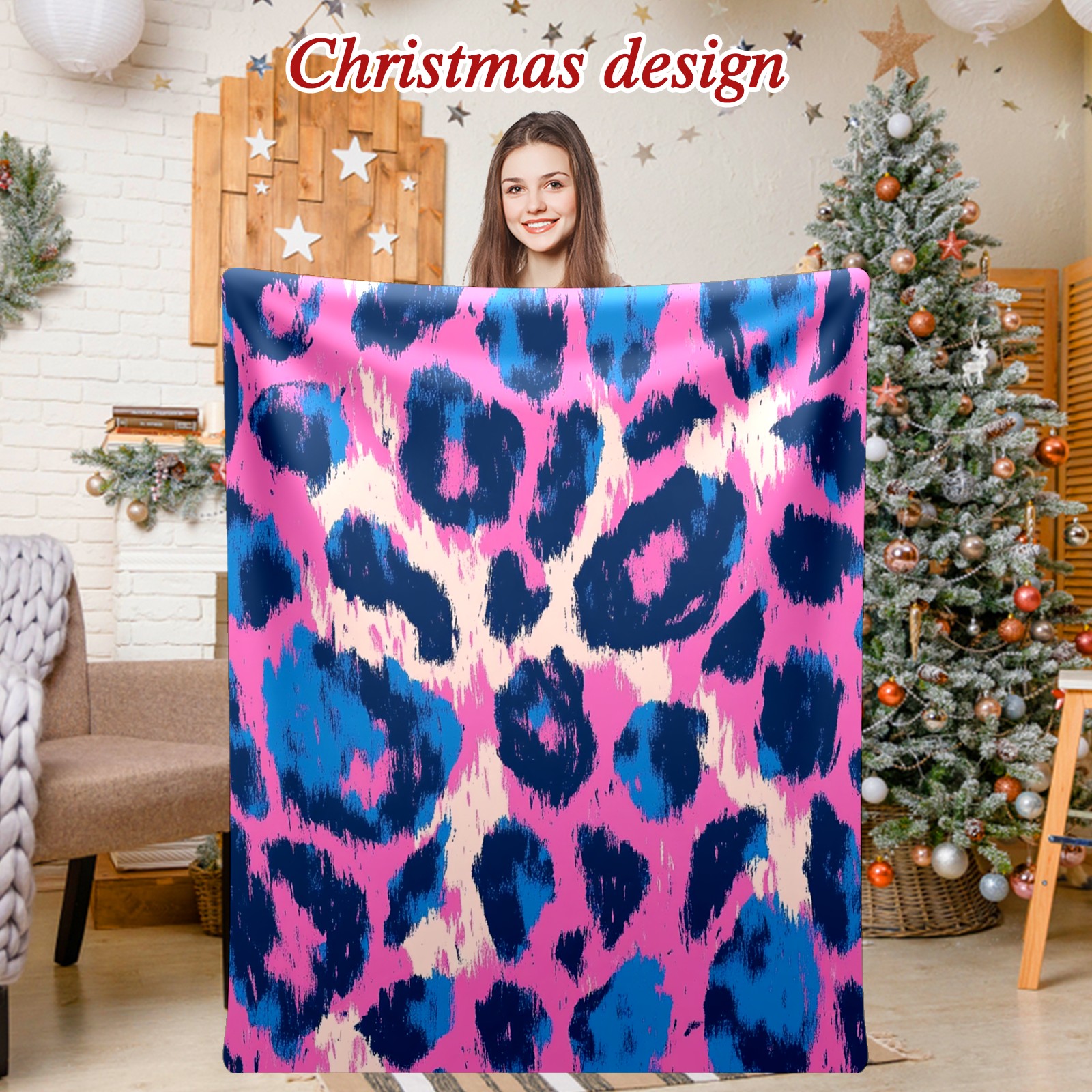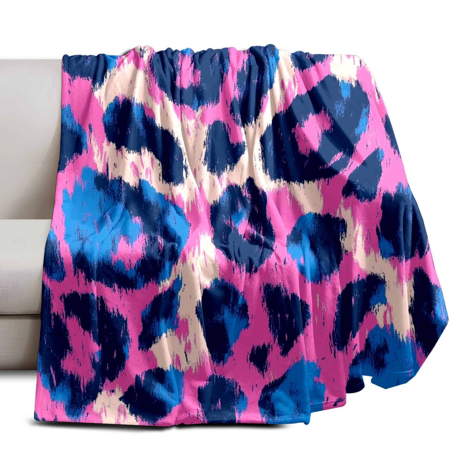 Премиальная фланелевая одеяло Dark Blue Pink Leopard Print