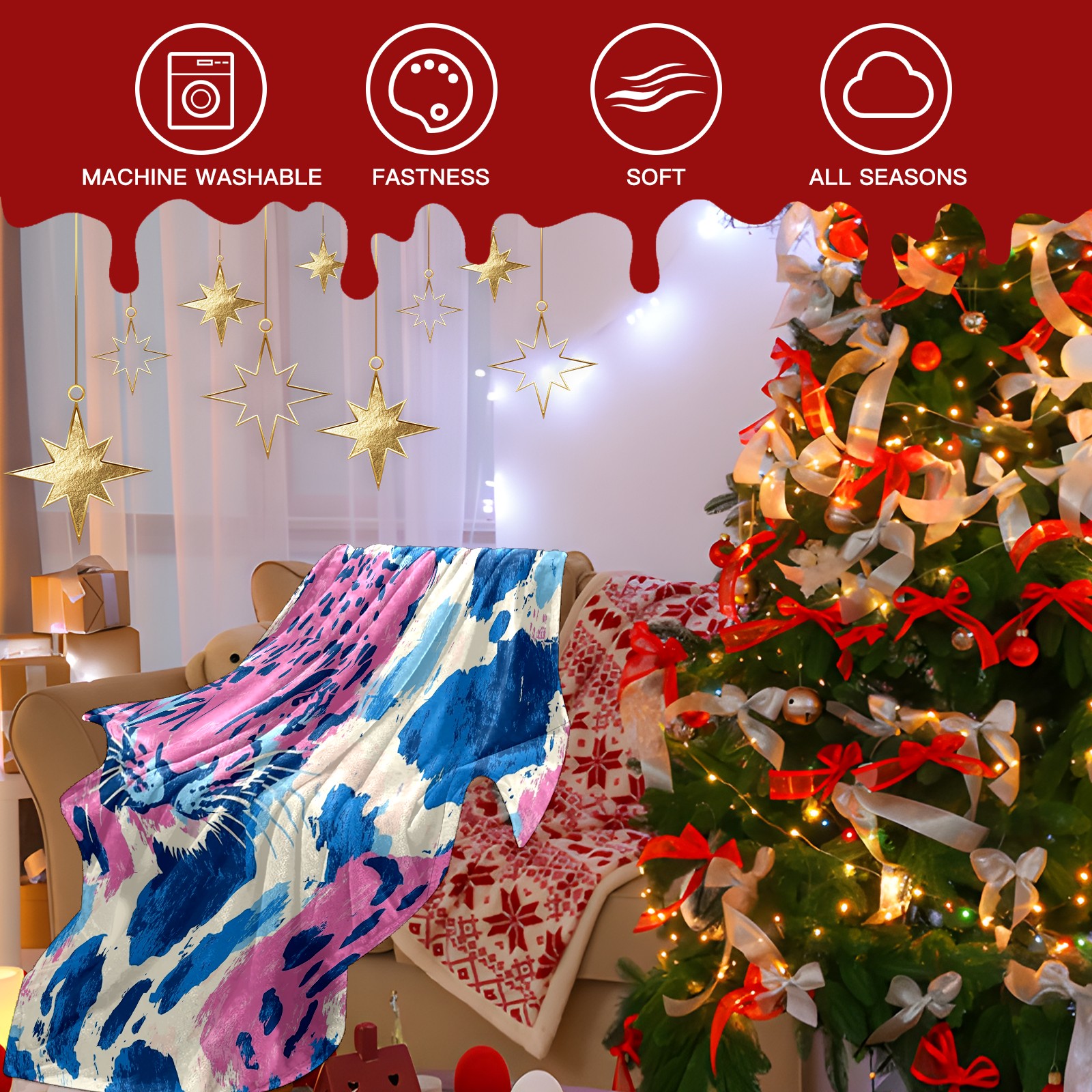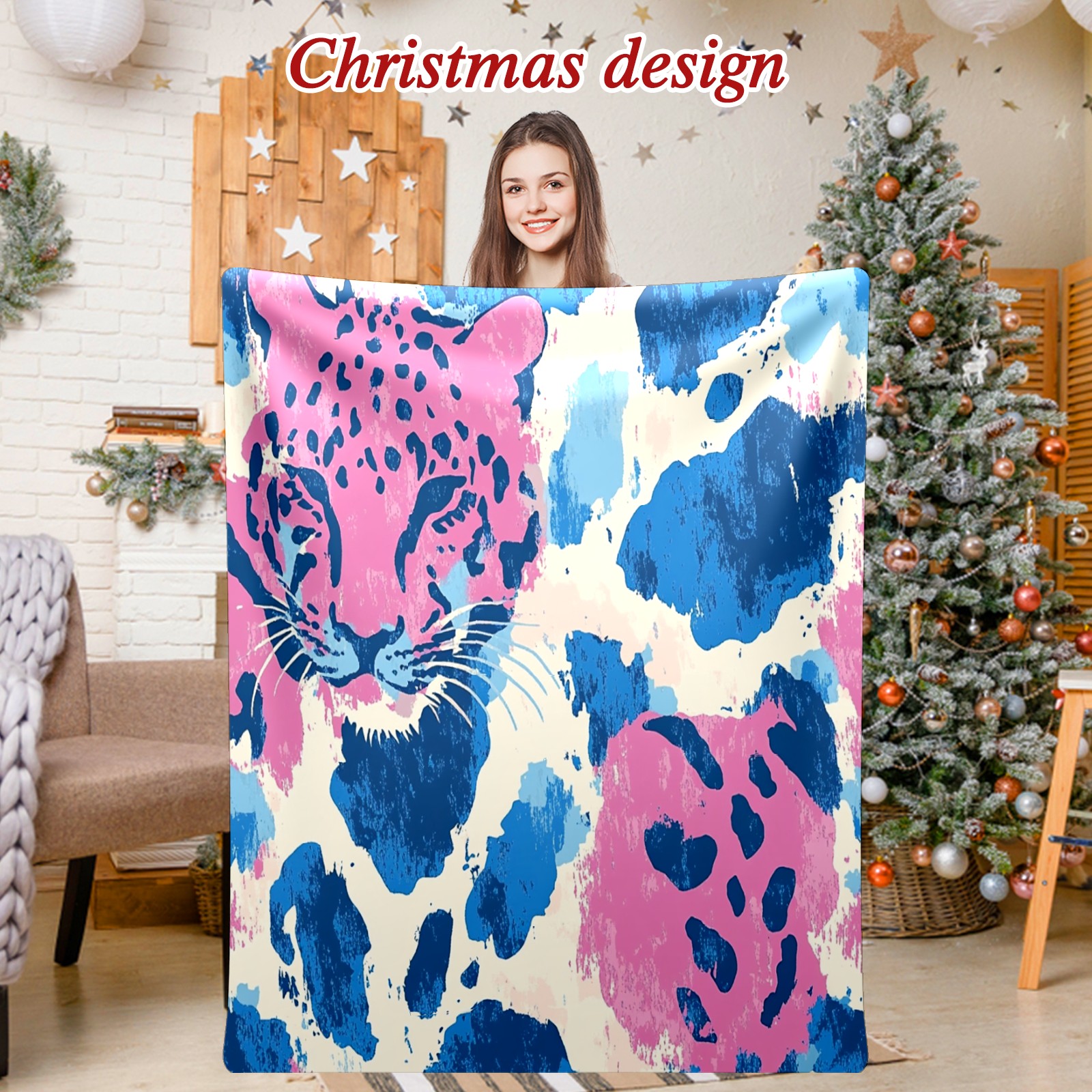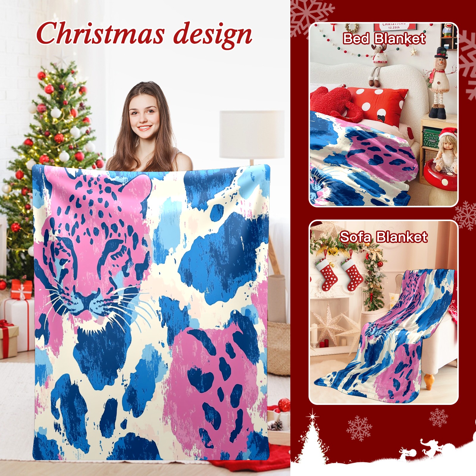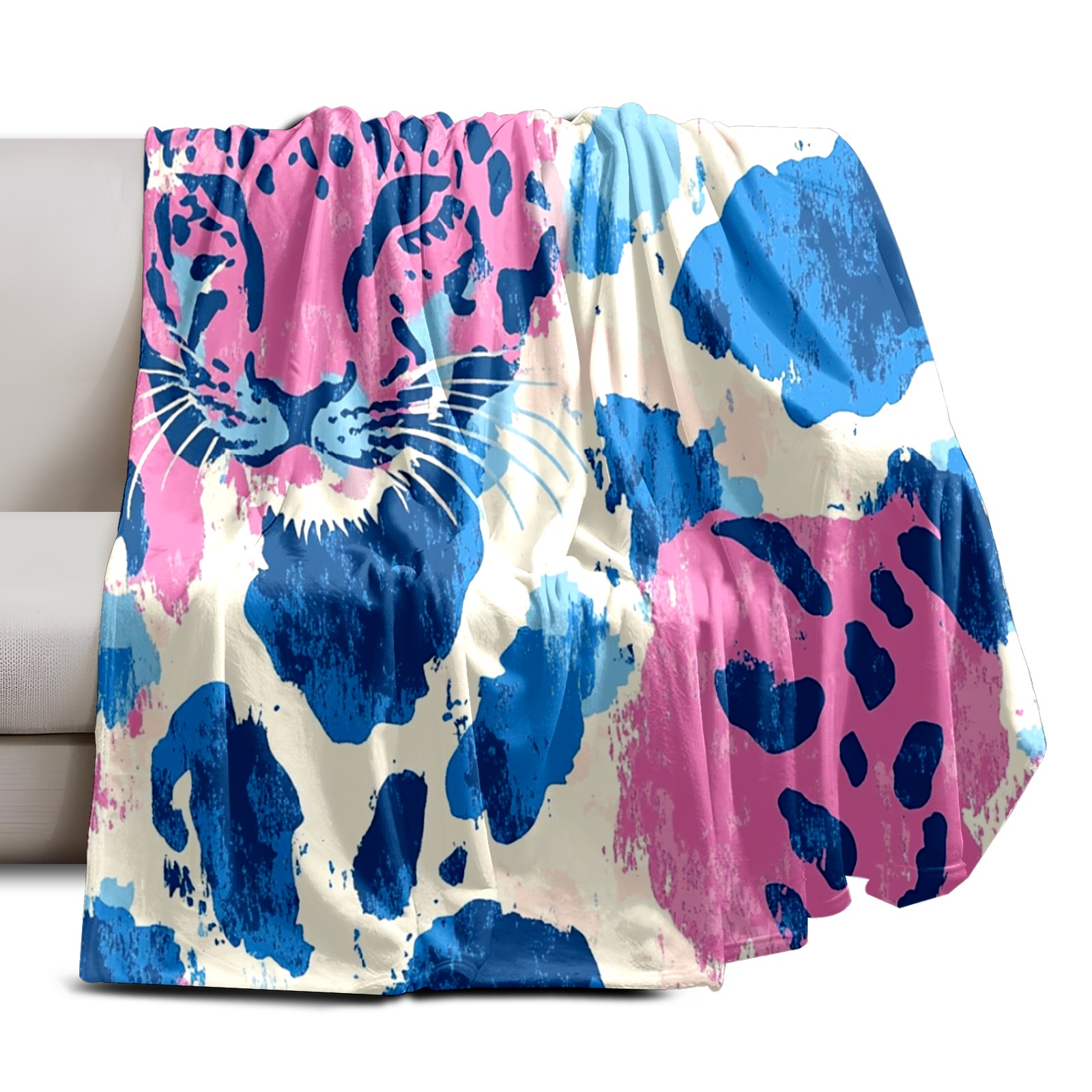 Премиальная фланелевая одеяло Blue Pink Leopard Print
