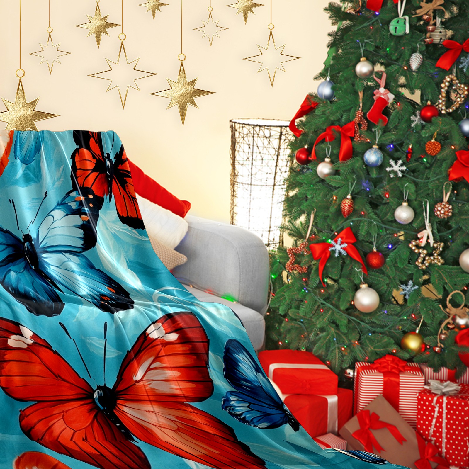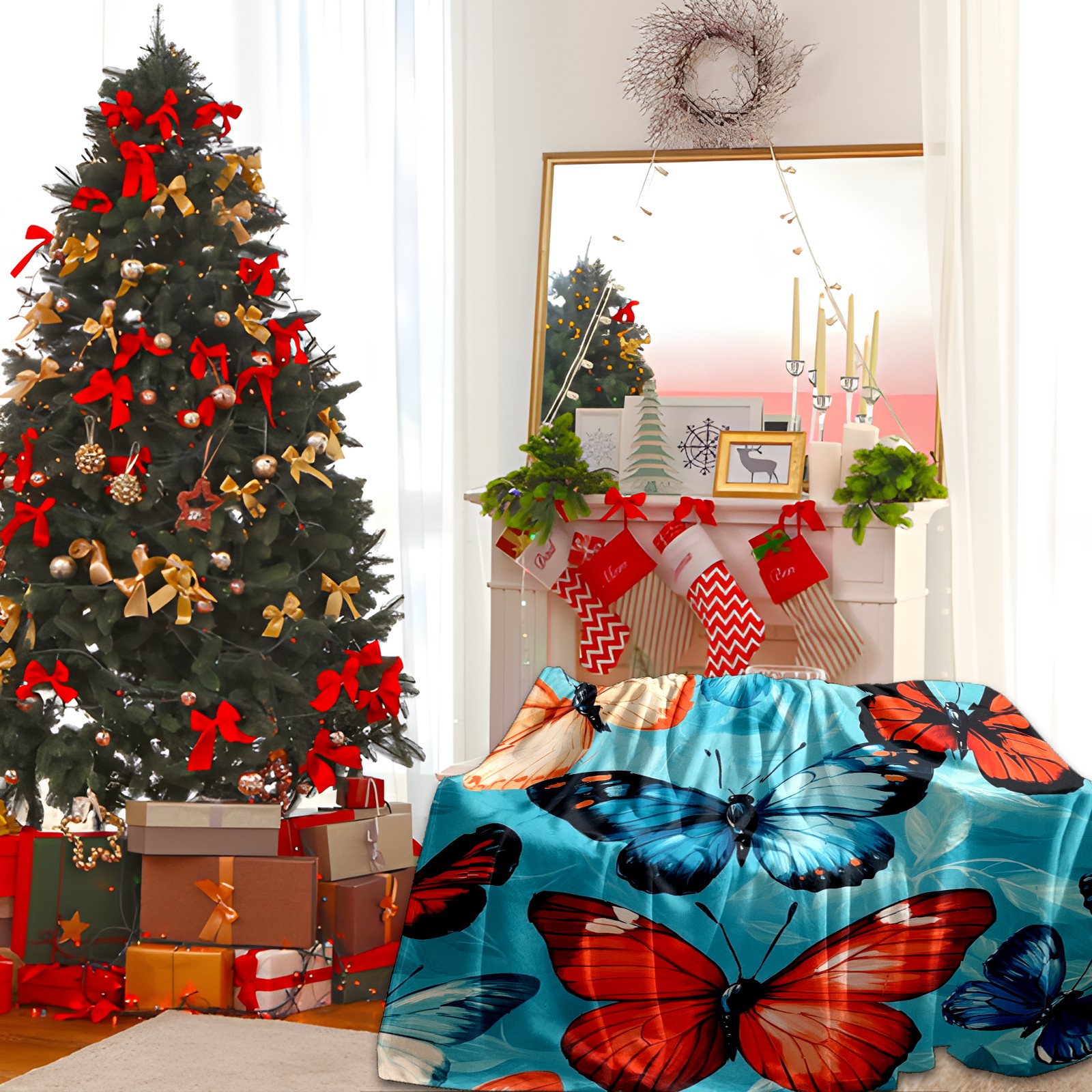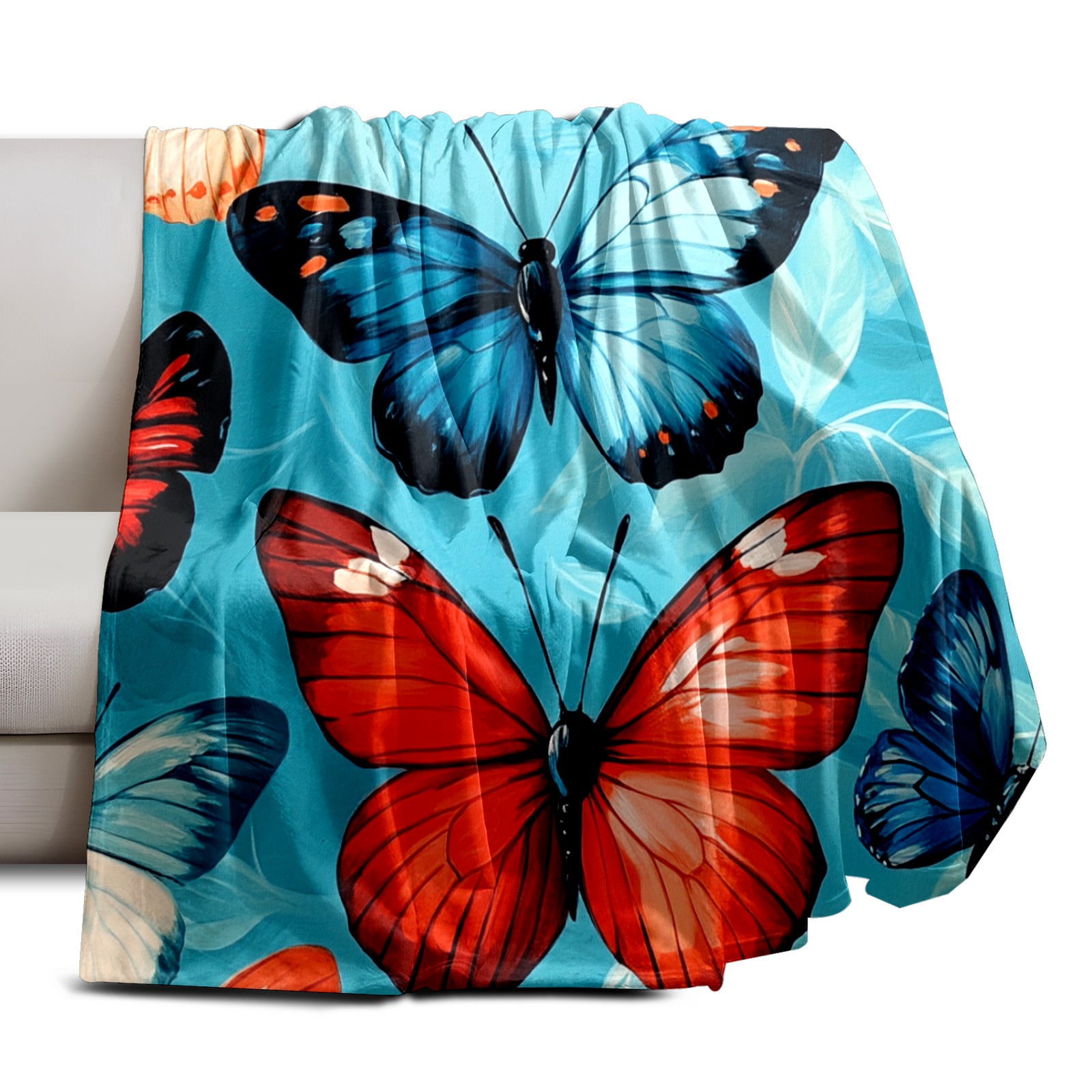 Премиальная фланелевая одеяло Blue Red Butterfly