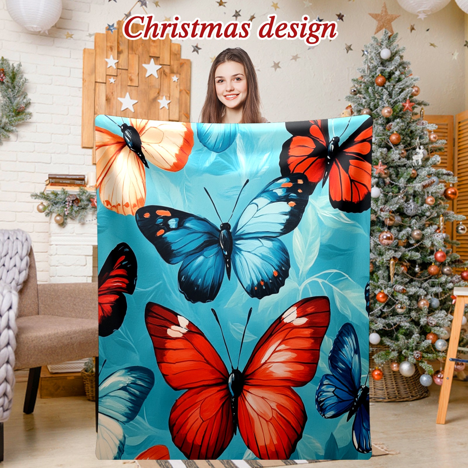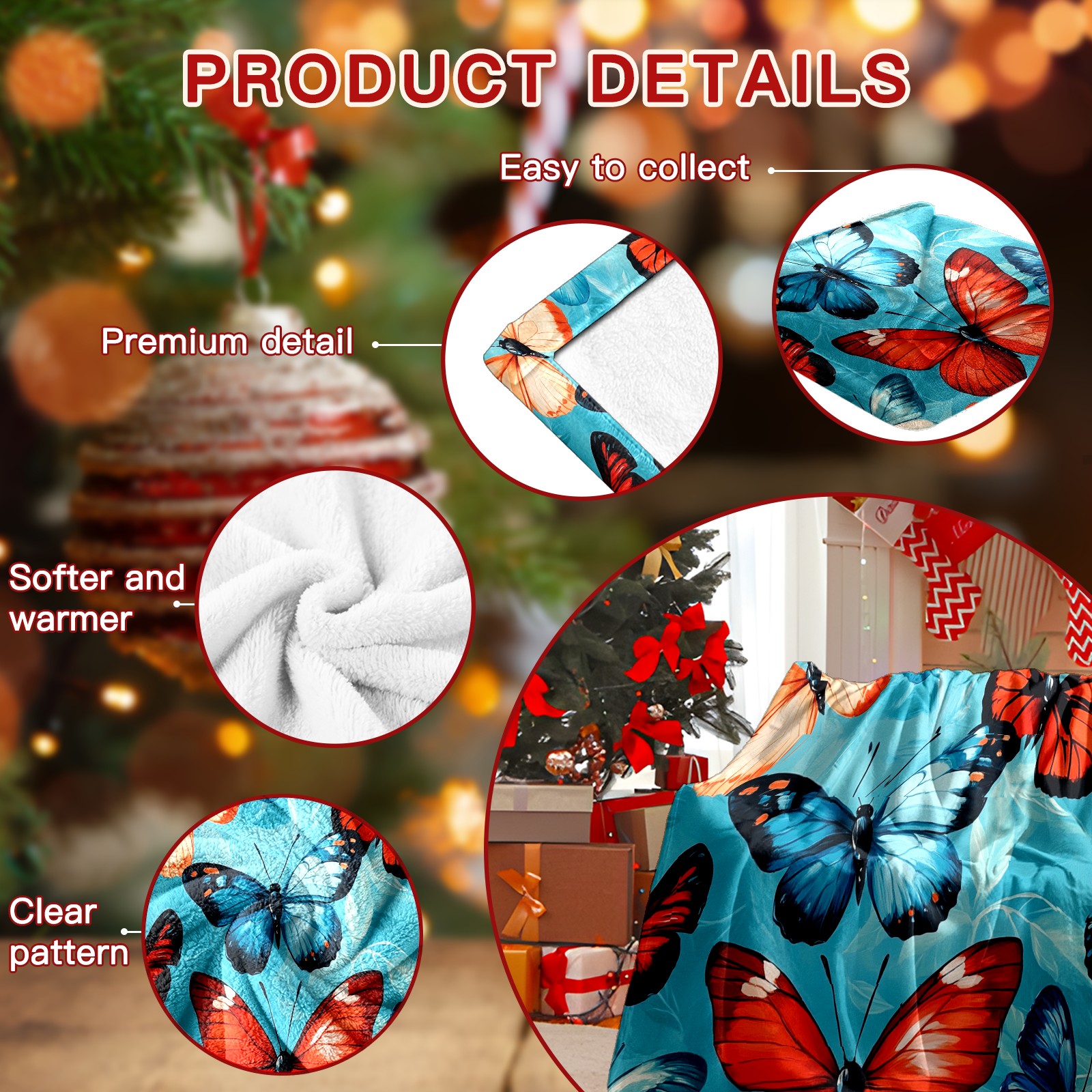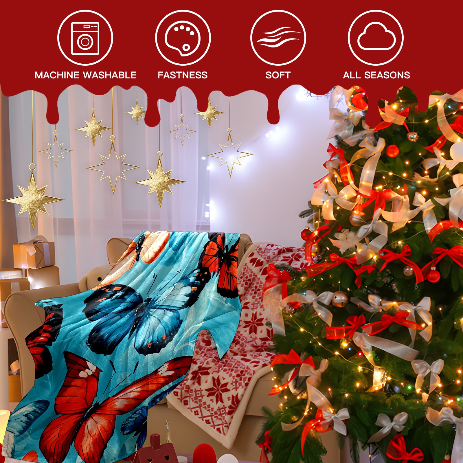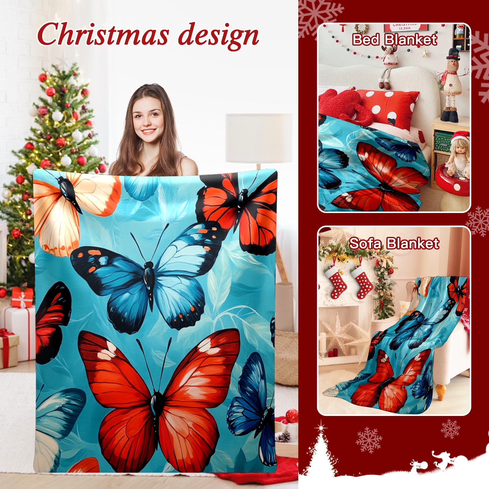 Премиальная фланелевая одеяло Blue Red Butterfly