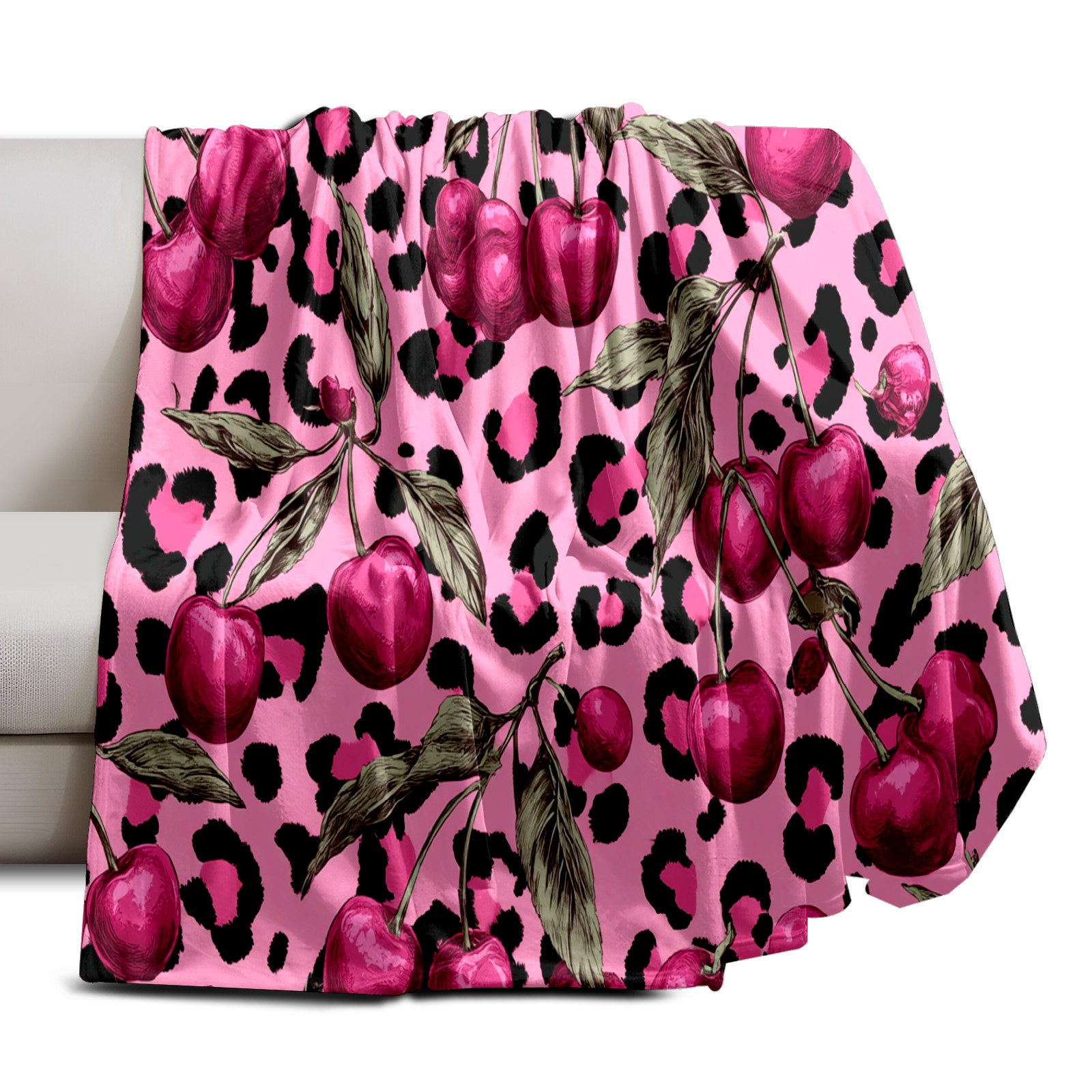 Премиальная фланелевая одеяло Playful Leopard Cherry Pink