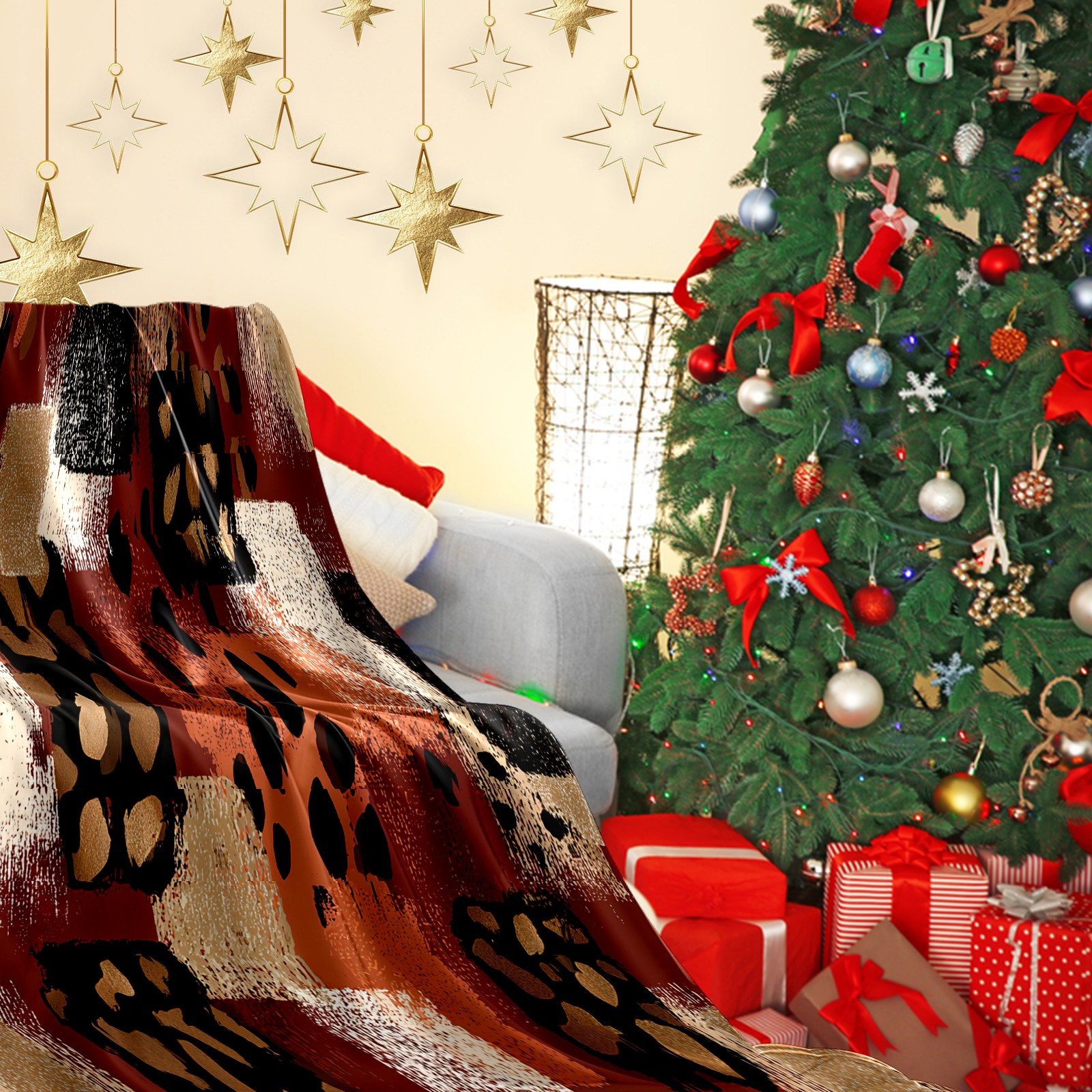 Премиальная фланелевая одеяло Artistic Collage Leopard Brown
