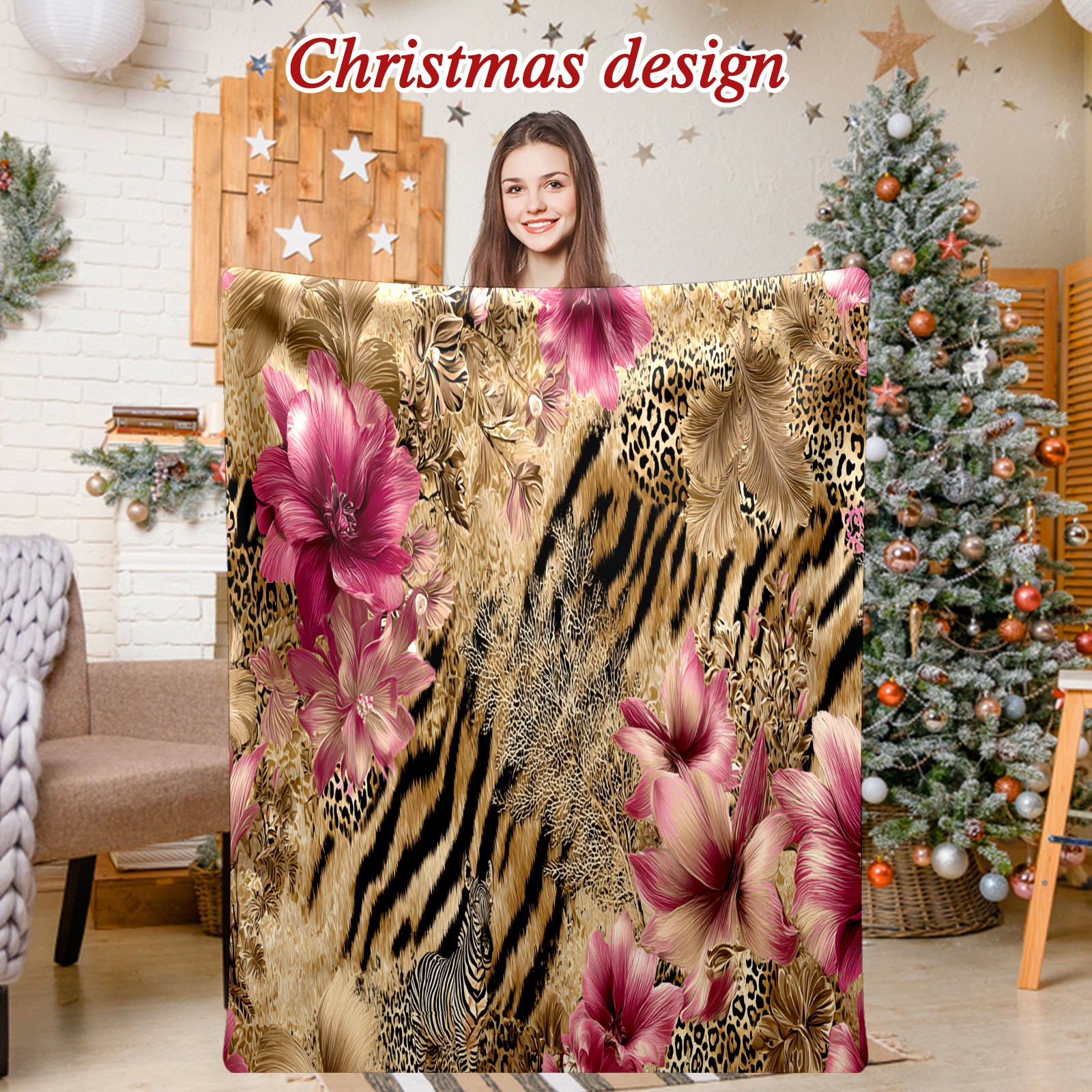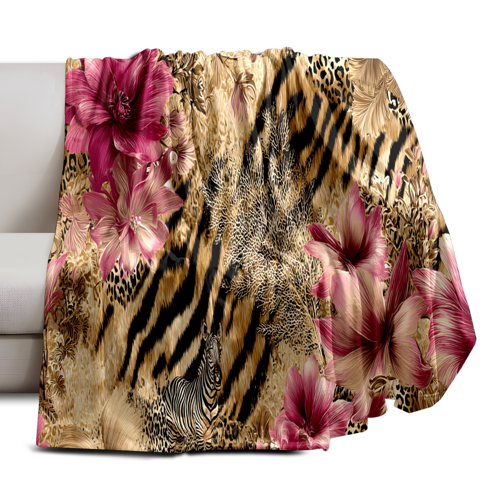 Премиальная фланелевая одеяло Romantic Flower Tiger Pink