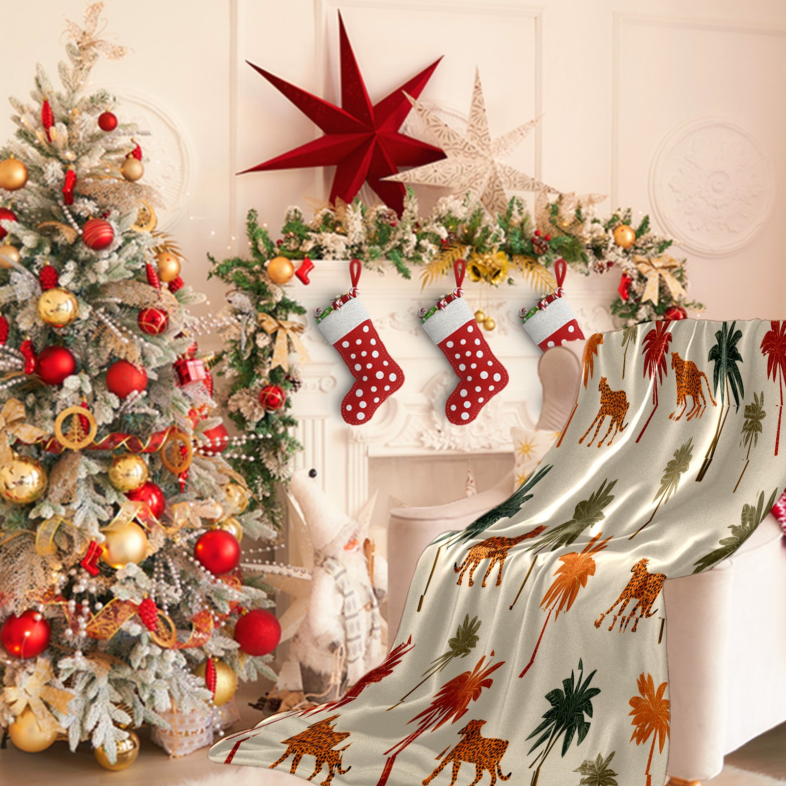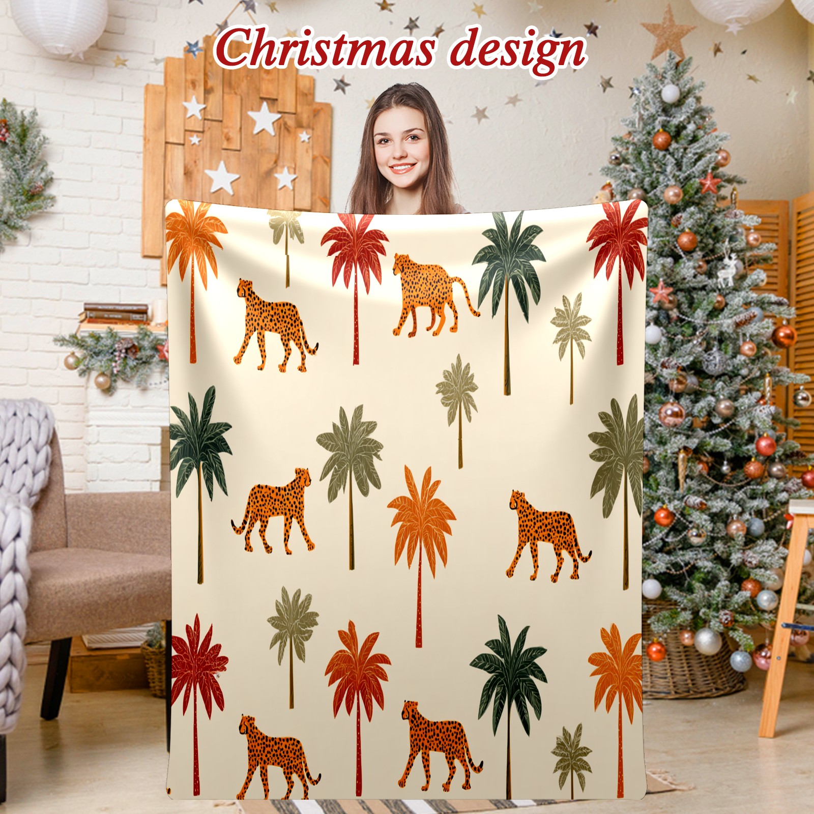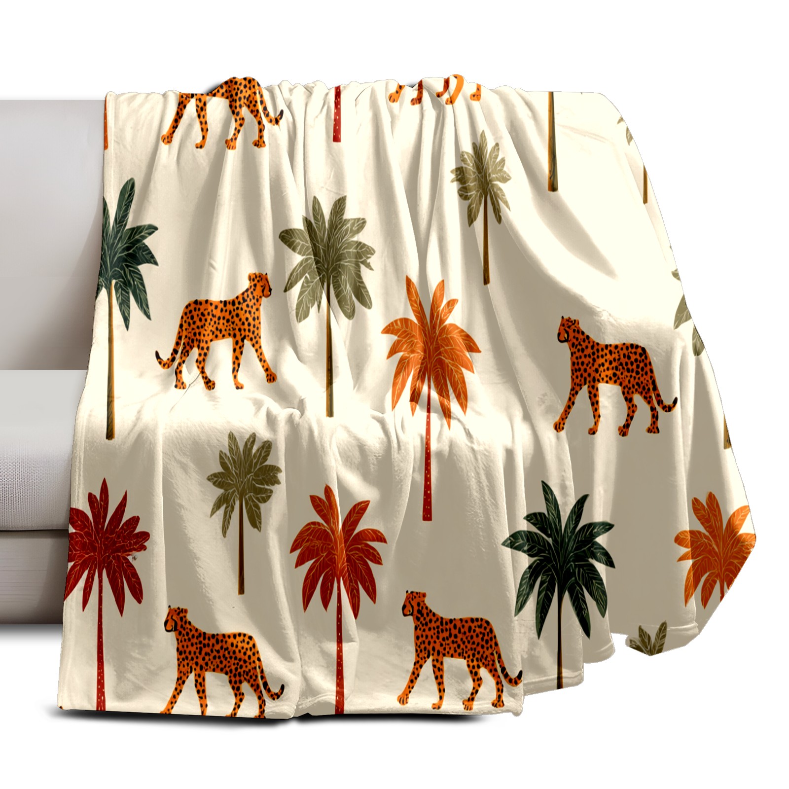 Премиальная фланелевая одеяло Tropical Palm Leopard Brown