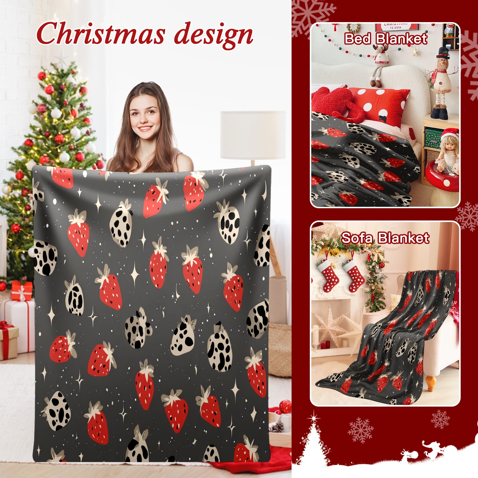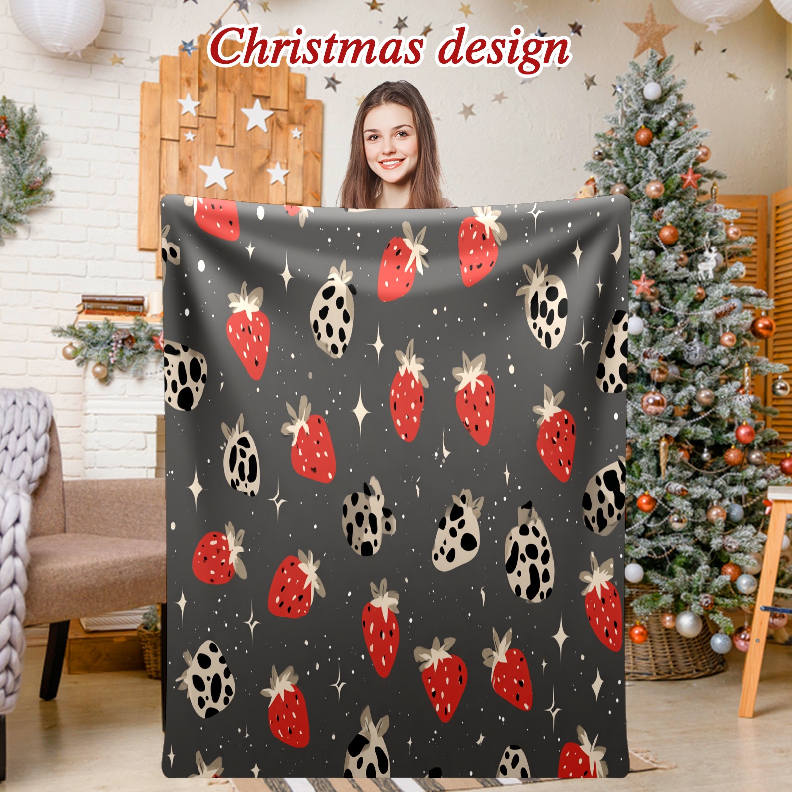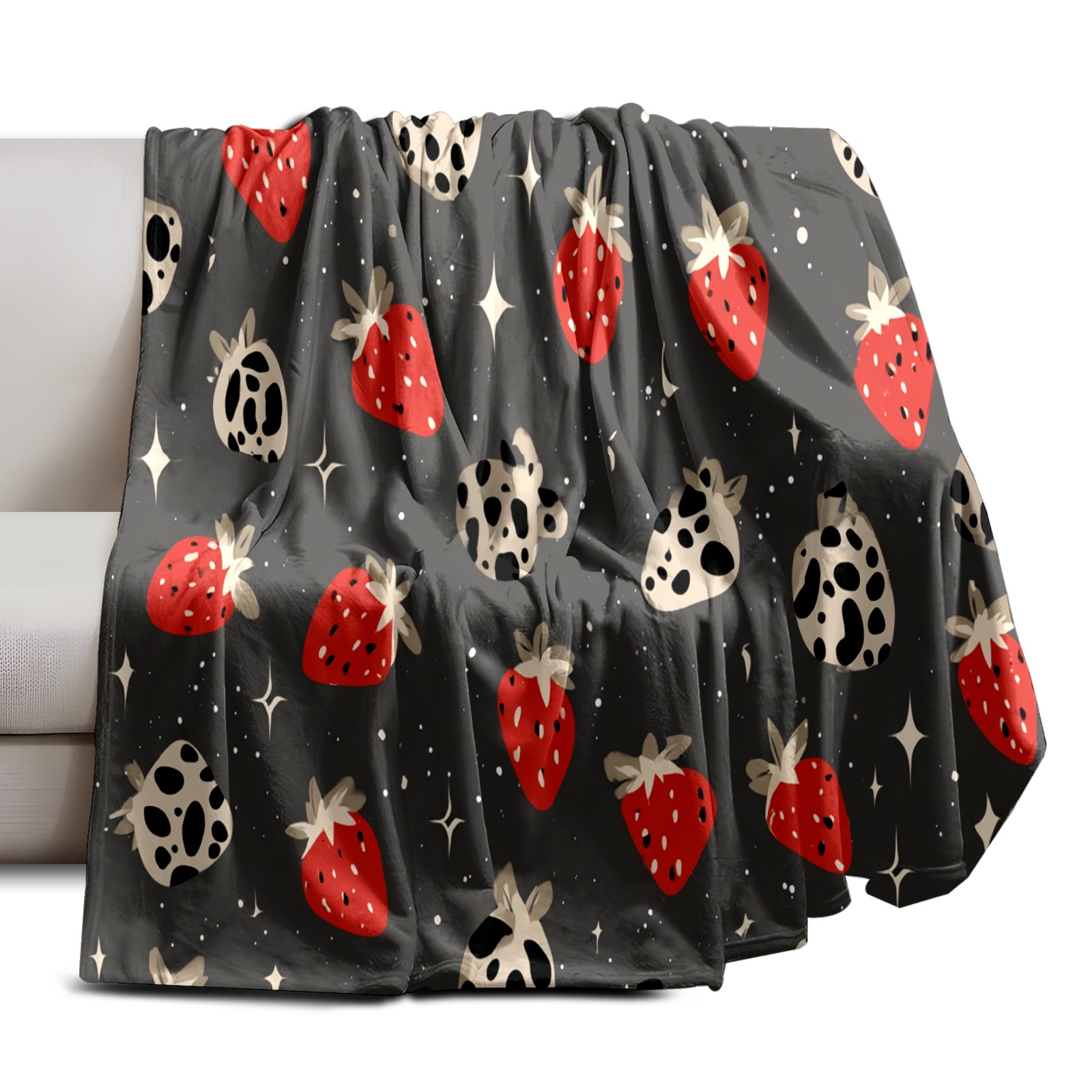 Премиальная фланелевая одеяло Playful Strawberry Leopard Black