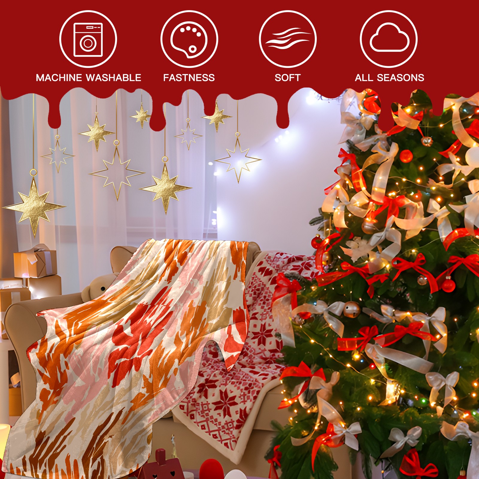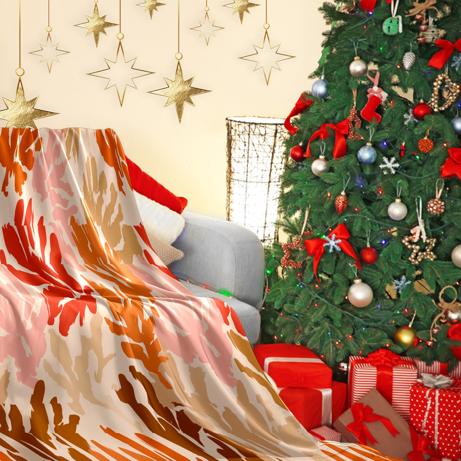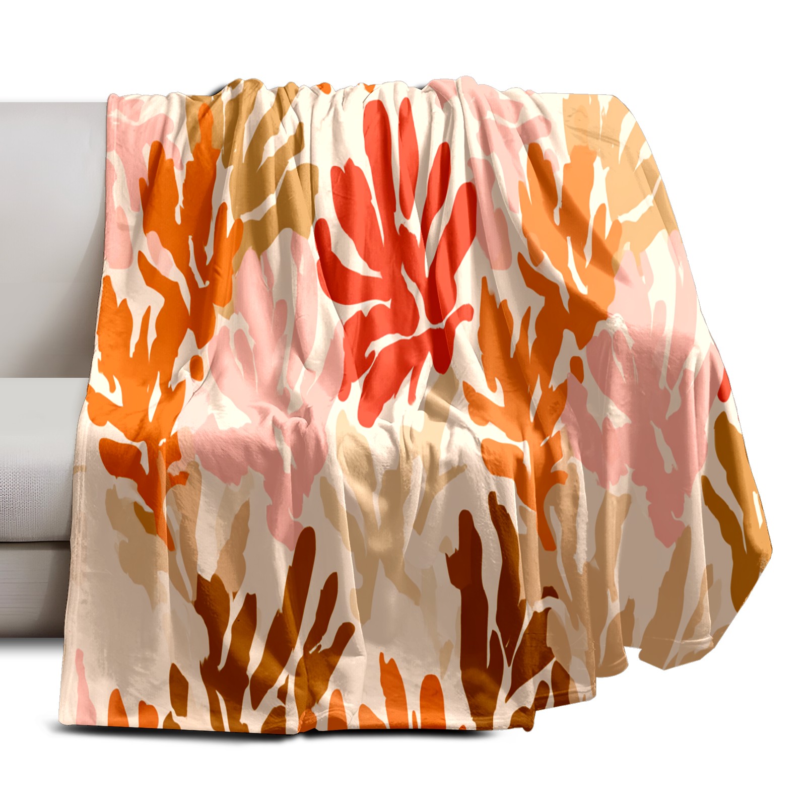 Премиальная фланелевая одеяло Gentle Leaf Pattern Orange