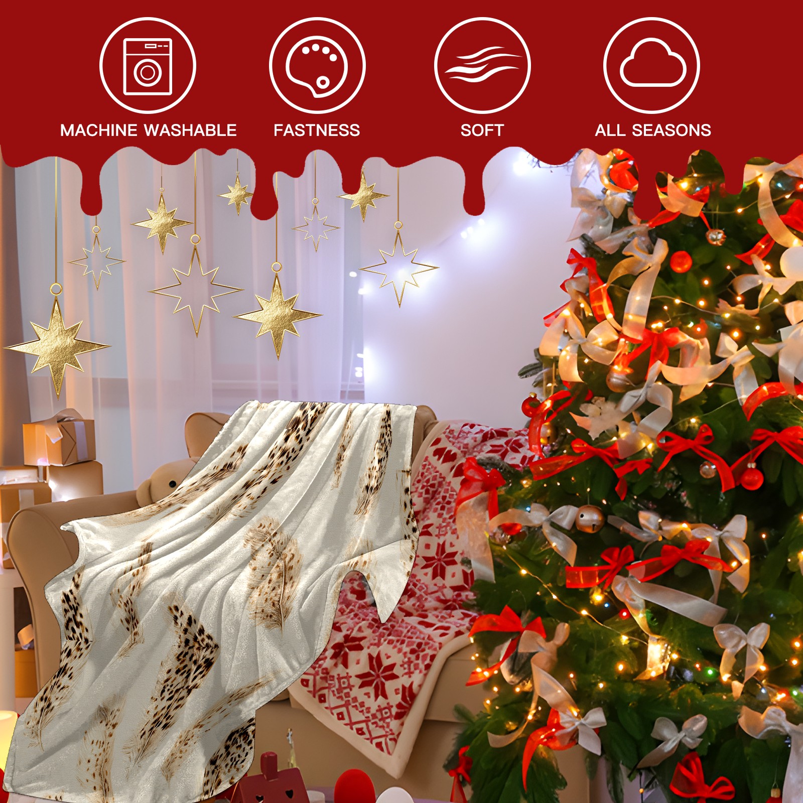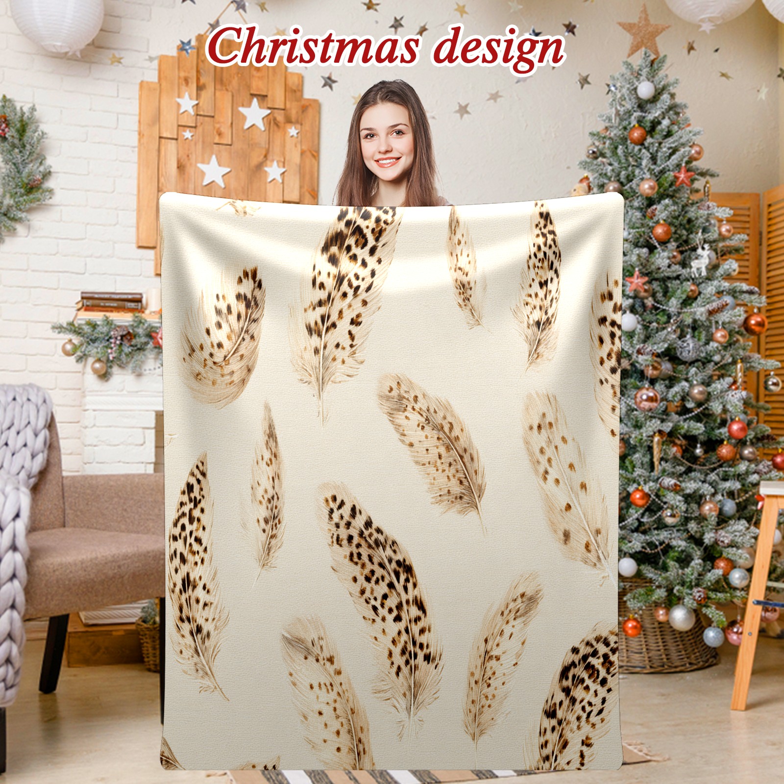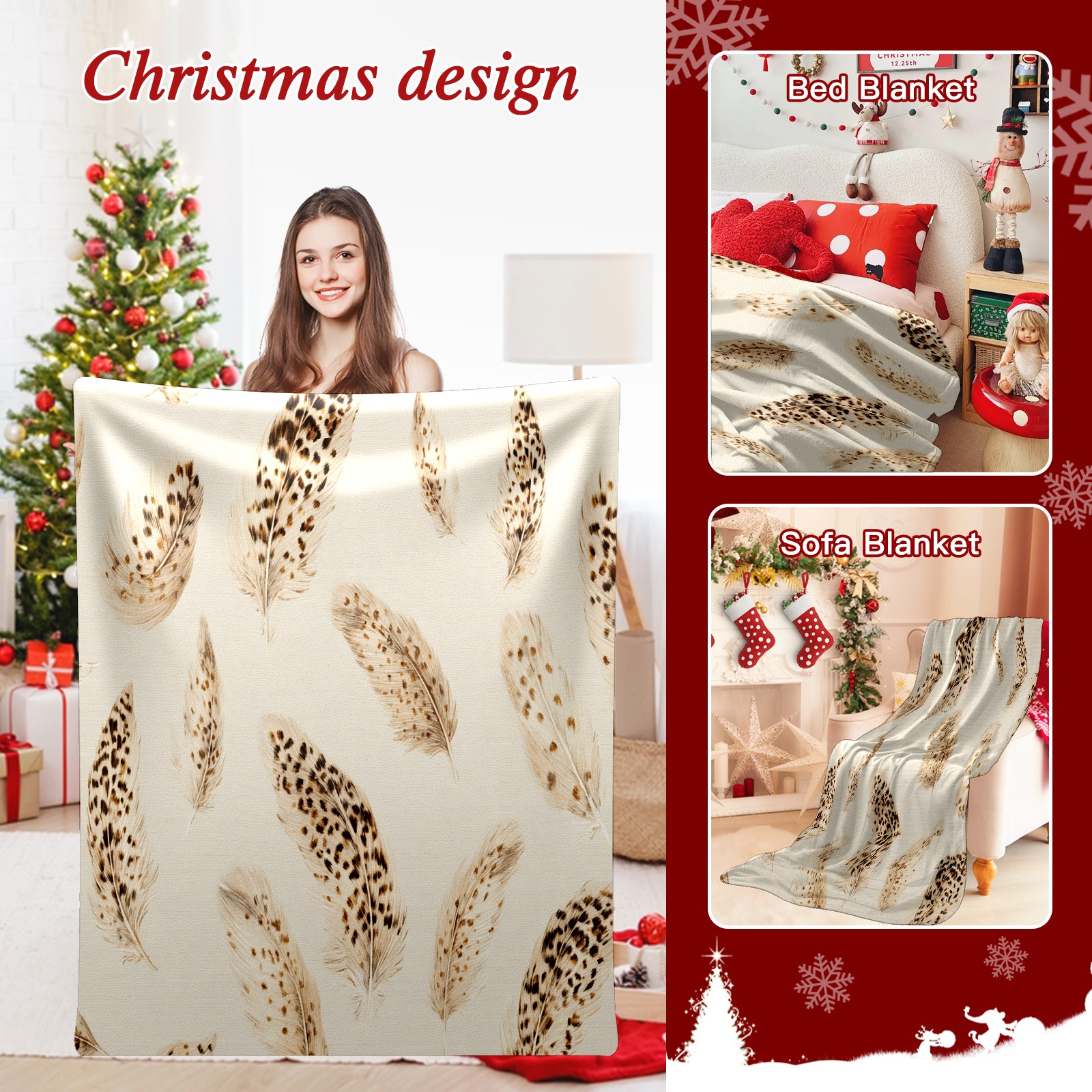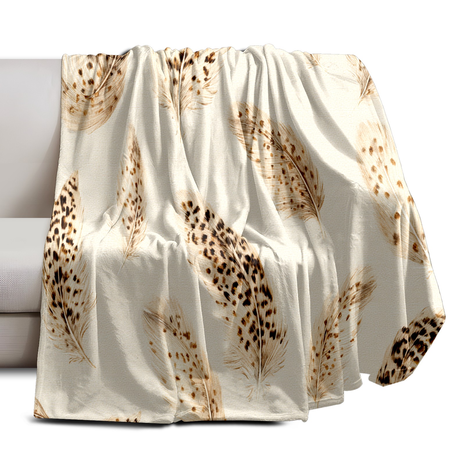 Премиальная фланелевая одеяло Elegant Feather Leopard Beige