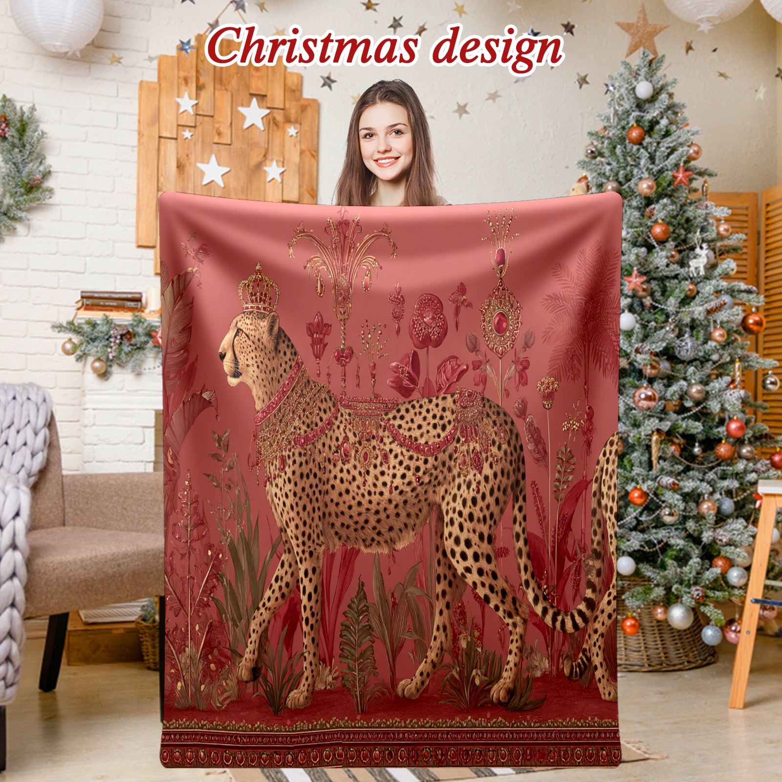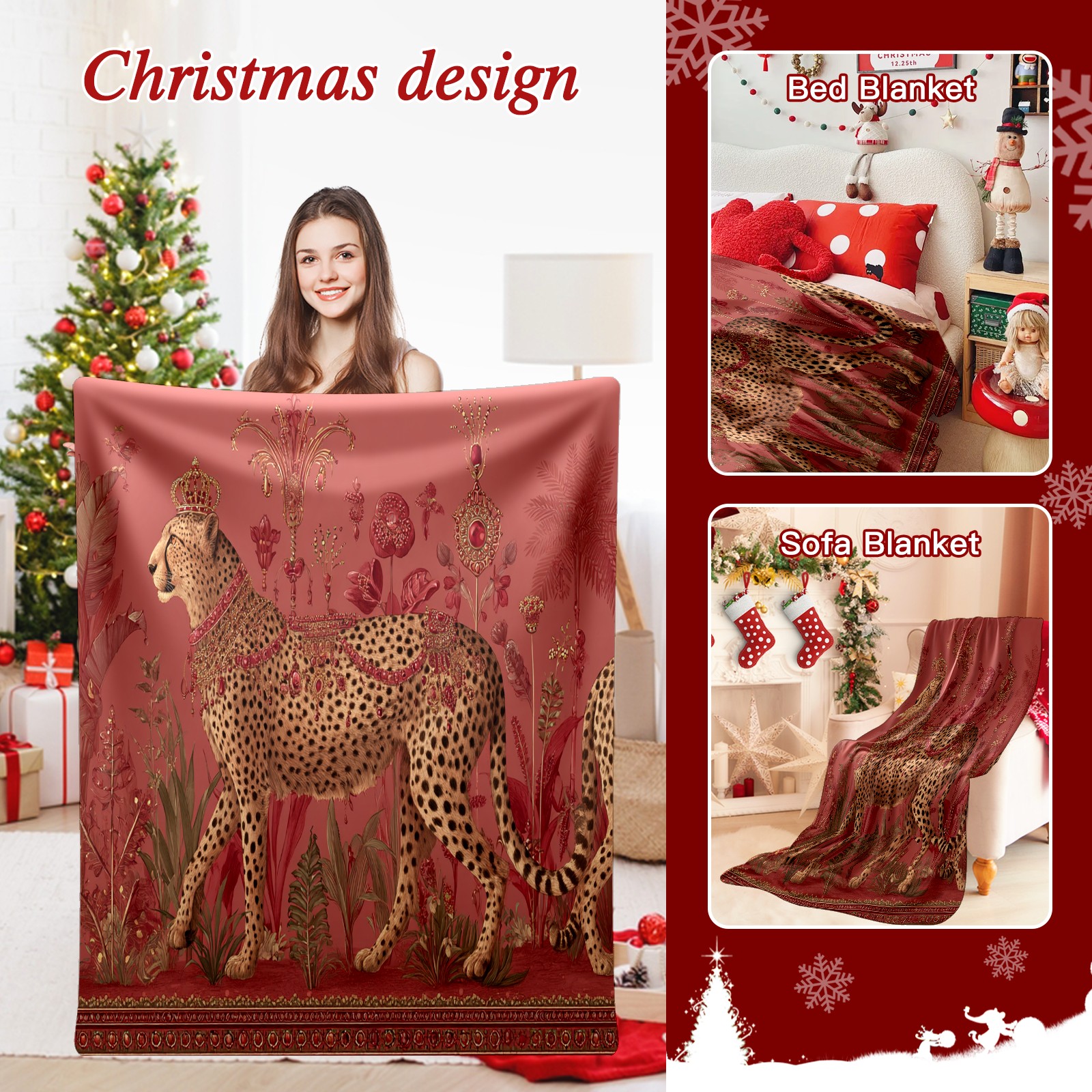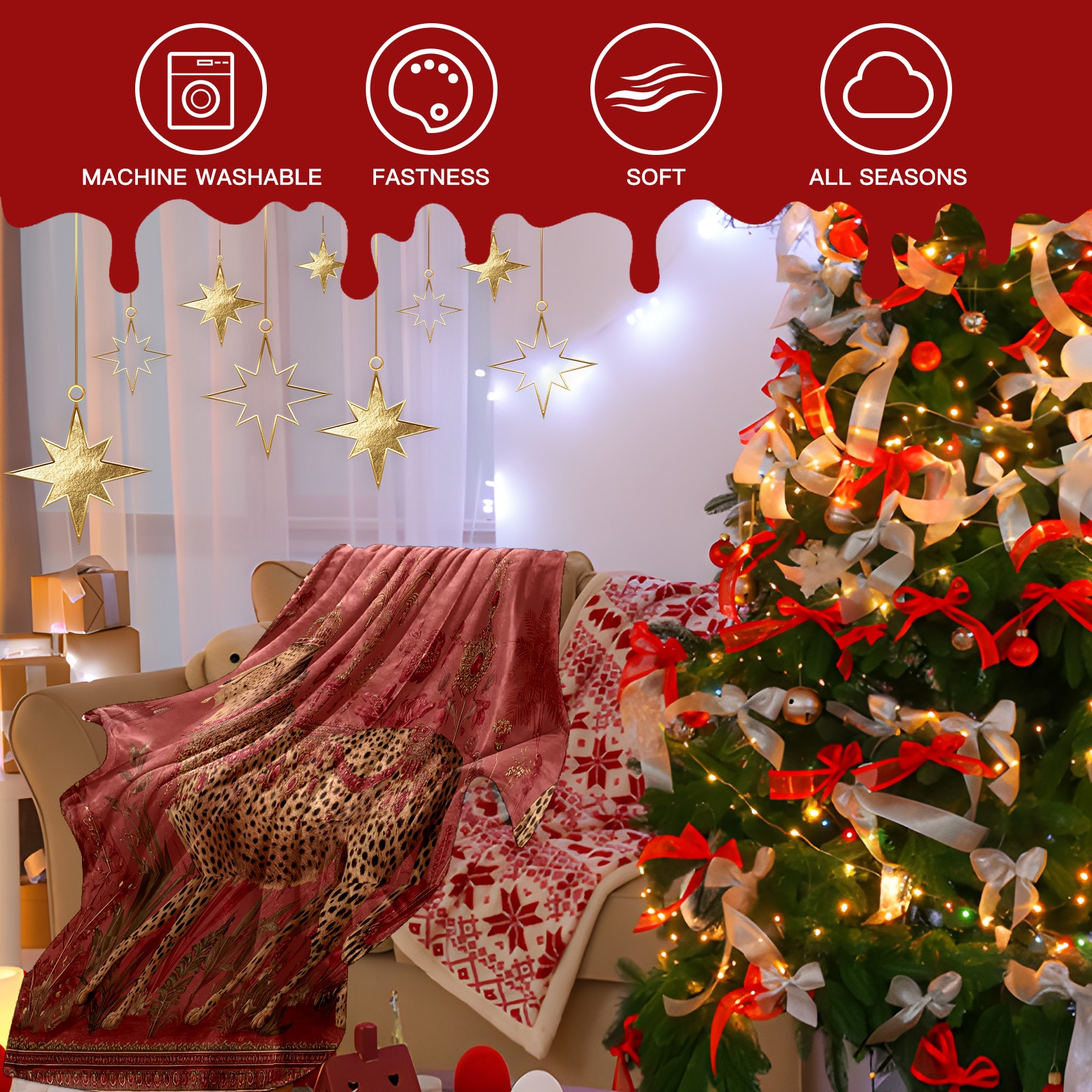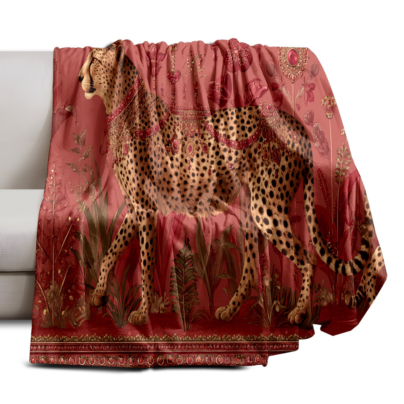 Премиальная фланелевая одеяло Vintage Cheetah Red