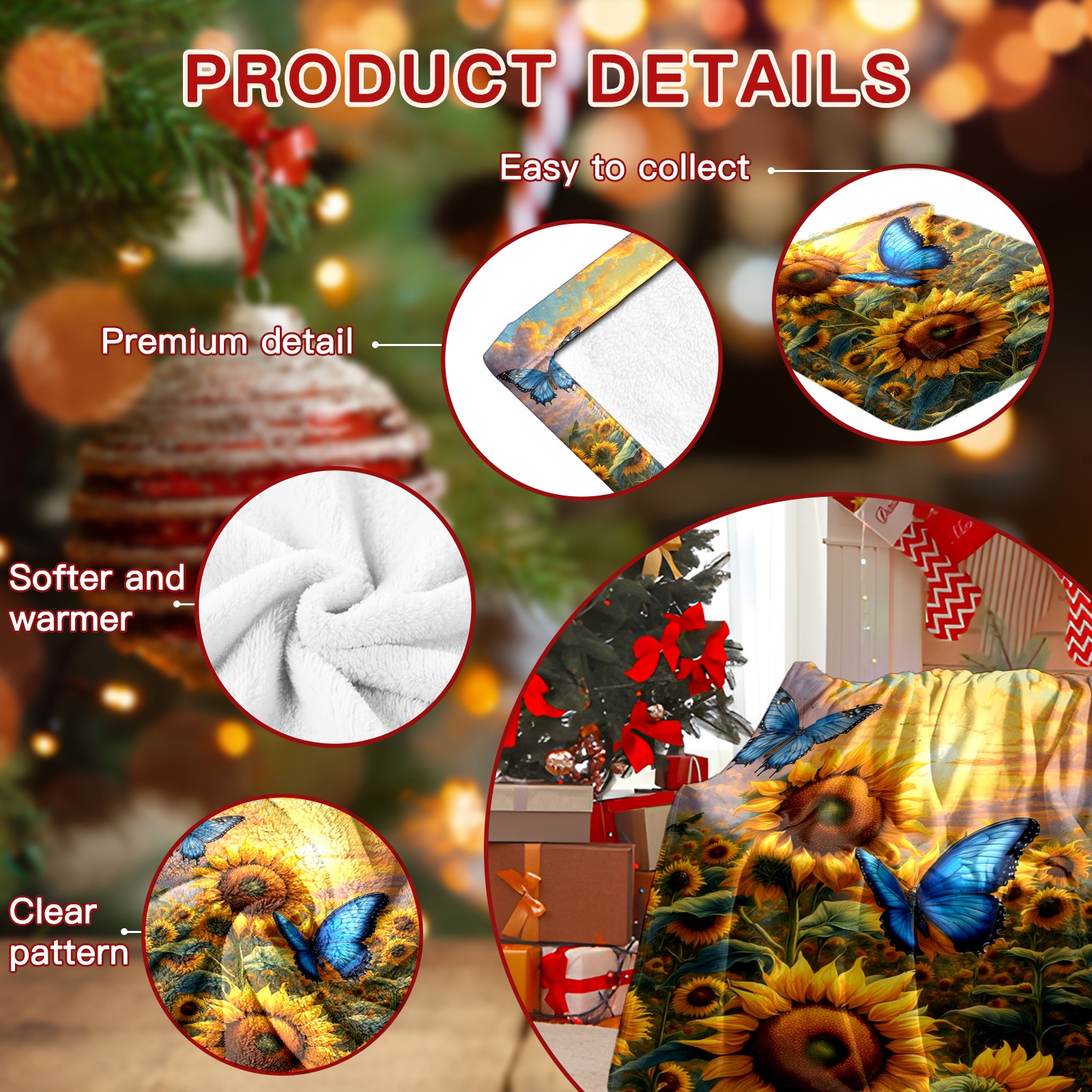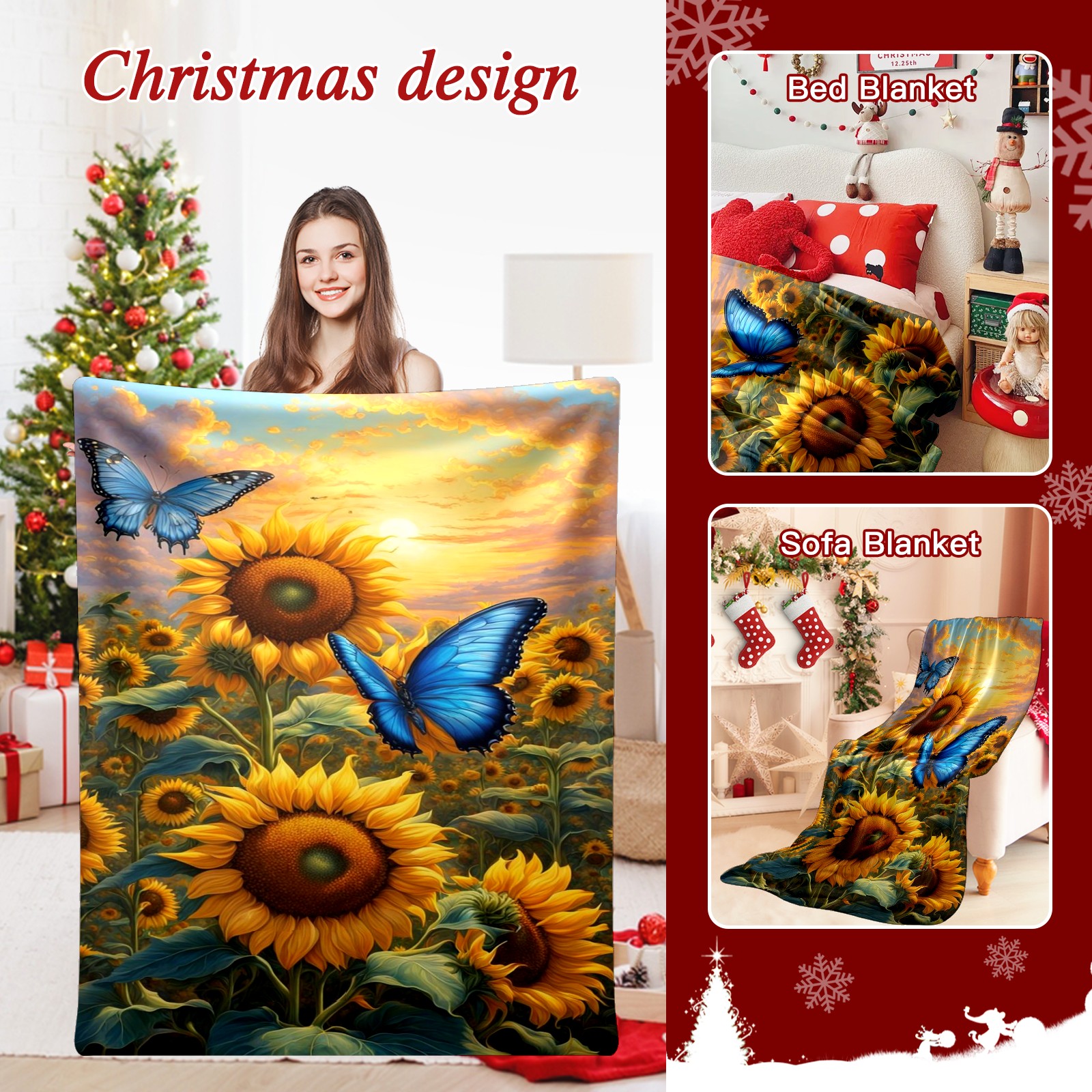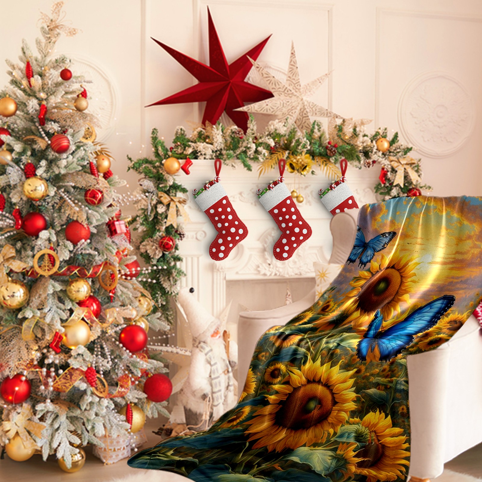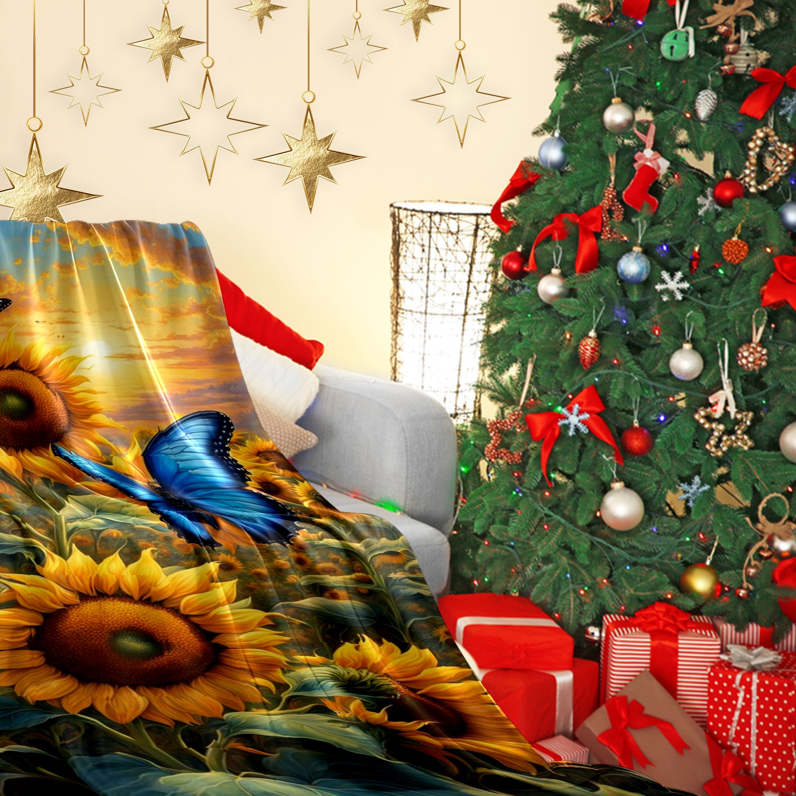 Премиальная фланелевая одеяло Yellow Sunflowers Butterflies
