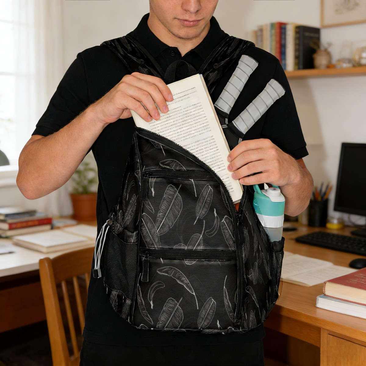 Материал: Прочная нейлоновая ткань + усиленные тканые лямки + дышащий сетчатый карман Размеры: 15×35×45 см / 6×13,8×17,7 дюймов Большая вместимость с множеством отделений – в одной сумке поместится все ваше снаряжение для пикбола: ракетки, мячи, защитная экипировка и бутылка с водой! Разработана для комфортной переноски – утолщенная мягкая спинка в сочетании с регулируемыми дышащими сетчатыми плечевыми ремнями эффективно распределяет вес, снимая боль в плечах и спине, а также мышечное напряжение. Ткань сумки гладкая и приятная на ощупь, деликатная и мягкая, что делает ежедневное использование более комфортным. Гибкие варианты переноски: плечевые лямки имеют съемную молнию, позволяющую свободно регулировать стиль ношения. Идеально подходит в качестве портативной сумки через плечо для ежедневных поездок на работу, отдыха на природе и спортивных мероприятий, а также в качестве практичного и продуманного подарка для друзей, семьи и других игроков в пикбол.