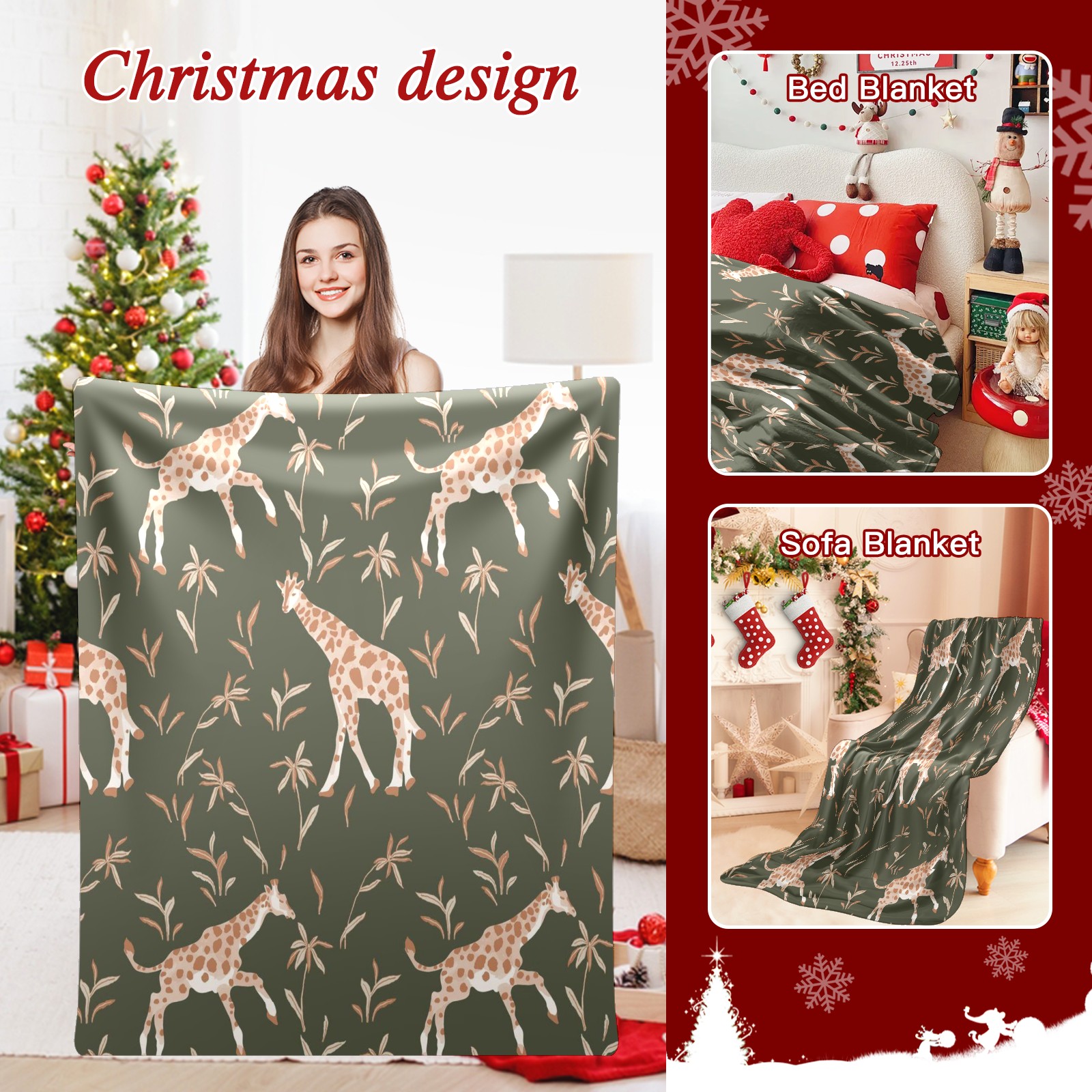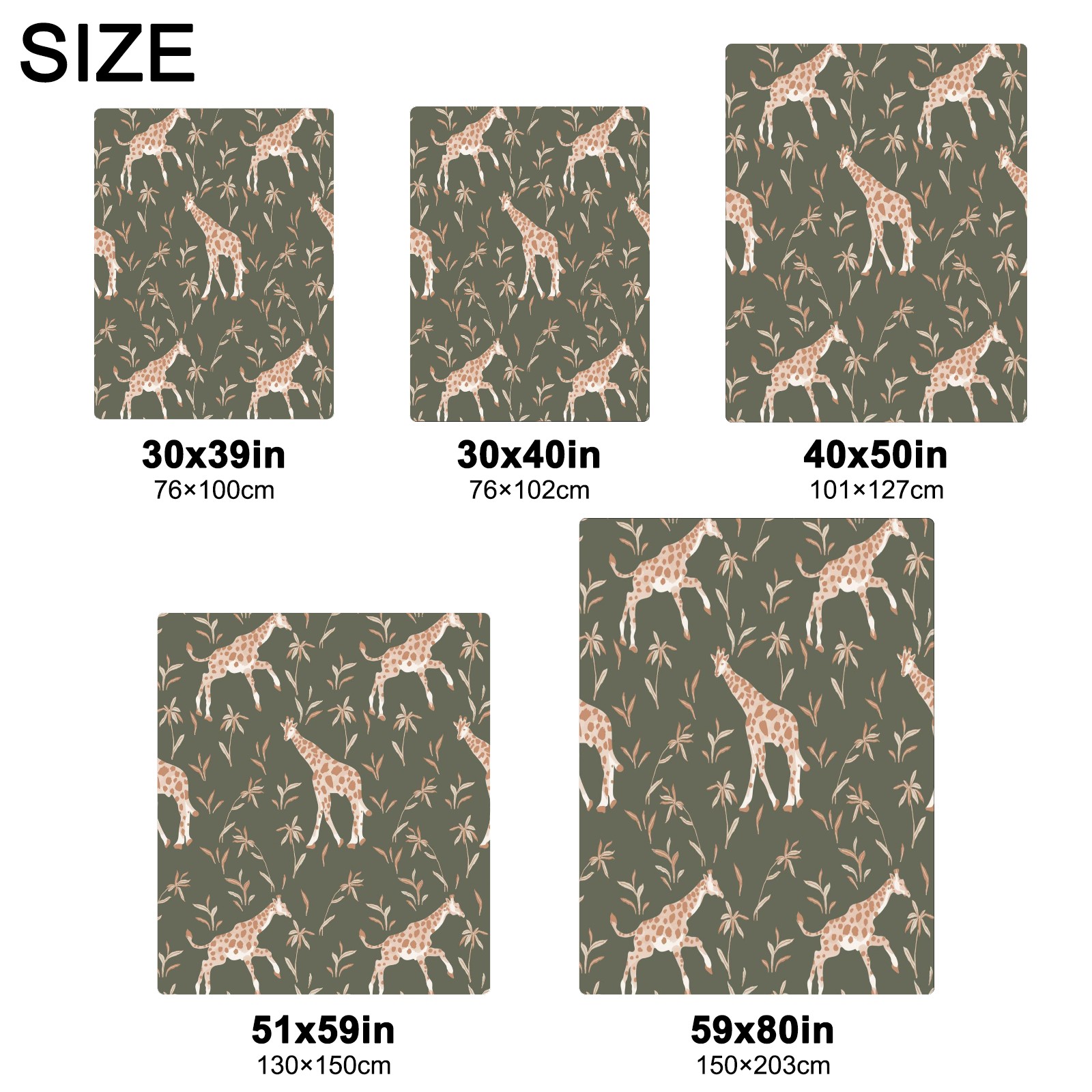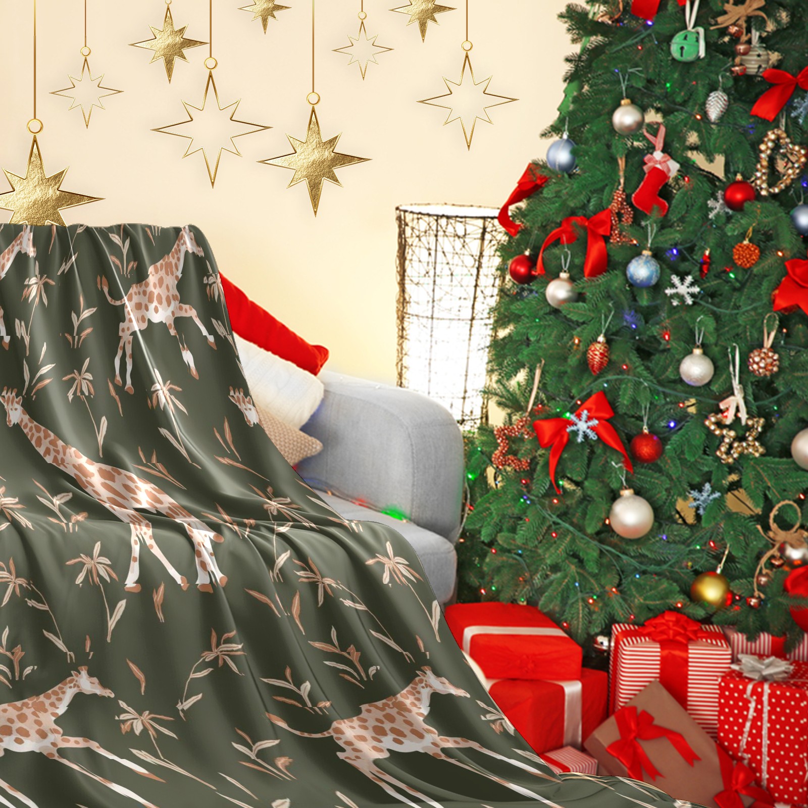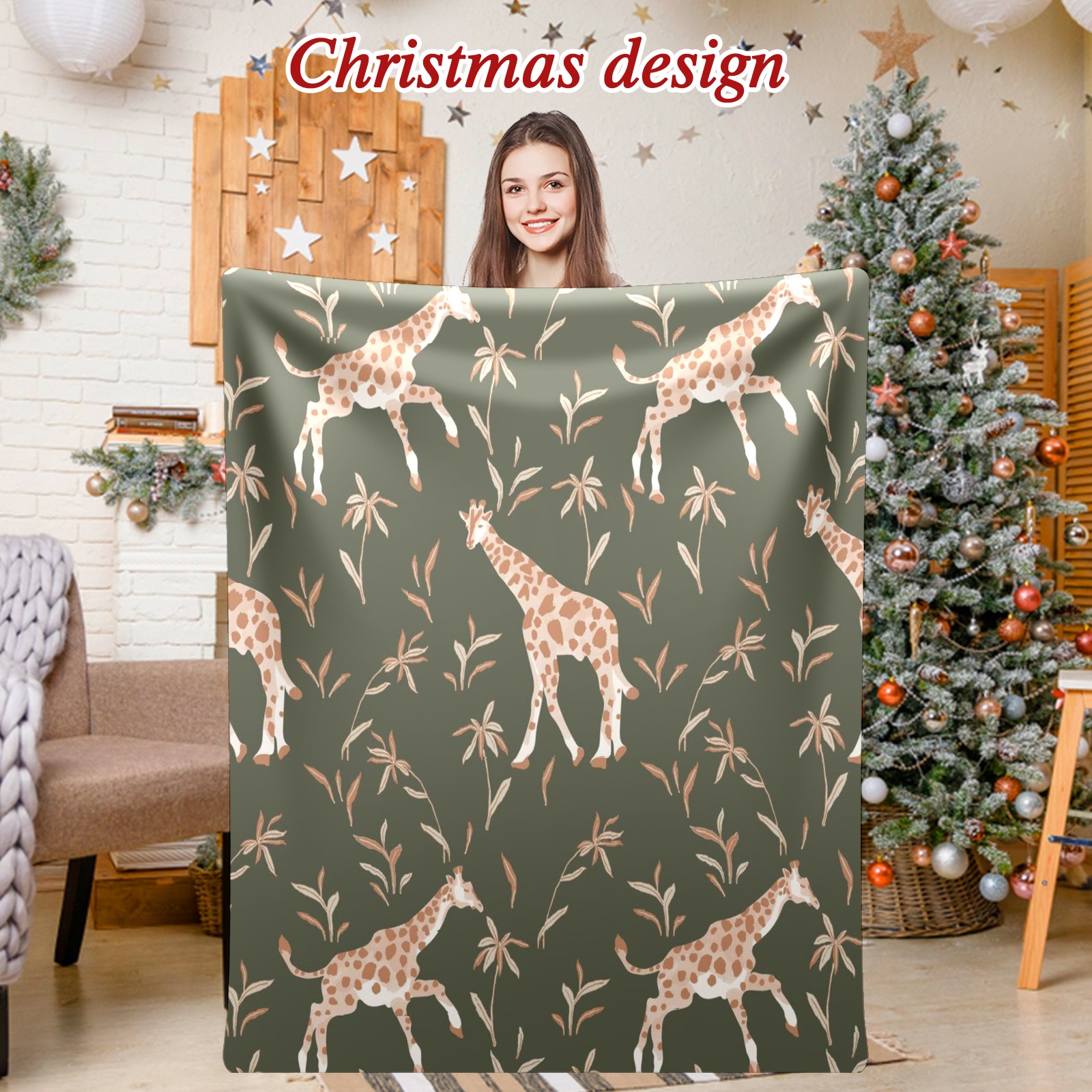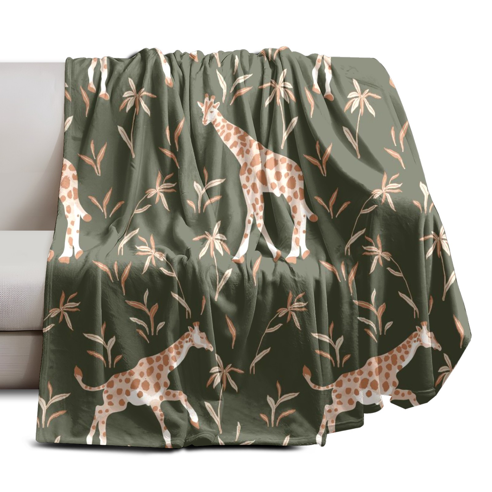 Премиальная фланелевая одеяло Khaki Giraffe Print