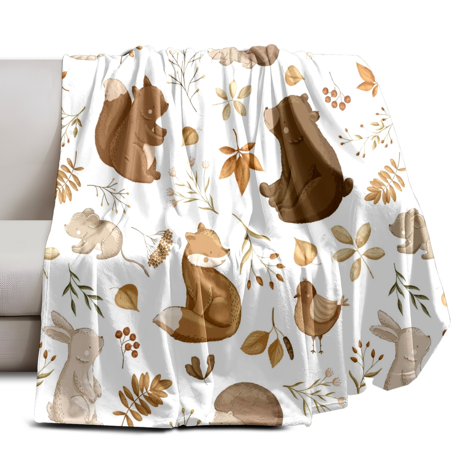 Премиальная фланелевая одеяло Khaki Animals Floral