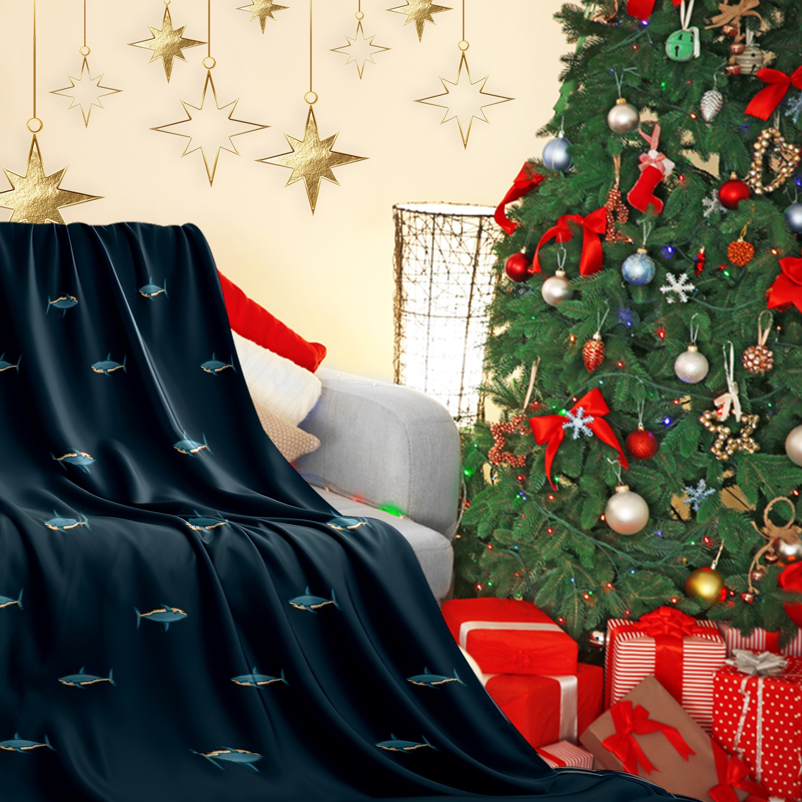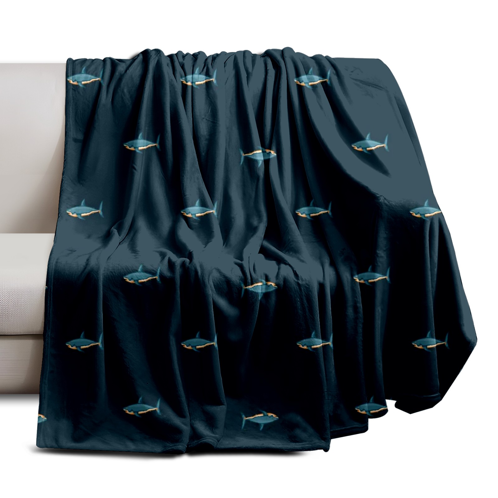 Премиальная фланелевая одеяло Dark Blue Fish
