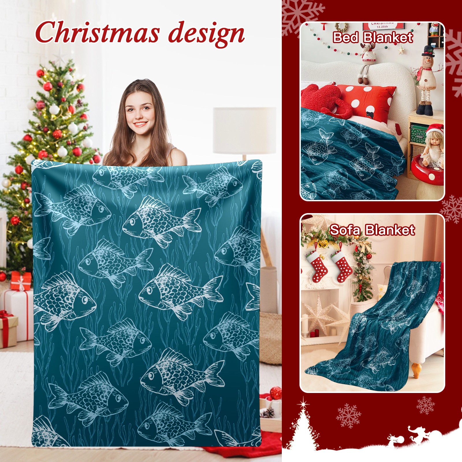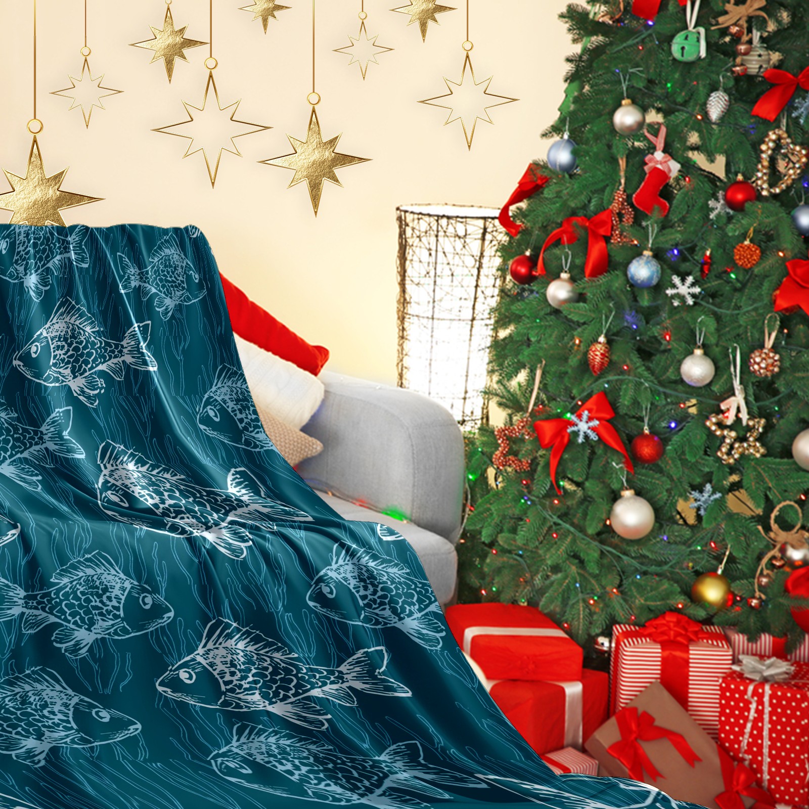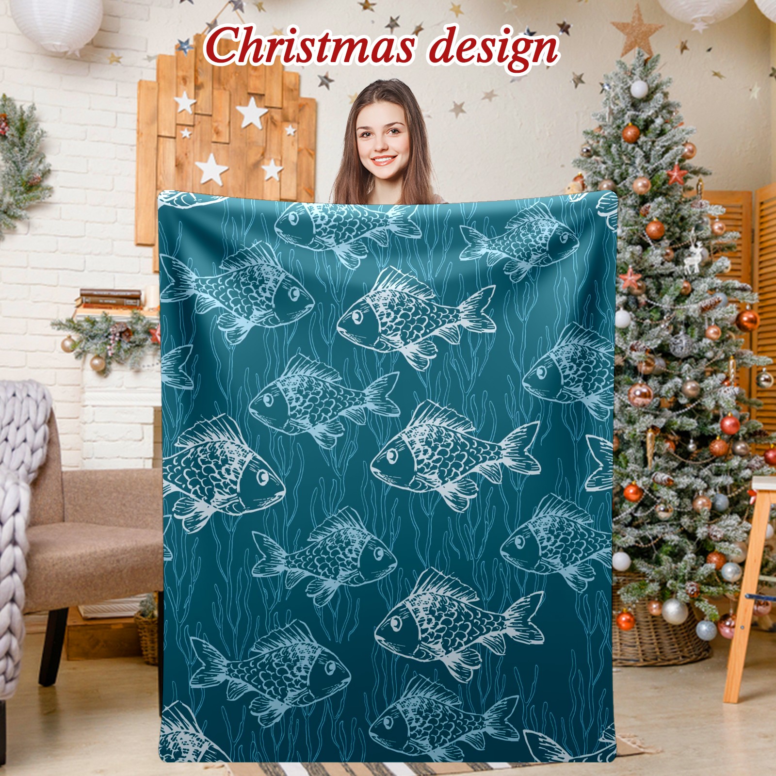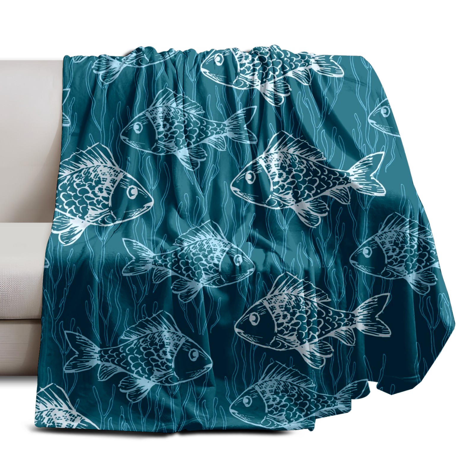 Премиальная фланелевая одеяло Blue Fishes Print