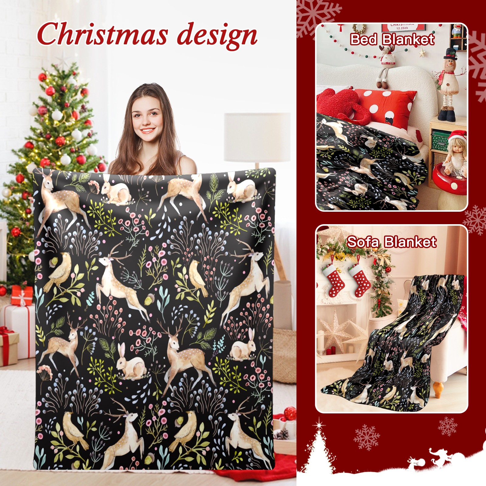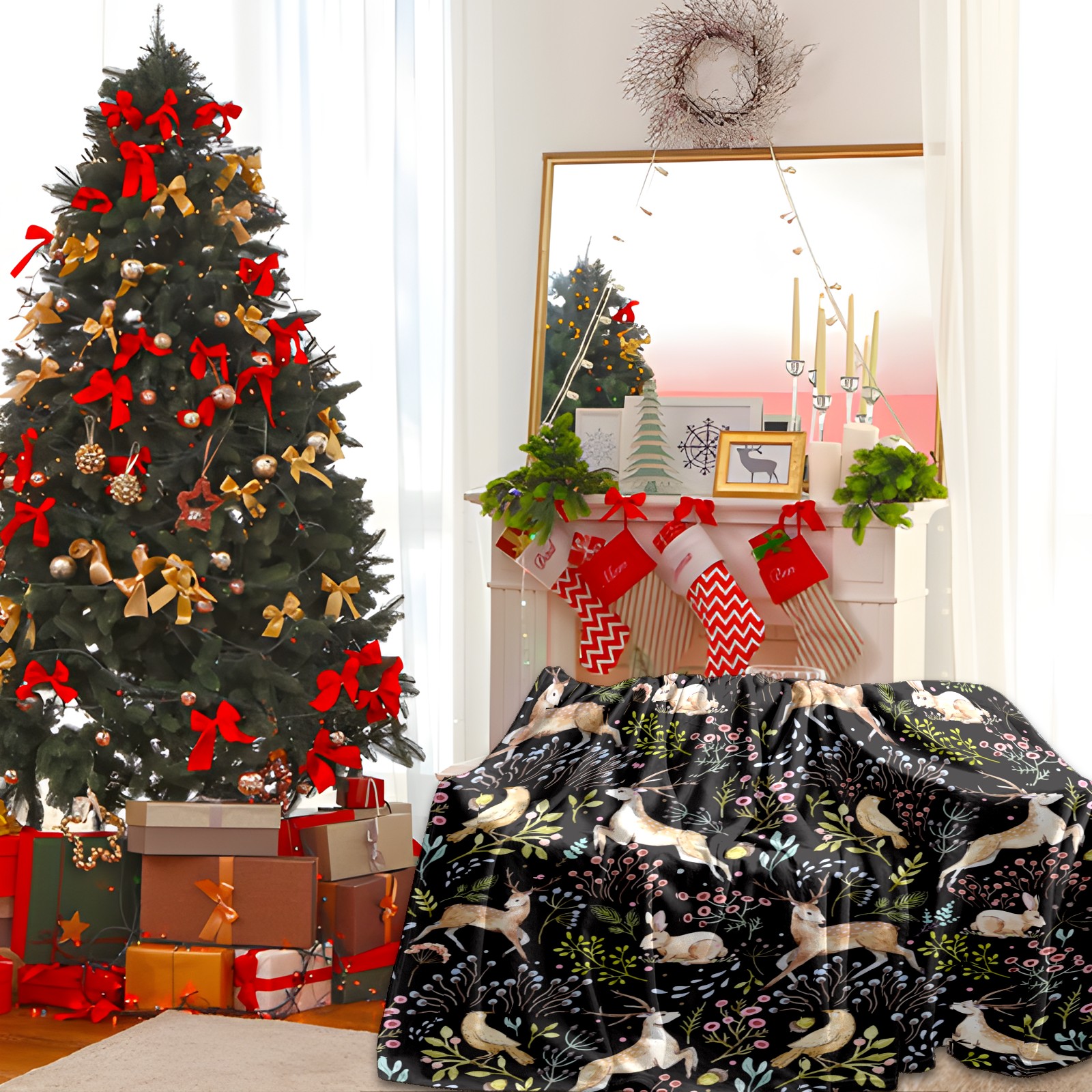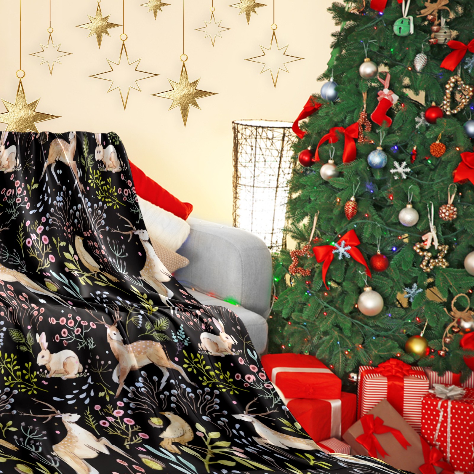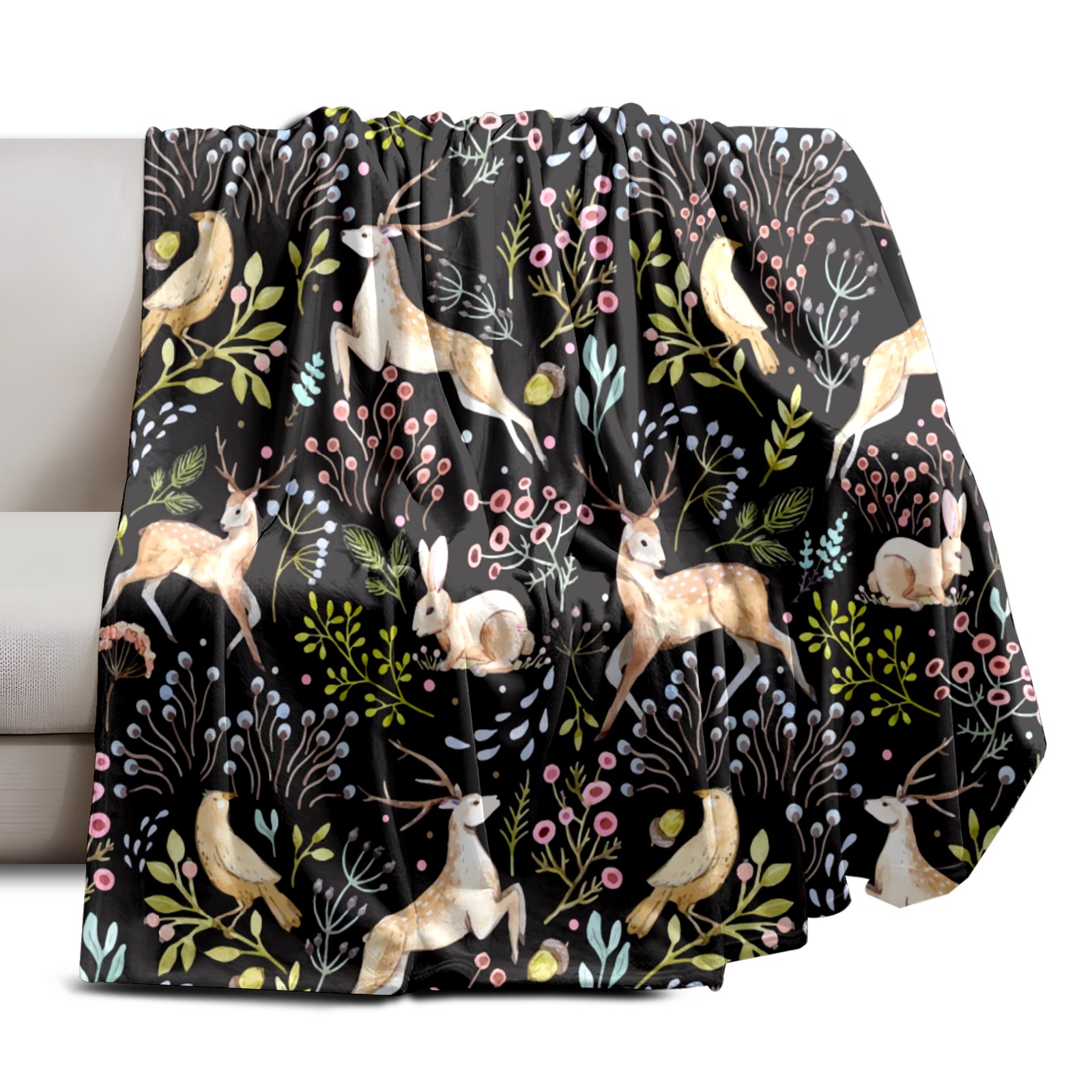 Премиальная фланелевая одеяло Black Forest Floral Animals