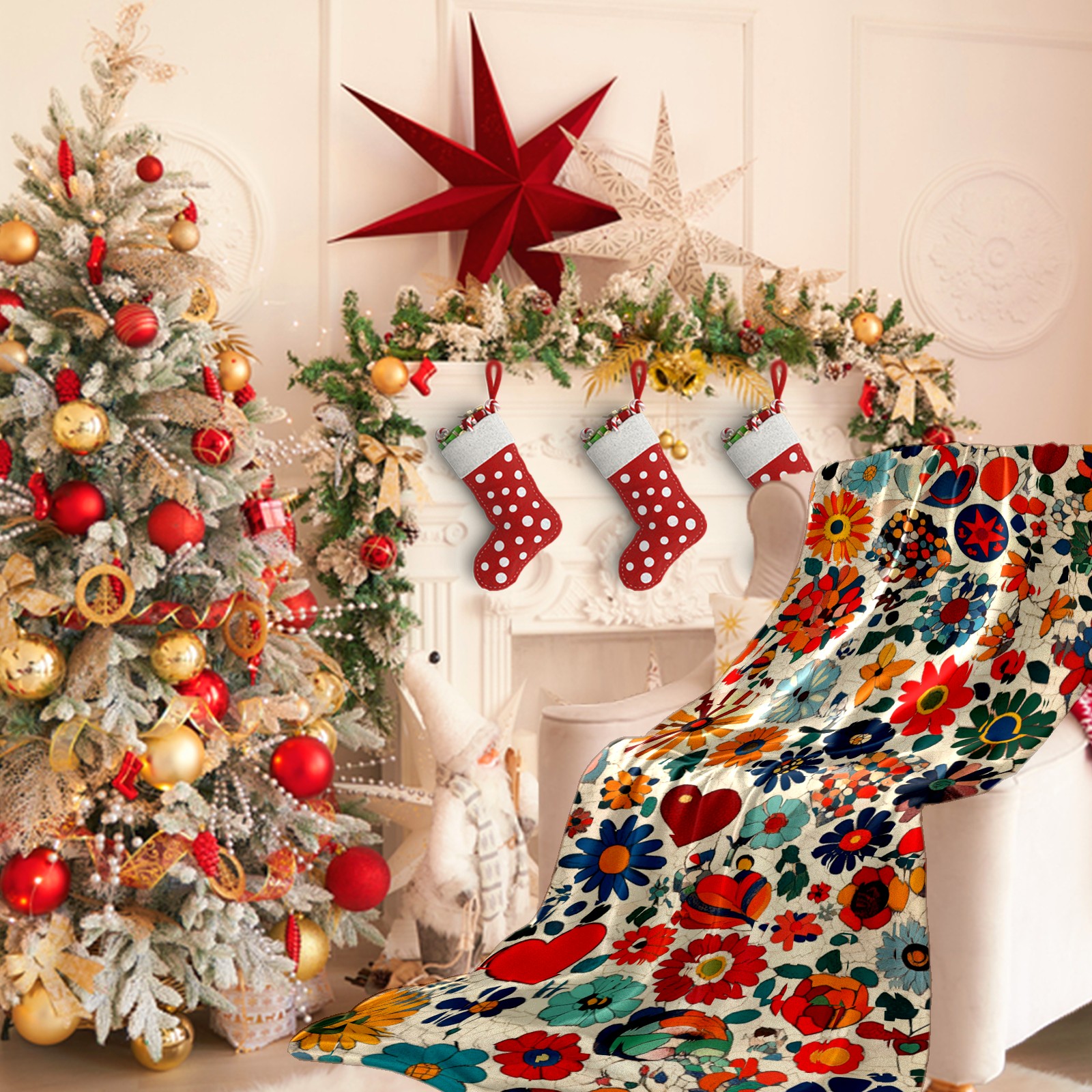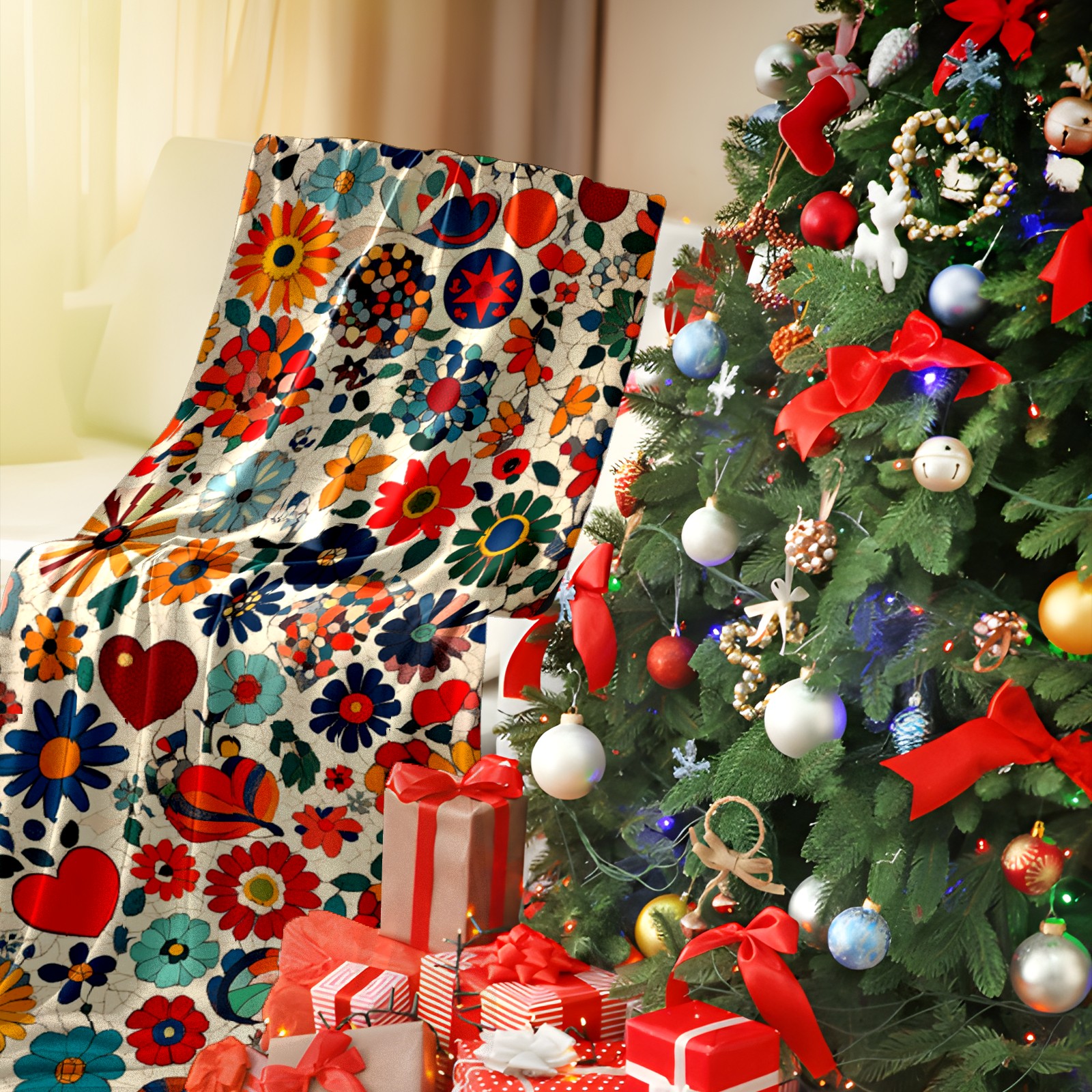 Премиальная фланелевая одеяло Floral Print