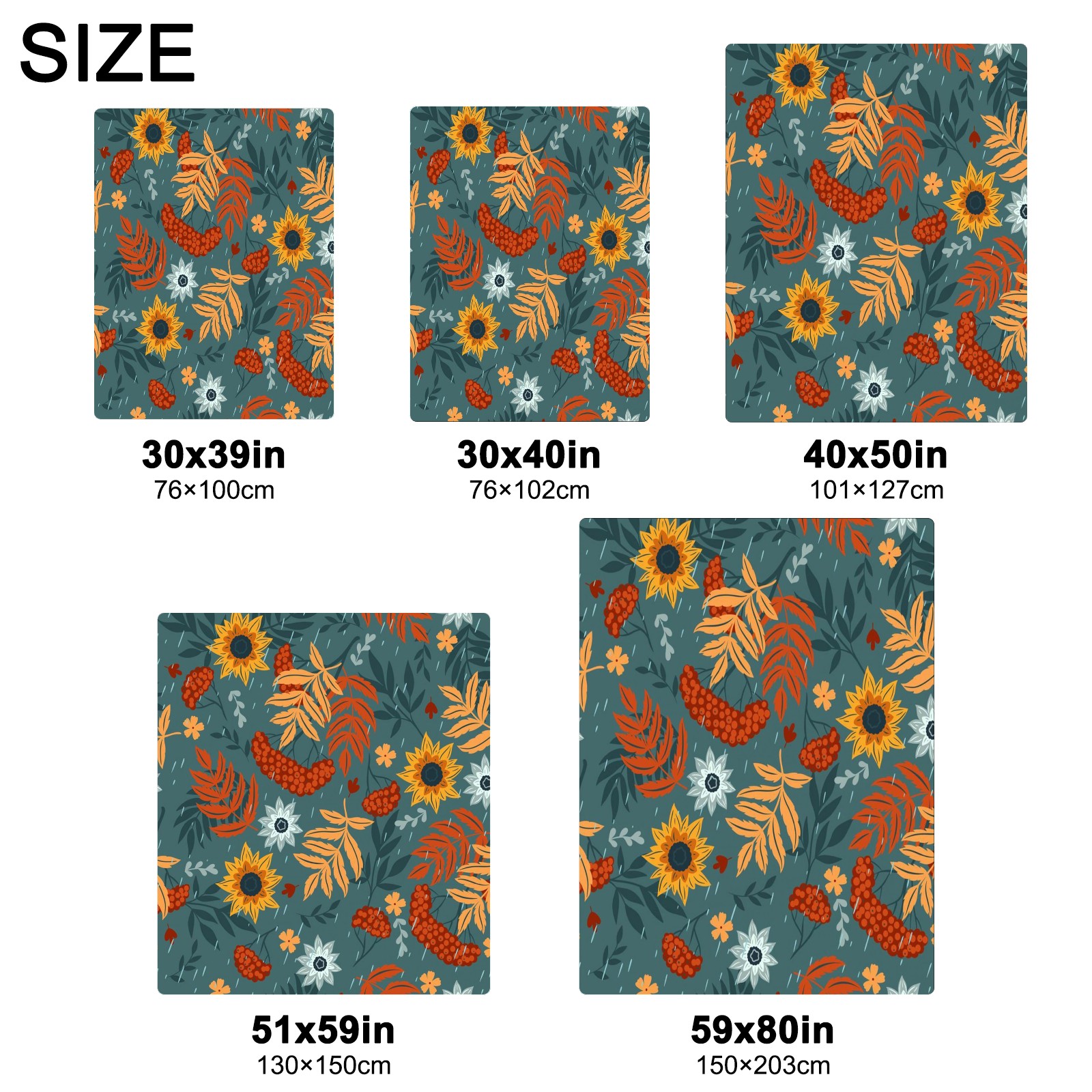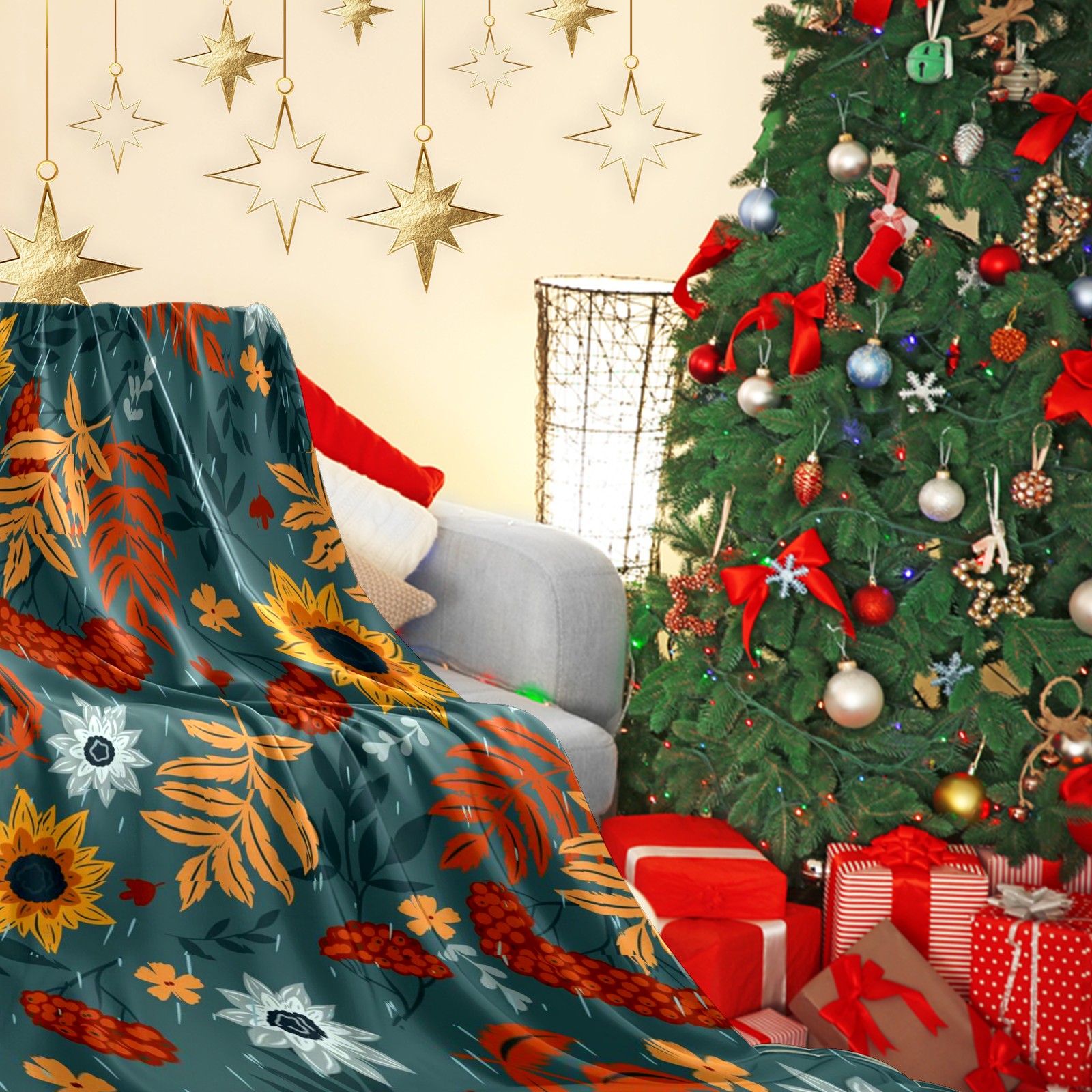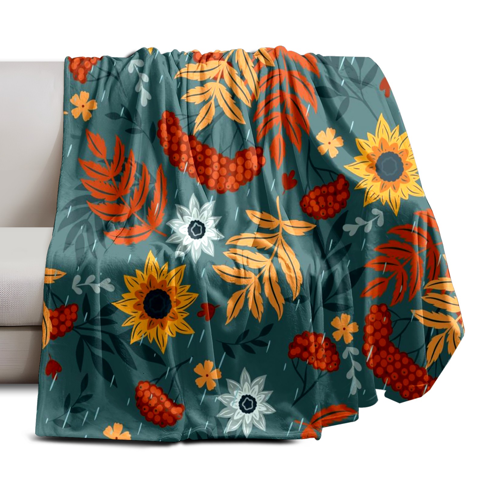 Премиальная фланелевая одеяло Orange Sunflowers Leaves