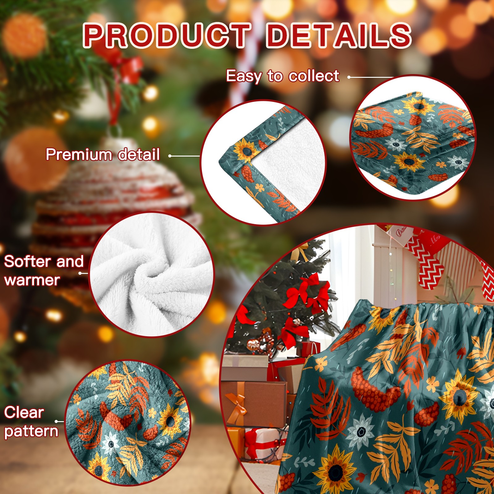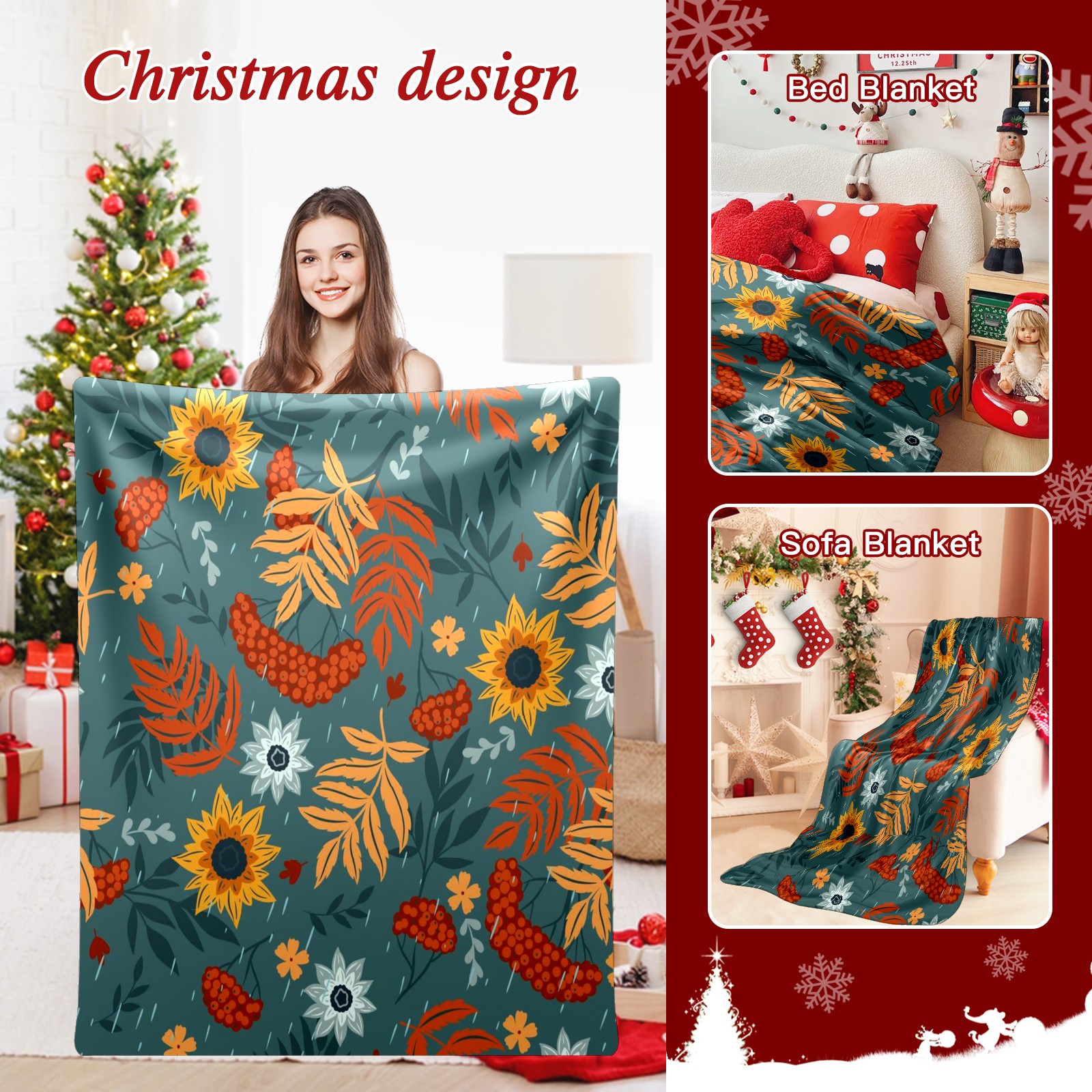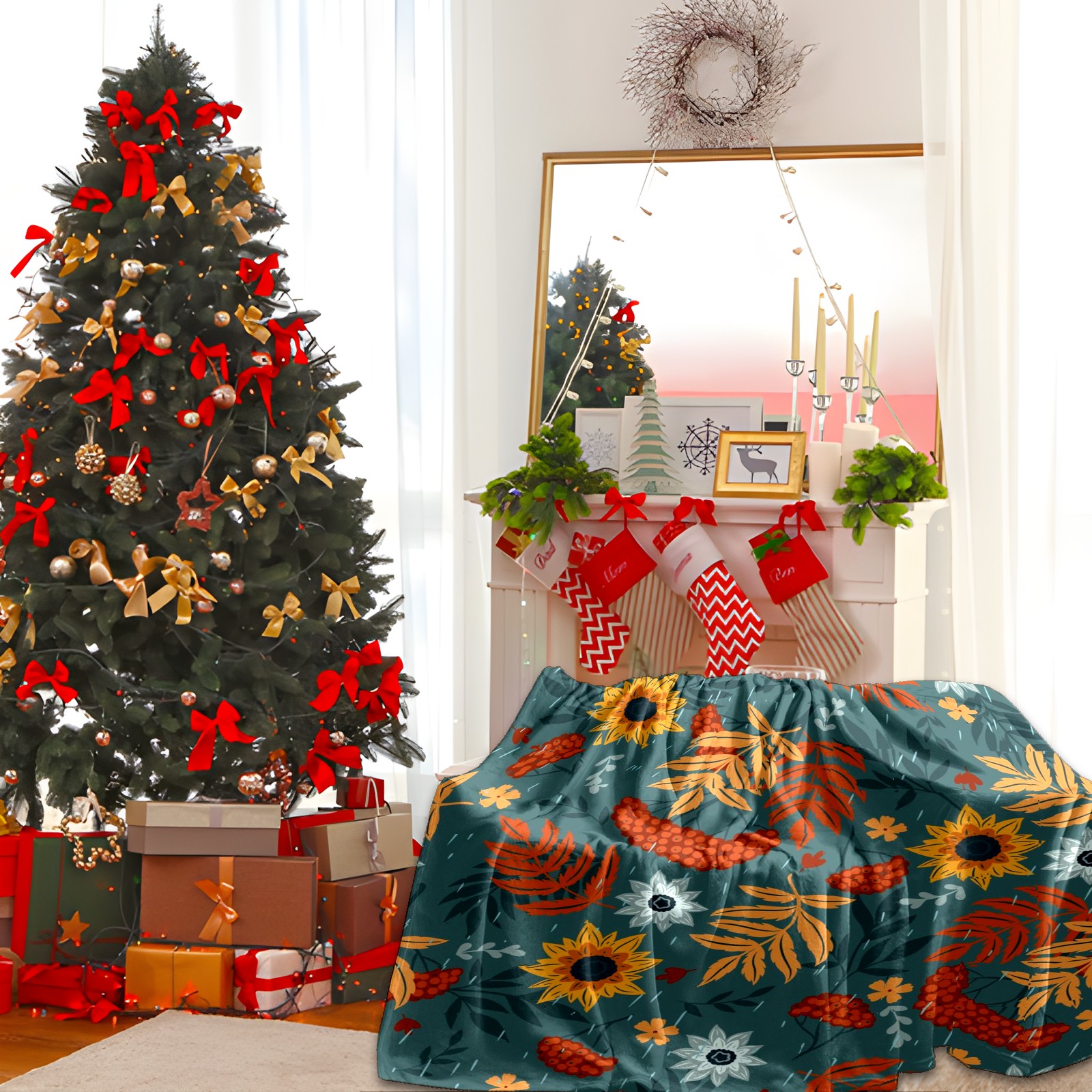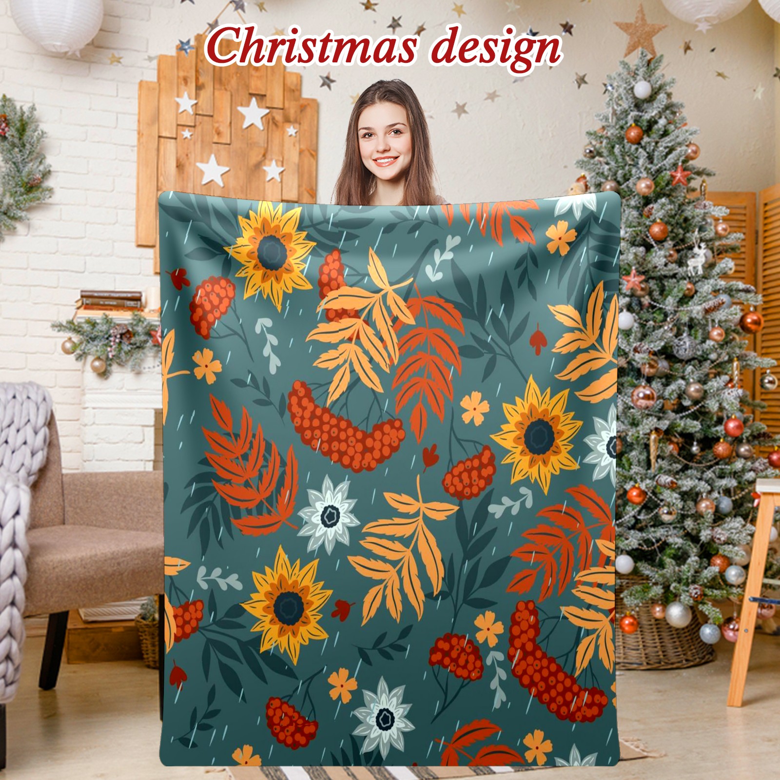 Премиальная фланелевая одеяло Orange Sunflowers Leaves