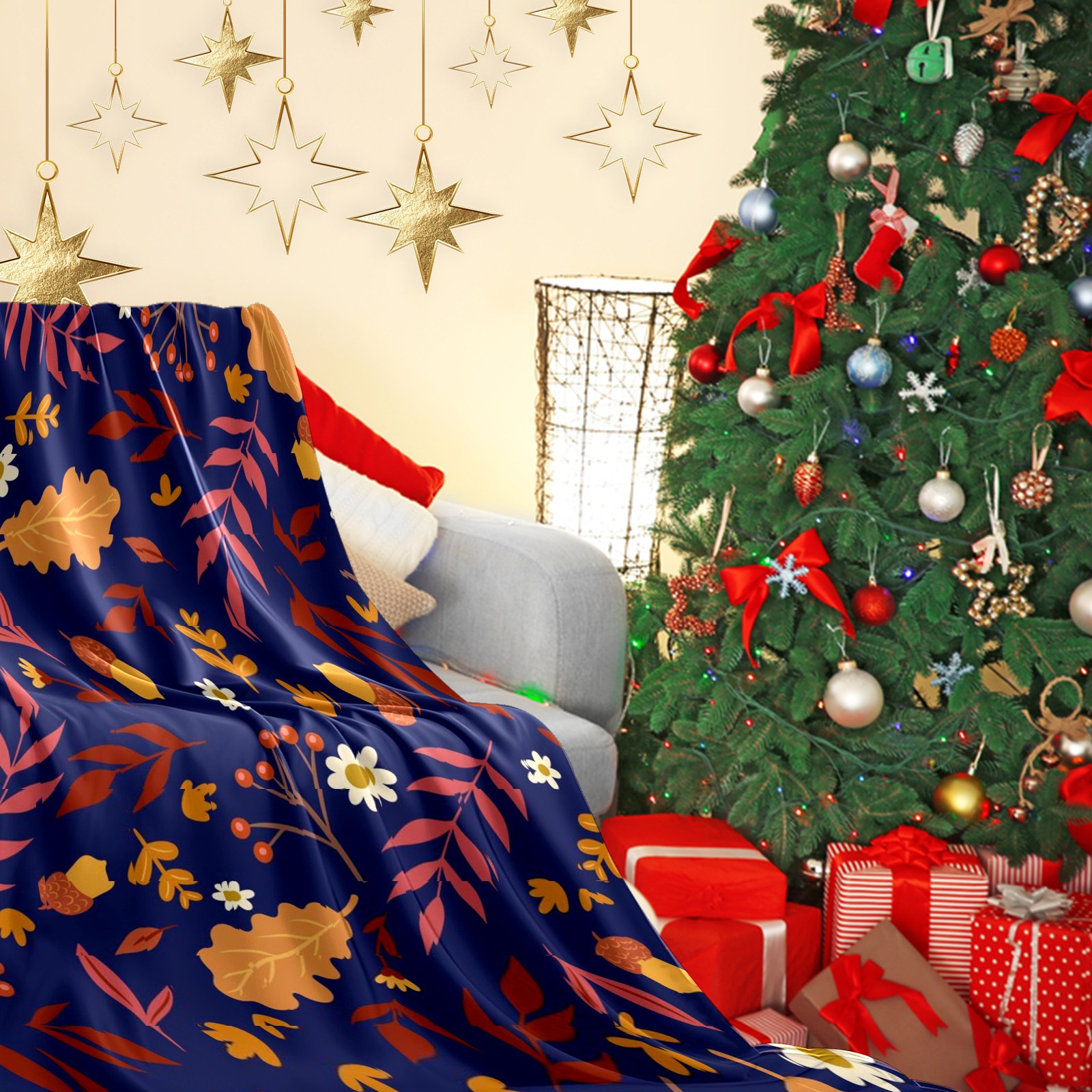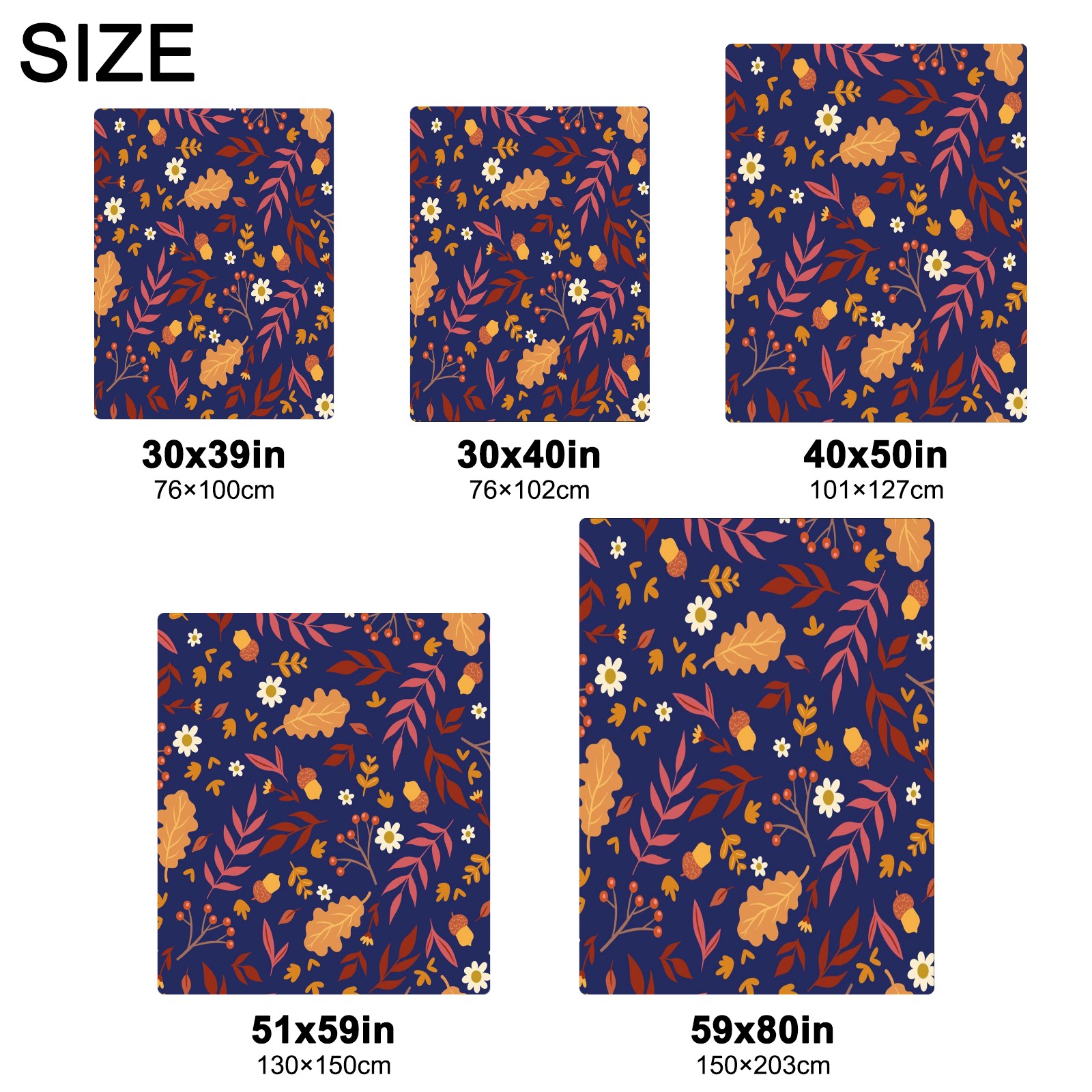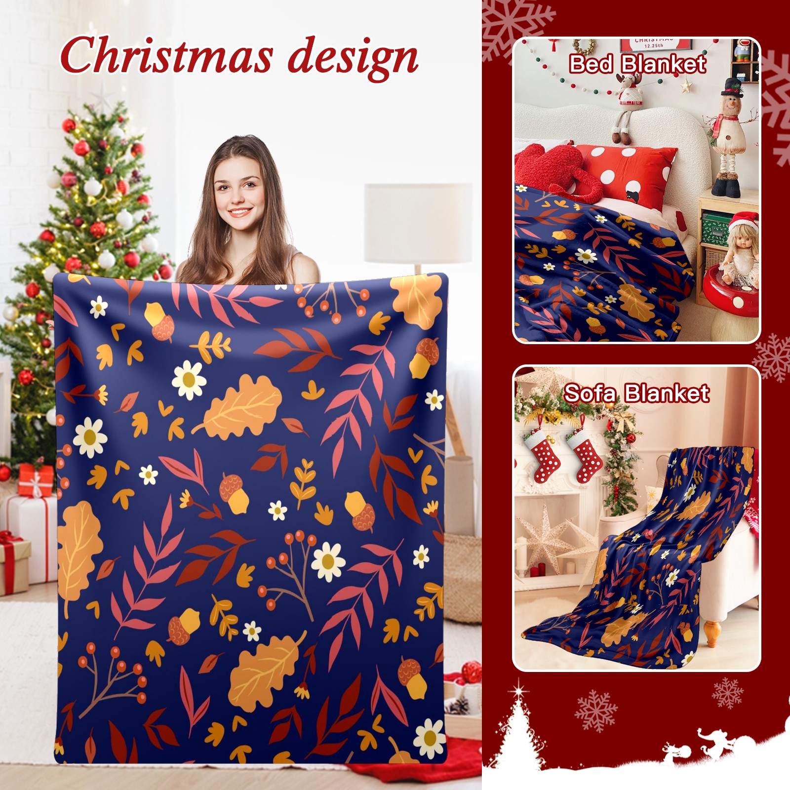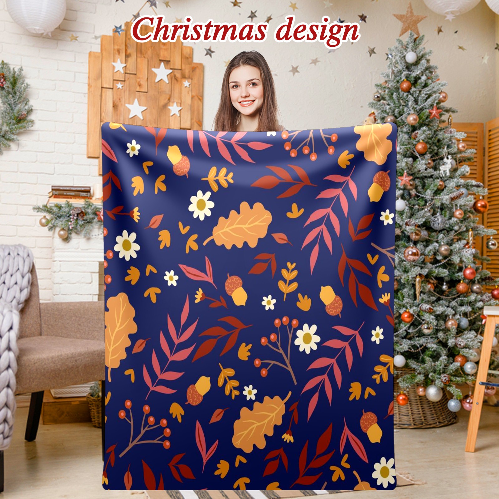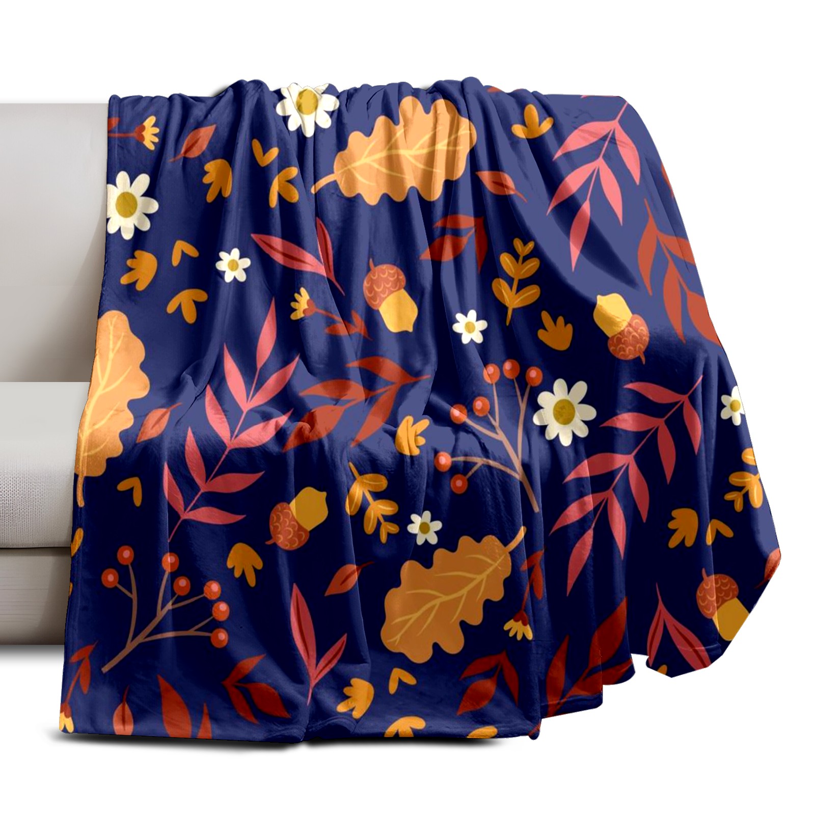 Премиальная фланелевая одеяло Navy Blue Autumn Leaves