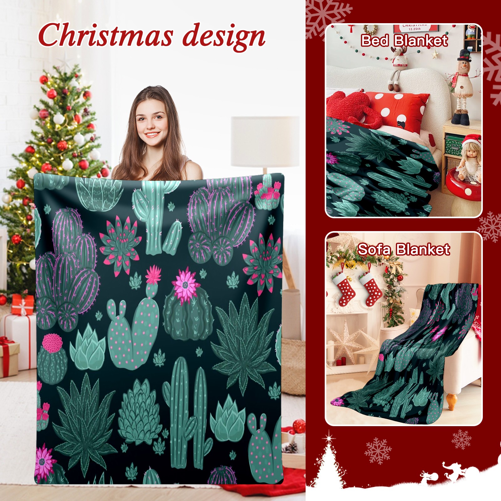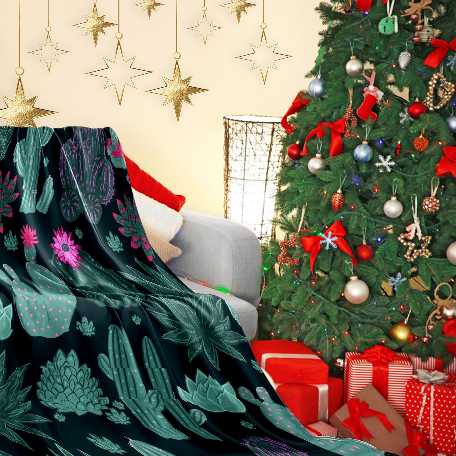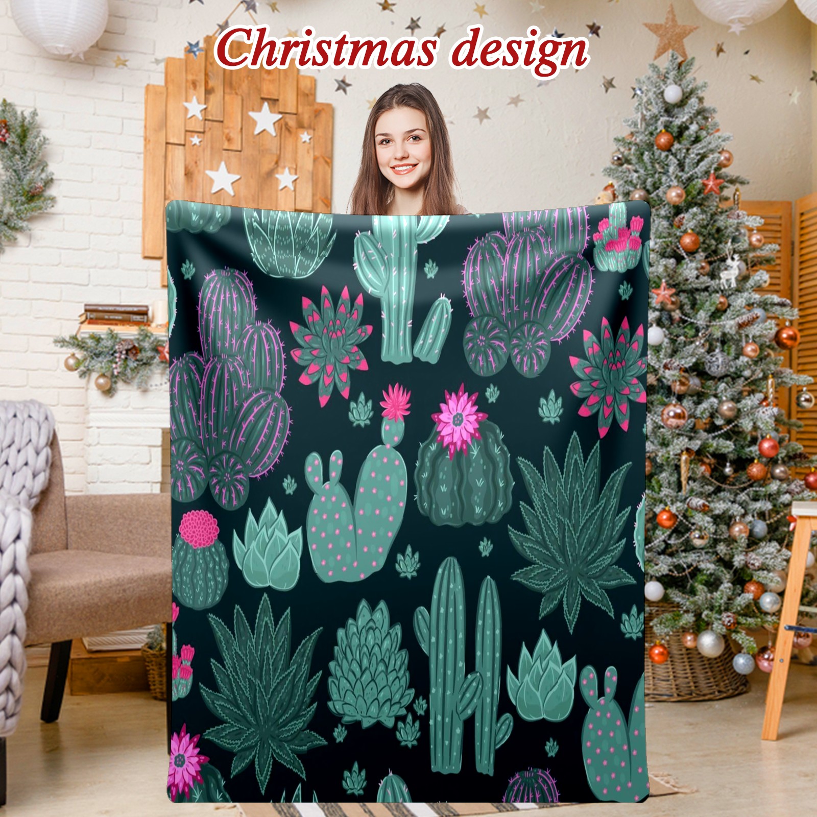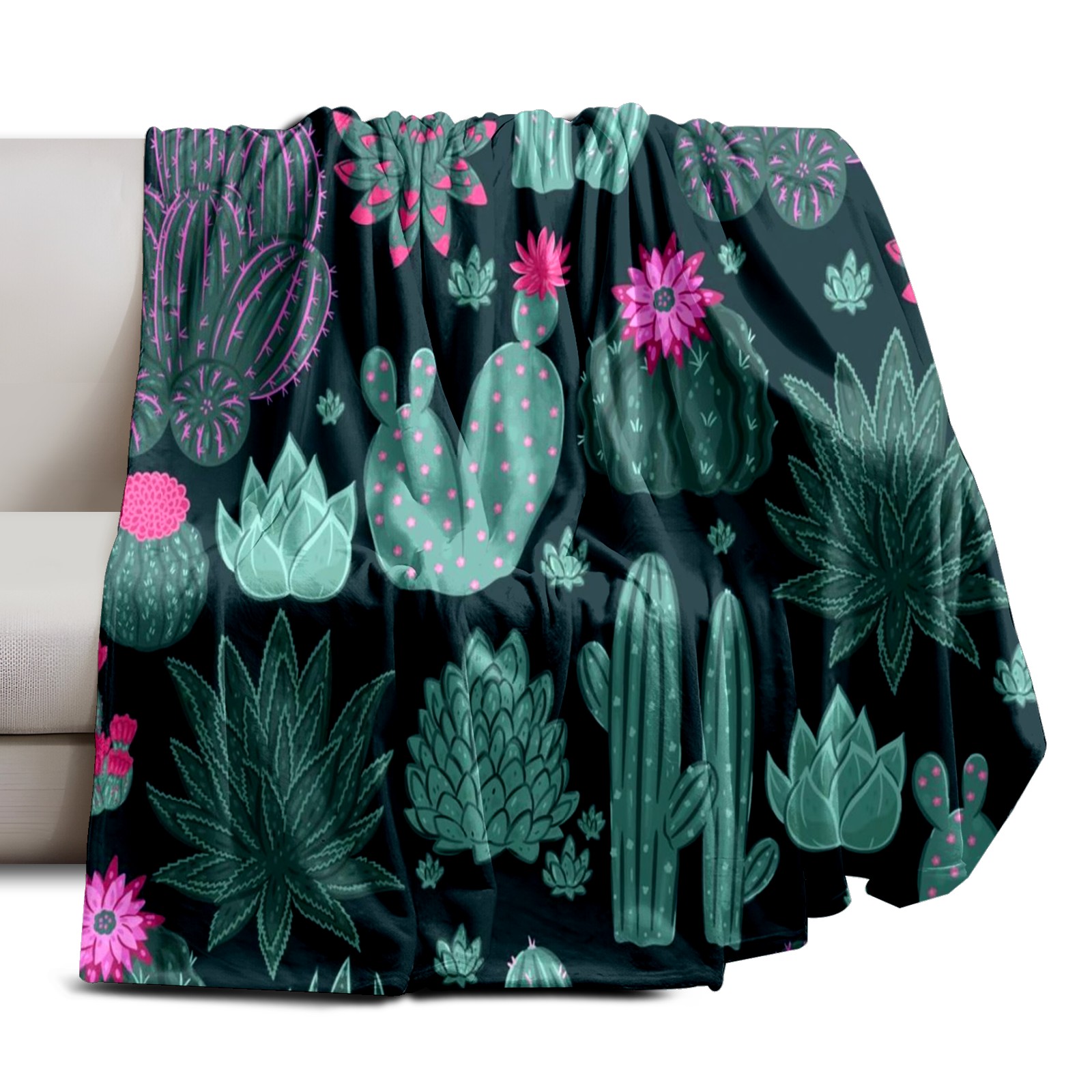 Премиальная фланелевая одеяло Green Cactus Floral